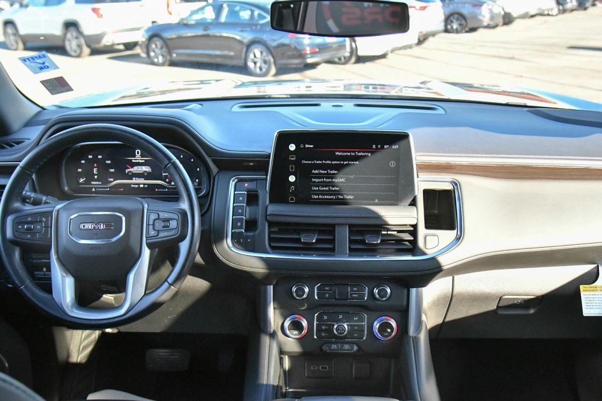 Only 18,211 Miles! Delivers 20 Highway MPG and 15 City MPG! This GMC Yukon boasts a Gas V8 5.3L/ engine powering this Automatic transmission. WHEELS, 20 X 9 (50.8 CM X 22.9 CM) 6-SPOKE POLISHED ALUMINUM, TRANSMISSION, 10-SPEED AUTOMATIC electronically controlled with overdrive, includes Traction Select System including tow/haul (STD), TRAILER BRAKE CONTROLLER, INTEGRATED.*This GMC Yukon Comes Equipped with These Options *MAX TRAILERING PACKAGE includes (ZL6) ProGrade Trailering System and (V03) extra capacity cooling system, LICENSE PLATE FRONT MOUNTING PACKAGE (Included on orders with ship-to states that require a front license plate.), GMC PRO SAFETY PLUS PACKAGE includes (UKC) Lane Change Alert with Side Blind Zone Alert and (UFG) Rear Cross Traffic Alert; in addition to standard (PDI) GMC Pro Safety , TIRES, 275/60R20SL ALL-SEASON, BLACKWALL, SMART TRAILER INTEGRATION INDICATOR, SLE PREFERRED EQUIPMENT GROUP Includes Standard Equipment, SEATS, FRONT BUCKET (STD), REAR CROSS TRAFFIC ALERT, REAR AXLE, 3.23 RATIO, PROGRADE TRAILERING SYSTEM includes (PZ8) Hitch Guidance with Hitch View, (JL1) trailer brake controller and (UET) Smart Trailer Integration Indicator.