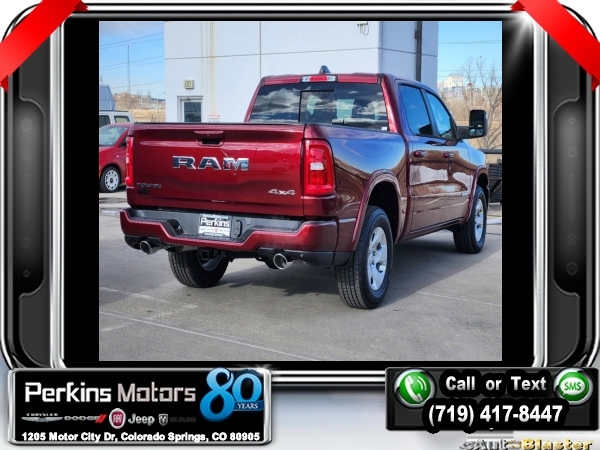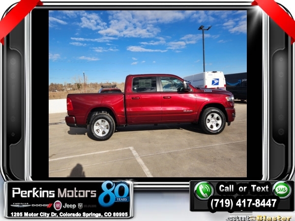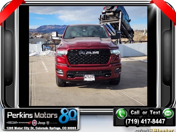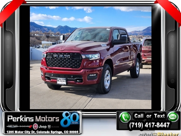 Factory MSRP: $63,950 $15,000 off MSRP! Priced below KBB Fair Purchase Price! Delmonico Red Pearlcoat 2025 Ram 1500 Big Horn/Lone Star 4WD 8-Speed Automatic 3.0L I6<br><br>Check us out at www.perkinsmotors.com to see our specials! Since opening our doors in 1944, we’ve been proud to serve Colorado Springs, CO, and the surrounding areas of Pueblo, Castle Rock and Denver, CO. Throughout this time of being family owned for 80 years, we’ve maintained a firm commitment to our customers: to offer a wide selection of New Chrysler, Dodge, Fiat, Jeep, and Ram vehicles and quality pre-owned vehicles, and provide a quick, no-hassle car-buying process that ensures everyone drives off the lot satisfied with their purchase.<br><br>Big Horn Level 1 Equipment Group (115V Auxiliary Power Outlet, 2nd Row In Floor Storage Bins, 400W Inverter, Auto Power-Folding Mirrors, Auto-Dimming Exterior Driver Mirror, Auto-Dimming Rear-View Mirror, Black Exterior Mirrors, Black Premium Power Mirrors, Convex Wide-Angle Exterior Mirror Insert, Exterior Mirrors Courtesy Lamps, Exterior Mirrors w/Heating Element, Exterior Mirrors w/Supplemental Signals, Glove Box Lamp, Heated Front Seats, Heated Steering Wheel, Leather Wrapped Steering Wheel, Power 2-Way Driver Lumbar Adjust, Power Adjust 8-Way Driver Seat, Power Adjustable Pedals, Rear Power Sliding Window, Rear Window Defroster, Sun Visors w/Illuminated Vanity Mirrors, and Universal Garage Door Opener), Protection Group (Tow Hooks), Quick Order Package 21Z Big Horn, Sport Appearance Package (3 Rear Seat Head Restraints, 4 Way Front Headrests, Black Interior Accents, Body Color Door Handles, Body Color Front Bumper, Body Color Rear Bumper w/Step Pads, Body Color Tailgate Handle, Bucket Seats, Deluxe Cloth Bucket Seats, Front Seat Back Map Pockets, Full Length Floor Console, Grille Surround 1 Body Color Texture 1 Black, Manual Adjust 4-Way Front Passenger Seat, RAM Grille Badge - Chrome, Rear 60/40 Folding Seat, and Rear Center Armrest), Towing Technology Group (Trailer Hitch Line-Up Assist), Trailer Tow Group (Accent Color Tailgate Handle, Black Trailer Tow Power Mirrors, Manual Folding Exterior Mirrors, Manual Telescoping Mirrors, Mirror Clearance/Running Lights, Power-Adjustable Convex Aux Mirrors, Trailer Brake Control, Trailer Light Check, Trailer Reverse Steering Control, Trailer Tire Pressure Monitoring System, and Trailer Tow Mirrors), 3.21 Rear Axle Ratio, 3.92 Rear Axle Ratio, 33 Gallon Fuel Tank, 4-Wheel Disc Brakes, 4G LTE Wi-Fi Hot Spot, 6 Speakers, 9 Amplified Speakers w/Subwoofer, ABS brakes, Air Conditioning, Alloy wheels, AM/FM radio, Anti-Spin Differential Rear Axle, Apple CarPlay/Android Auto, Auto High-beam Headlights, Brake assist, Bumpers: chrome, Cloth Bench Seat, Compass, Connectivity - US/Canada, Cruise Control, Delay-off headlights, Driver door bin, Dual front impact airbags, Dual front side impact airbags, Electronic Stability Control, Front anti-roll bar, Front Center Armrest w/Storage, Front fog lights, Front License Plate Bracket, Front reading lights, Front wheel independent suspension, Fully automatic headlights, GPS Antenna Input, Heated door mirrors, Illuminated entry, Integrated Voice Command w/Bluetooth, Low tire pressure warning, MOPAR Front & Rear Rubber Floor Mats, Occupant sensing airbag, Outside temperature display, Overhead airbag, Overhead console, Panic alarm, ParkView Rear Back-Up Camera, Passenger door bin, Passenger vanity mirror, Power door mirrors, Power steering, Power windows, Radio data system, Radio: Uconnect 5 W w/8.4 Display, Rear anti-rol Sale price includes all manufacture's incentives and dealer discounts. Sale price not available on lease or compatible with special APR. $1000 - 2025 National Truck Month Bonus Cash . Exp. 03/03/2025 $1000 - 2025 West BC SFS Bonus Cash . Exp. 03/03/2025 $1000 - 2025 West BC SFS Retail Bonus Cash . Exp. 03/03/2025 $1500 - 2025 National Bonus Cash . Exp. 03/03/2025 $4000 - 2025 National Retail Consumer Cash. Exp. 0