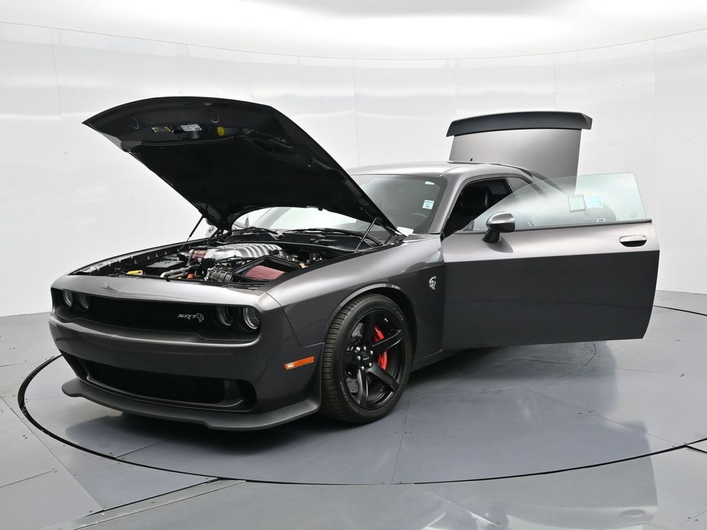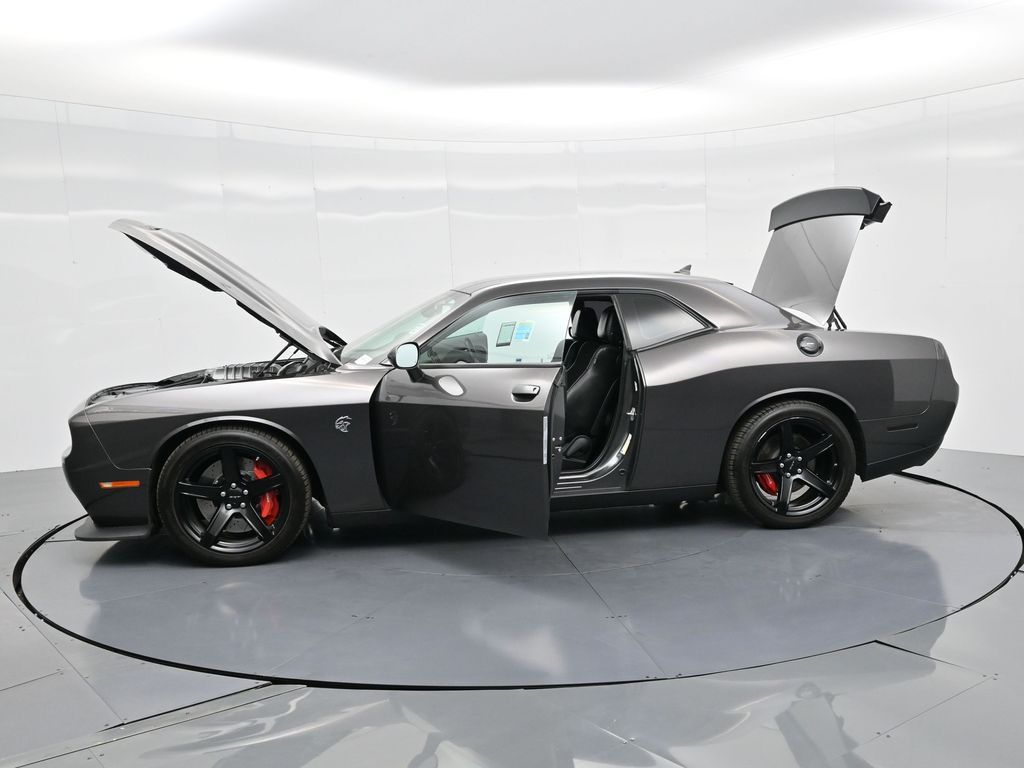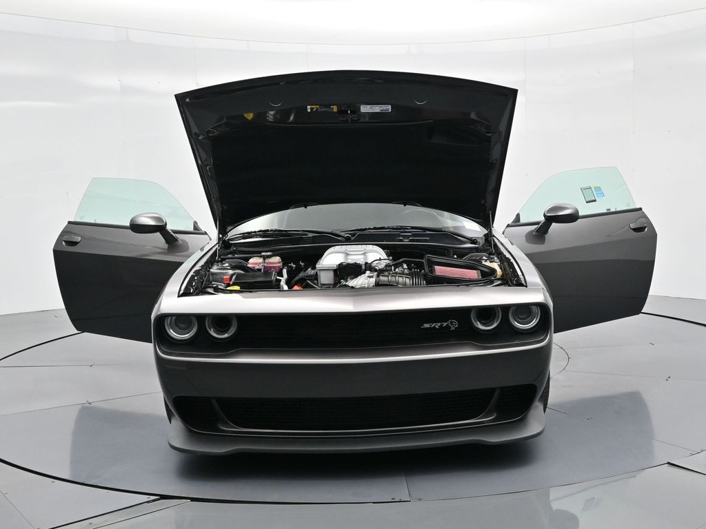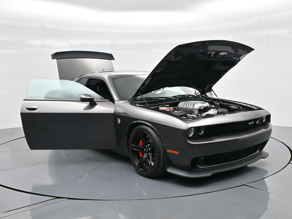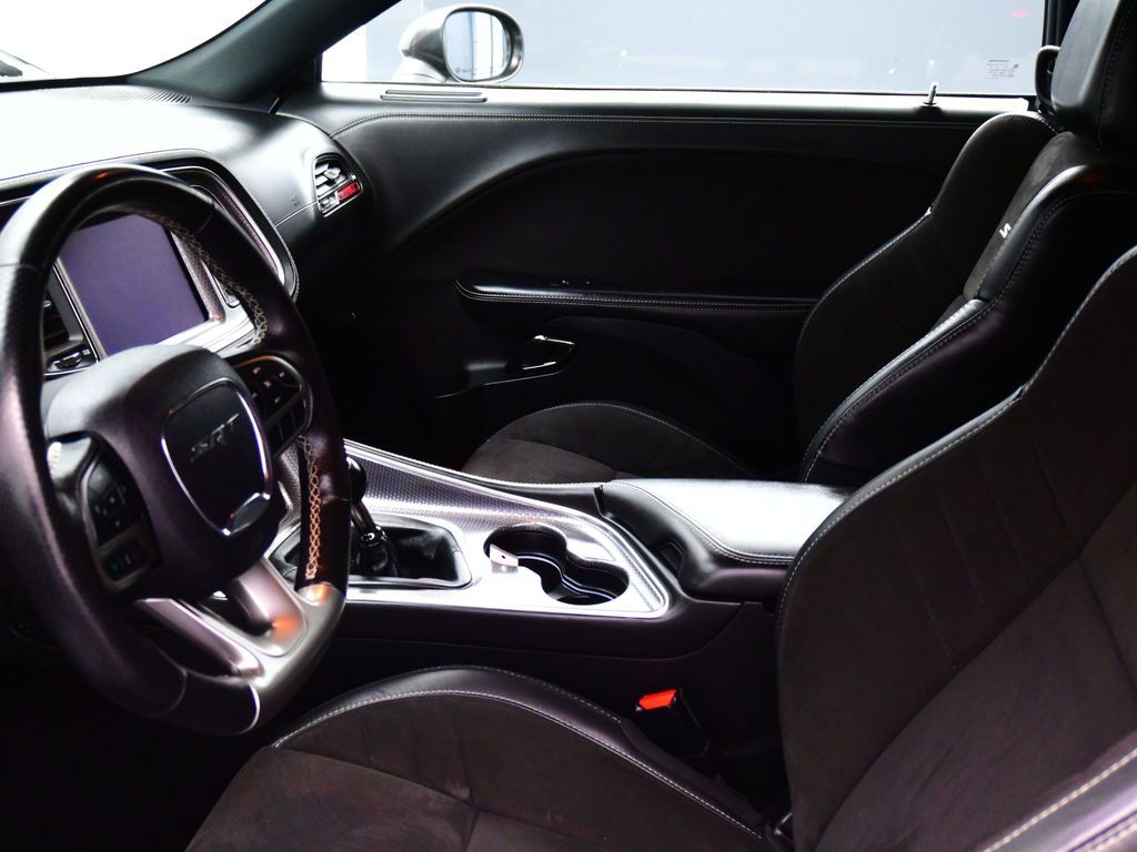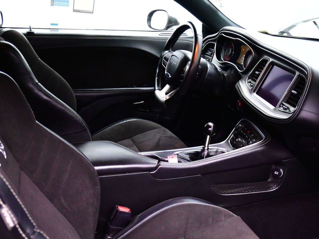 Challenger SRT Hellcat, 2D Coupe, 6.2L Supercharged HEMI V8 SRT, Tremec 6-Speed Manual, RWD, 8.4" Touchscreen Display, Alloy wheels, Blind Spot & Cross Path Detection, Dark Engine Turn Interior Accents, Driver Convenience Group, Dual front impact airbags, Front dual zone A/C, GPS Antenna Input, Heated front seats, Hellcat Logo Nappa/Alcantara Seat, High-Intensity Discharge Headlamps, Low tire pressure warning, Overhead airbag, ParkView Rear Back-Up Camera, Plus Package, Power Multi-Function Foldaway Mirrors, Power Tilt/Telescope Steering Column, Premium-Stitched Dash Panel, Quick Order Package 25R SRT Hellcat, Radio: Uconnect 4C w/8.4" Display, Spoiler, Suede Door Trim Panel w/Map Pocket, Ventilated Front Seats, Wheels: 20" x 9.5" SRT Lowgloss Black Performance.
