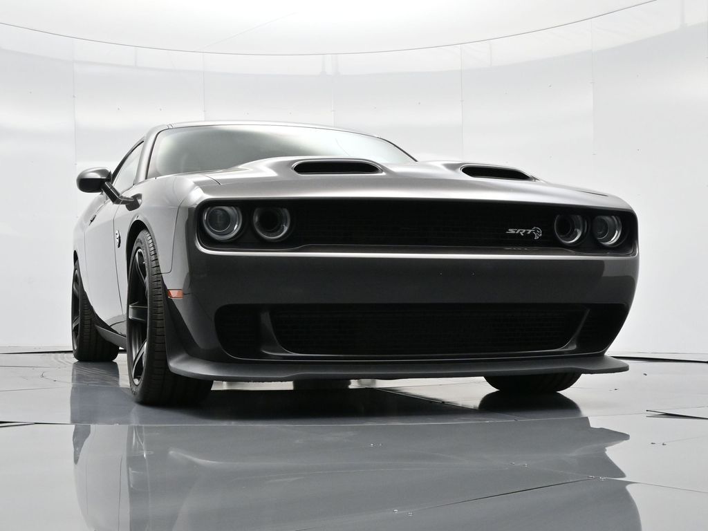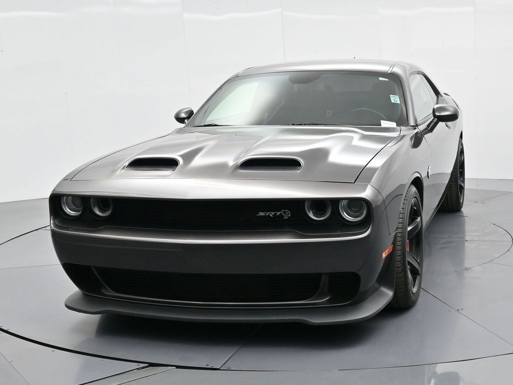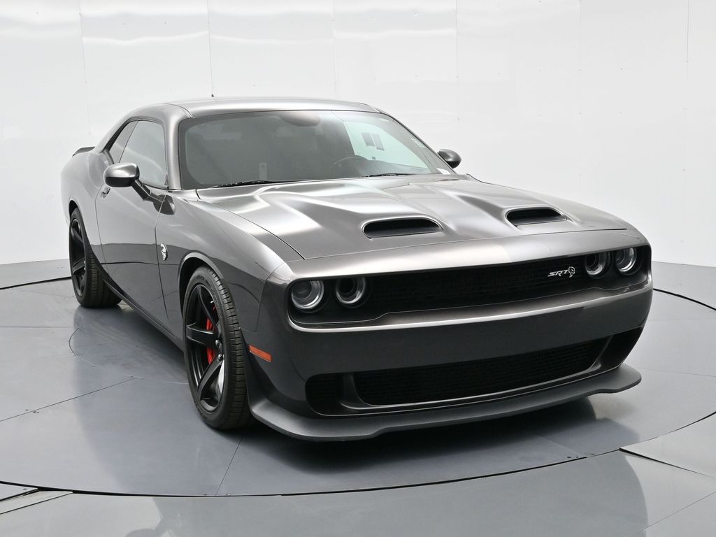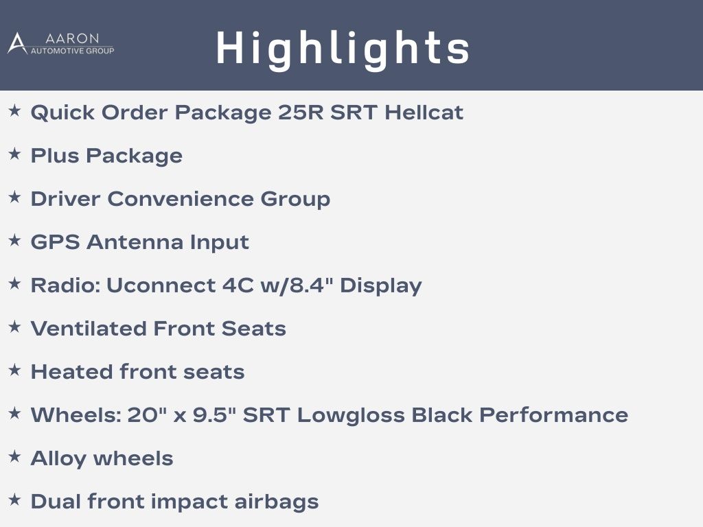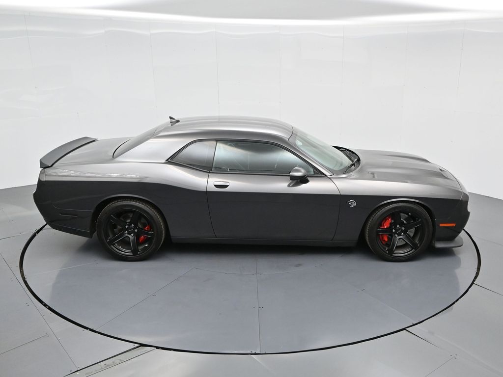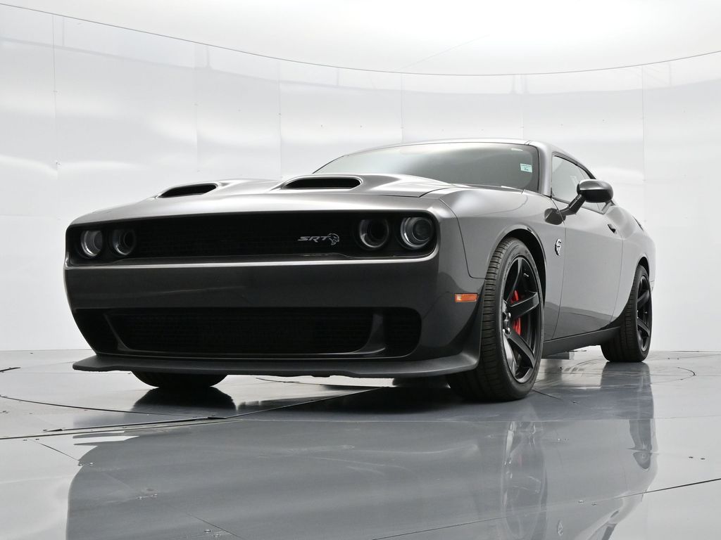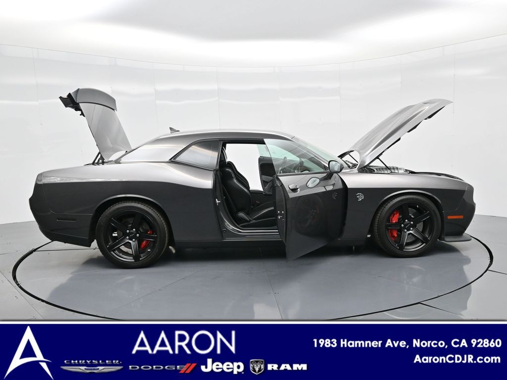 Challenger SRT Hellcat, 2D Coupe, 6.2L Supercharged HEMI V8 SRT, Tremec 6-Speed Manual, RWD, 8.4" Touchscreen Display, Alloy wheels, Blind Spot & Cross Path Detection, Dark Engine Turn Interior Accents, Driver Convenience Group, Dual front impact airbags, Front dual zone A/C, GPS Antenna Input, Heated front seats, Hellcat Logo Nappa/Alcantara Seat, High-Intensity Discharge Headlamps, Low tire pressure warning, Overhead airbag, ParkView Rear Back-Up Camera, Plus Package, Power Multi-Function Foldaway Mirrors, Power Tilt/Telescope Steering Column, Premium-Stitched Dash Panel, Quick Order Package 25R SRT Hellcat, Radio: Uconnect 4C w/8.4" Display, Spoiler, Suede Door Trim Panel w/Map Pocket, Ventilated Front Seats, Wheels: 20" x 9.5" SRT Lowgloss Black Performance.