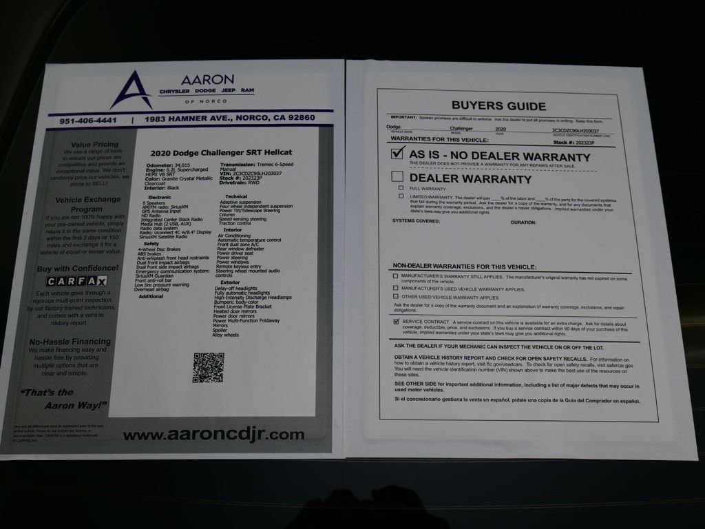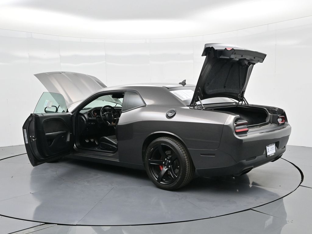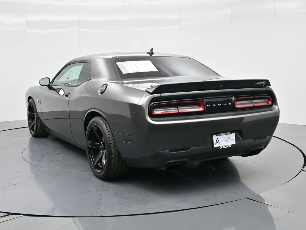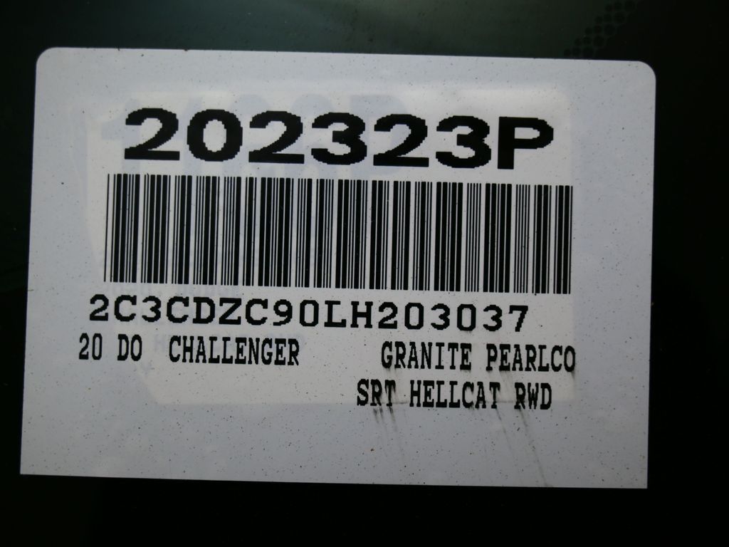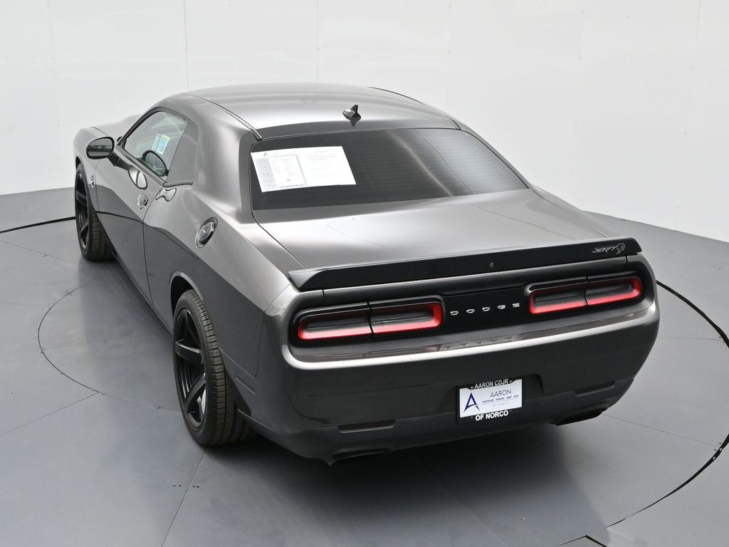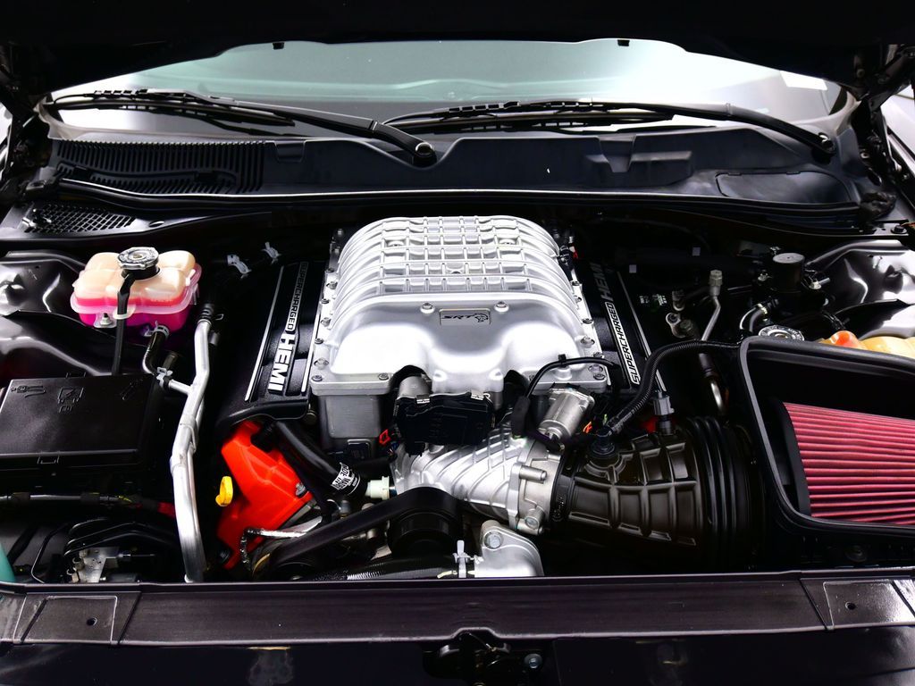 Challenger SRT Hellcat, 2D Coupe, 6.2L Supercharged HEMI V8 SRT, Tremec 6-Speed Manual, RWD, 8.4" Touchscreen Display, Alloy wheels, Blind Spot & Cross Path Detection, Dark Engine Turn Interior Accents, Driver Convenience Group, Dual front impact airbags, Front dual zone A/C, GPS Antenna Input, Heated front seats, Hellcat Logo Nappa/Alcantara Seat, High-Intensity Discharge Headlamps, Low tire pressure warning, Overhead airbag, ParkView Rear Back-Up Camera, Plus Package, Power Multi-Function Foldaway Mirrors, Power Tilt/Telescope Steering Column, Premium-Stitched Dash Panel, Quick Order Package 25R SRT Hellcat, Radio: Uconnect 4C w/8.4" Display, Spoiler, Suede Door Trim Panel w/Map Pocket, Ventilated Front Seats, Wheels: 20" x 9.5" SRT Lowgloss Black Performance.