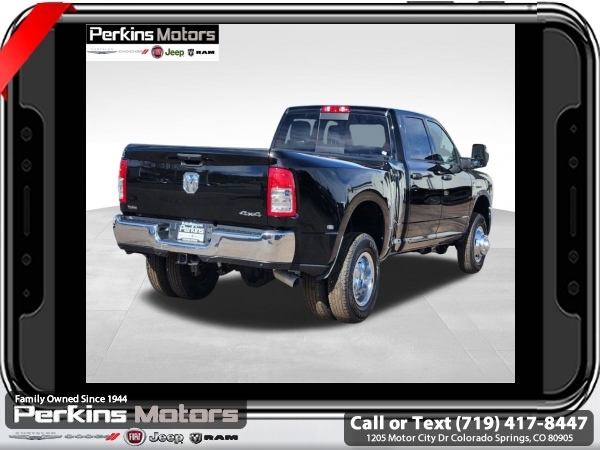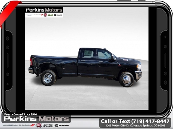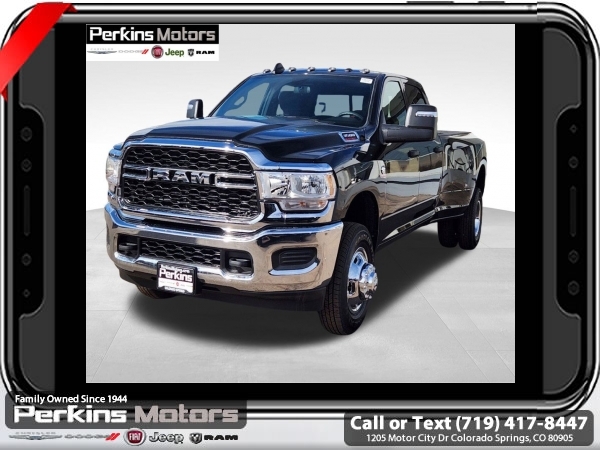 Factory MSRP: $71,680 $13,662 off MSRP! Priced below KBB Fair Purchase Price! Diamond Black Crystal Pearlcoat 2024 Ram 3500 Tradesman 4WD 6-Speed Automatic Cummins 6.7L I6 Turbodiesel<br><br>Check us out at www.perkinsmotors.com to see our specials! Since opening our doors in 1944, we’ve been proud to serve Colorado Springs, CO, and the surrounding areas of Pueblo, Castle Rock and Denver, CO. Throughout this time of being family owned for 80 years, we’ve maintained a firm commitment to our customers: to offer a wide selection of New Chrysler, Dodge, Fiat, Jeep, and Ram vehicles and quality pre-owned vehicles, and provide a quick, no-hassle car-buying process that ensures everyone drives off the lot satisfied with their purchase.<br><br>Bed Utility Group (LED Bed Lighting and MOPAR Spray In Bedliner), Chrome Appearance Group (Bright Front Bumper, Bright Rear Bumper, Bright Wheel Skins, Center Hub, Chrome Headlamp Bezels, and Matte Black Mesh w/Chrome Grille), Cold Weather Group (Engine Block Heater and MOPAR Winter Front Grille Cover), Protection Group, Quick Order Package 2HA Tradesman, Tradesman Level 2 Equipment Group (2 Way Rear Headrest Seat, 4 Way Front Headrests, 40/20/40 Split Bench Seat, Black Exterior Mirrors, Carpet Floor Covering, Cloth 40/20/40 Bench Seat, Exterior Mirrors w/Heating Element, Front Armrest w/Cupholders, Manual Adjust 4-Way Driver Seat, Manual Adjust 4-Way Front Passenger Seat, Manual Folding Exterior Mirrors, Manual Telescoping Mirrors, Mirror Running Lights, Power Adjust Mirrors, Power Heat Fold Telescopic Mirrors, Power-Adjustable Convex Aux Mirrors, Rear Folding Seat, Rear Window Defroster, Remote USB Port - Charge Only, and Storage Tray), 220 Amp Alternator, 3.73 Axle Ratio, 4-Wheel Disc Brakes, 4.10 Axle Ratio, 50 Gallon Fuel Tank, 5th Wheel/Gooseneck Towing Prep Group, 6 Speakers, ABS brakes, Active Noise Control System, Air Conditioning, AM/FM radio, Box & Rear Fender Clearance Lamps, Brake assist, Clearance Lamps, Compass, Cruise Control, Delay-off headlights, Driver door bin, Dual front impact airbags, Dual front side impact airbags, Dual Rear Wheels, Electric Shift-On-The-Fly Transfer Case, Electronic Stability Control, Electronically Controlled Throttle, Emergency communication system: SiriusXM Guardian, For Details Visit DriveUconnect.com, Front anti-roll bar, Front Center Armrest w/Storage, Front License Plate Bracket, Front reading lights, Fully automatic headlights, Global Telematics Box Module (TBM), GPS Antenna Input, HD Vinyl 40/20/40 Split Bench Seat, Illuminated entry, Integrated Voice Command w/Bluetooth, Low tire pressure warning, Occupant sensing airbag, Outside temperature display, Overhead airbag, Overhead console, Panic alarm, ParkSense Rear Park Assist System, ParkView Rear Back-Up Camera, Passenger door bin, Passenger vanity mirror, Power Heated Fold Telescopic Mirrors, Power steering, Power windows, Radio data system, Radio: Uconnect 3 w/5 Display, Rear step bumper, Rear Wheelhouse Liners, Remote keyless entry, Tachometer, Tilt steering wheel, Tip Start, Traction control, Trailer Brake Control, Trailer Light Check, Variably intermittent wipers, Voltmeter, Wheels: 17 x 6.0 Steel Chrome Clad, and Wheels: 18 x 8.0 SteeL. Sale price includes all manufacture's incentives and dealer discounts. Sale price not available on lease or compatible with special APR. 10% Msrp - 2024 West BC Standalone 10% Below MSRP. Exp. 03/31/2025 Price includes $1,506 in dealer added accessories.