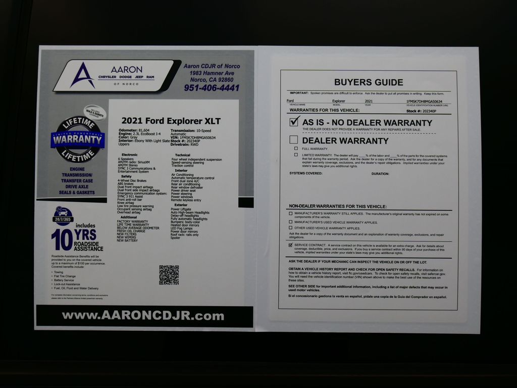 LIFE TIME WARRANTY, FRESH OIL CHANGE, NEW FILTERS, NEW WIPERS, NEW BATTERY, Explorer XLT, 4D Sport Utility, 2.3L EcoBoost I-4, 10-Speed Automatic, RWD, 1st Row Heated Seats, 3rd row seats: bench, Acoustic-Laminated Front Side Windows, ActiveX Captain's Chairs, Alloy wheels, Equipment Group 202A, Exterior Parking Camera Rear, Front dual zone A/C, Heated Steering Wheel, Knee airbag, LED Fog Lamps, Low tire pressure warning, Power Liftgate, Remote Start System, SYNC 3 Communications & Entertainment System, Wheels: 18" 5-Spoke Sparkle Silver-Painted Alum.
