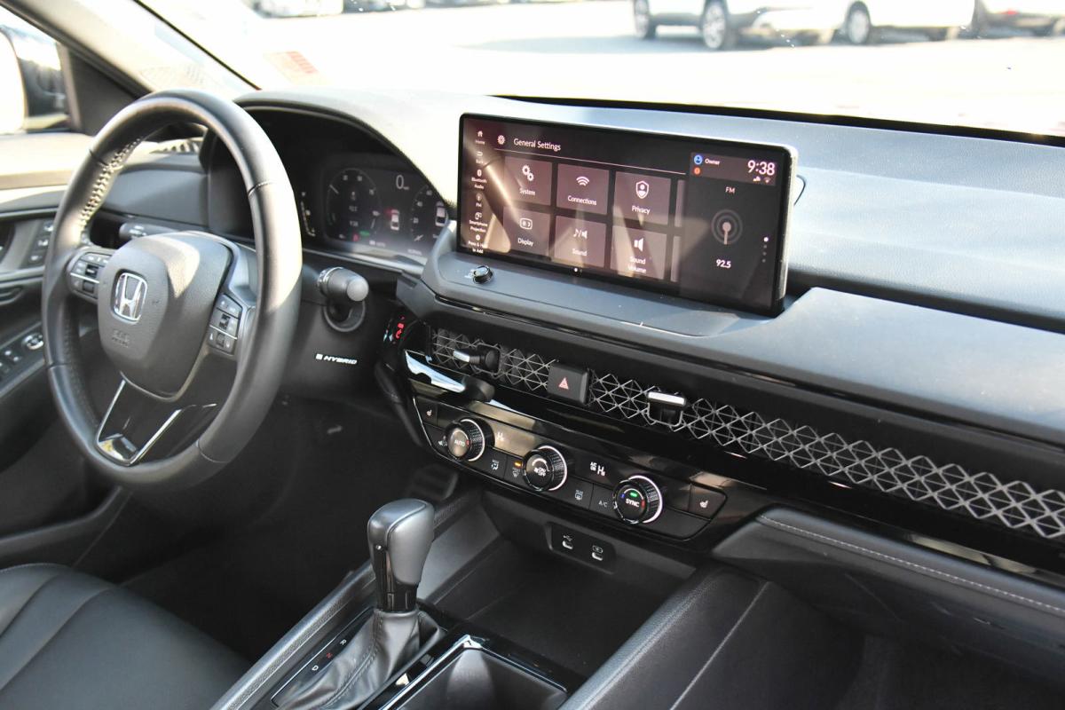 Only 18,459 Miles! Delivers 41 Highway MPG and 46 City MPG! This Honda Accord Hybrid delivers a Gas/Electric I-4 2.0 L/122 engine powering this Variable transmission. Wheels: 19 x 8.5J Matte Berlina Black, Vehicle Stability Assist (VSA) Electronic Stability Control (ESC), Valet Function.*This Honda Accord Hybrid Comes Equipped with These Options *Trunk Rear Cargo Access, Trip Computer, Transmission: Electronic Continuously Variable -inc: econ, normal, sport and individual modes, Traffic Jam Assist, Tires: 235/40R19 96V AS, Tire Specific Low Tire Pressure Warning, Tire mobility kit, Strut Front Suspension w/Coil Springs, Speed Sensitive Variable Intermittent Wipers, Smart Device Remote Engine Start.