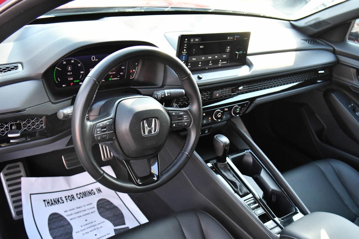 Only 18,459 Miles! Delivers 41 Highway MPG and 46 City MPG! This Honda Accord Hybrid delivers a Gas/Electric I-4 2.0 L/122 engine powering this Variable transmission. Wheels: 19 x 8.5J Matte Berlina Black, Vehicle Stability Assist (VSA) Electronic Stability Control (ESC), Valet Function.*This Honda Accord Hybrid Comes Equipped with These Options *Trunk Rear Cargo Access, Trip Computer, Transmission: Electronic Continuously Variable -inc: econ, normal, sport and individual modes, Traffic Jam Assist, Tires: 235/40R19 96V AS, Tire Specific Low Tire Pressure Warning, Tire mobility kit, Strut Front Suspension w/Coil Springs, Speed Sensitive Variable Intermittent Wipers, Smart Device Remote Engine Start.