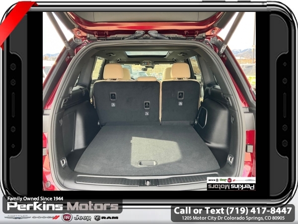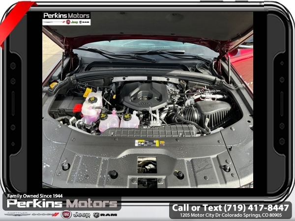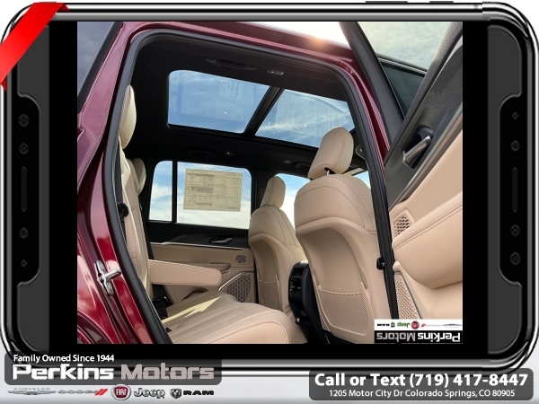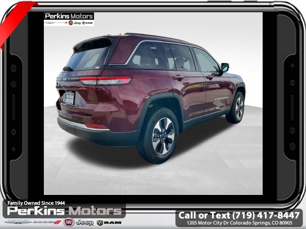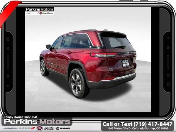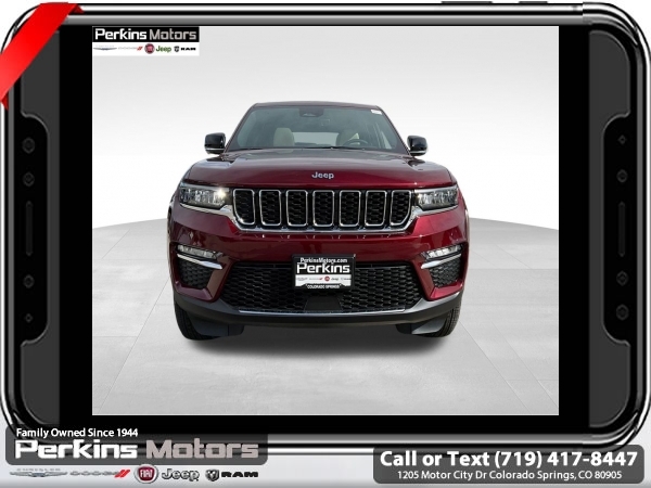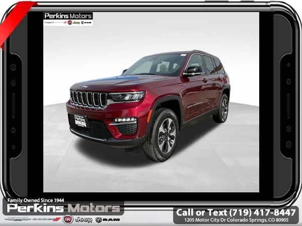 Factory MSRP: $62,880 $10,500 off MSRP! Priced below KBB Fair Purchase Price! Velvet Red Pearlcoat 2025 Jeep Grand Cherokee 4xe 4WD 8-Speed Automatic 2.0L I4 DOHC<br>2.0L I4 DOHC, 4WD.<br>Check us out at www.perkinsmotors.com to see our specials! Since opening our doors in 1944, we’ve been proud to serve Colorado Springs, CO, and the surrounding areas of Pueblo, Castle Rock and Denver, CO. Throughout this time of being family owned for 80 years, we’ve maintained a firm commitment to our customers: to offer a wide selection of New Chrysler, Dodge, Fiat, Jeep, and Ram vehicles and quality pre-owned vehicles, and provide a quick, no-hassle car-buying process that ensures everyone drives off the lot satisfied with their purchase.<br><br>Quick Order Package 27F, 2.0L I4 DOHC, 4WD, 10 Speakers, 3.70 Rear Axle Ratio, 4-Wheel Disc Brakes, ABS brakes, Air Conditioning, Alloy wheels, AM/FM radio: SiriusXM with 360L, Anti-whiplash front head restraints, Audio memory, Auto High-beam Headlights, Automatic temperature control, Brake assist, Bumpers: body-color, Capri Leatherette Seats, Compass, Cruise Control, Delay-off headlights, Driver door bin, Driver vanity mirror, Dual front impact airbags, Dual front side impact airbags, Electronic Stability Control, Four wheel independent suspension, Front anti-roll bar, Front Bucket Seats, Front Center Armrest w/Storage, Front dual zone A/C, Front fog lights, Front License Plate Bracket, Front reading lights, Fully automatic headlights, Garage door transmitter, Heated door mirrors, Heated front seats, Heated rear seats, Heated steering wheel, Heavy Duty Suspension, Illuminated entry, Knee airbag, Low tire pressure warning, Memory seat, Model Year Tracking, Navigation System, Occupant sensing airbag, Outside temperature display, Overhead airbag, Overhead console, Panic alarm, ParkView Rear Back-Up Camera, Passenger door bin, Passenger vanity mirror, Power door mirrors, Power driver seat, Power Liftgate, Power moonroof, Power passenger seat, Power steering, Power windows, Radio data system, Radio: Uconnect 5 Nav w/10.1 Display, Rear anti-roll bar, Rear reading lights, Rear window defroster, Rear window wiper, Remote keyless entry, Security system, Speed-Sensitive Wipers, Split folding rear seat, Spoiler, Steering wheel mounted audio controls, Tachometer, Telescoping steering wheel, Tilt steering wheel, Traction control, Trip computer, Turn signal indicator mirrors, Variably intermittent wipers, Voltmeter, and Wheels: 18 x 8 Fully Painted Aluminum. Sale price includes all manufacture's incentives and dealer discounts. Sale price not available on lease or compatible with special APR. $500 - 2025 National Jeep Celebration Event Bonus Cash . Exp. 03/31/2025 $6500 - 2025 National Retail Consumer Cash. Exp. 03/31/2025