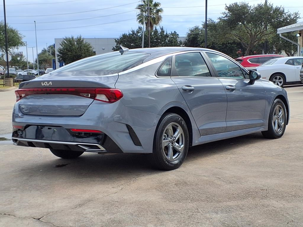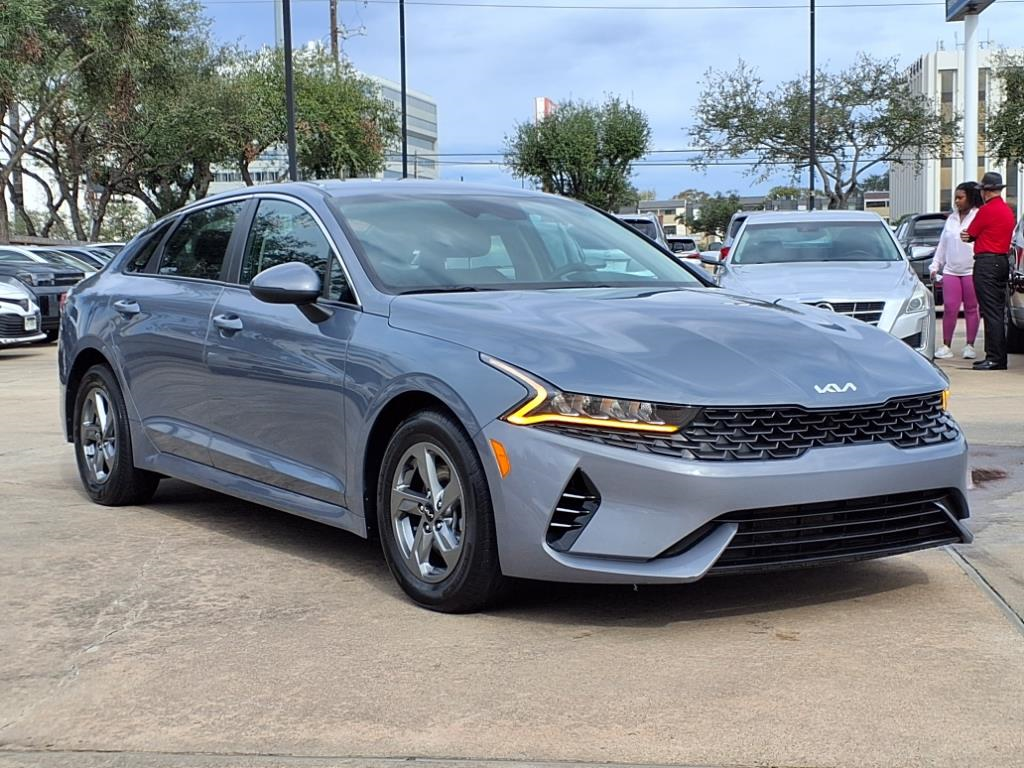 This Everlasting Silver 2023 Kia K5 LXS would be a welcomed addition to your family or business. \n\n \n\nThis K5 has the following features:\n\n\n\n\n\n\n<h4 class=vc_build_feature_name>Safety and Security</h4><ul class=vc_build_feature_item_list><li> Forward collision mitigation - Forward thinking. You look away for just a second and suddenly the vehicle in front of you has stopped. That's when the forward collision mitigation system comes to life. When it senses an impending impact, it will activate a combination of features to help prevent or reduce the severity of an accident. Forward collision mitigation is always looking ahead.</li><li> Forward collision mitigation - Forward thinking. You look away for just a second and suddenly the vehicle in front of you has stopped. That's when the forward collision mitigation system comes to life. When it senses an impending impact, it will activate a combination of features to help prevent or reduce the severity of an accident. Forward collision mitigation is always looking ahead.</li><li> Pedestrian impact prevention - An extra step toward safety. Pedestrians don't always stop, look, and listen, but with Pedestrian Impact Prevention, your vehicle is equipped to better see them and avoid them. This system constantly monitors the road ahead to identify and track pedestrians. It projects that image to an interior display screen, AND should an impact become likely, Pedestrian impact prevention takes steps to avoid a collision.</li><li> Hands-on cruise control. Set it and forget it. Road trips used to be stressful. Cruise control only managed speed, but not distance or safety. Now, with hands-on cruise control, simply set your desired speed and let sensor technology maintain a safe distance between you and surrounding vehicles. It slows you down; speeds you up and even keeps you in your own lane. Meet your ultimate co-pilot with hands-on cruise control.</li></ul><h4 class=vc_build_feature_name>Technology and Telematics</h4><ul class=vc_build_feature_item_list><li> Wireless Apple CarPlay & Android Auto smart device wireless mirroring</li></ul>\n\n\n\n\n \n\nTo be sure you don't miss out, give us a call at and schedule a test drive. We are located at 8811 Lakes At 610 Dr Houston TX 77054. We look forward to seeing you soon.