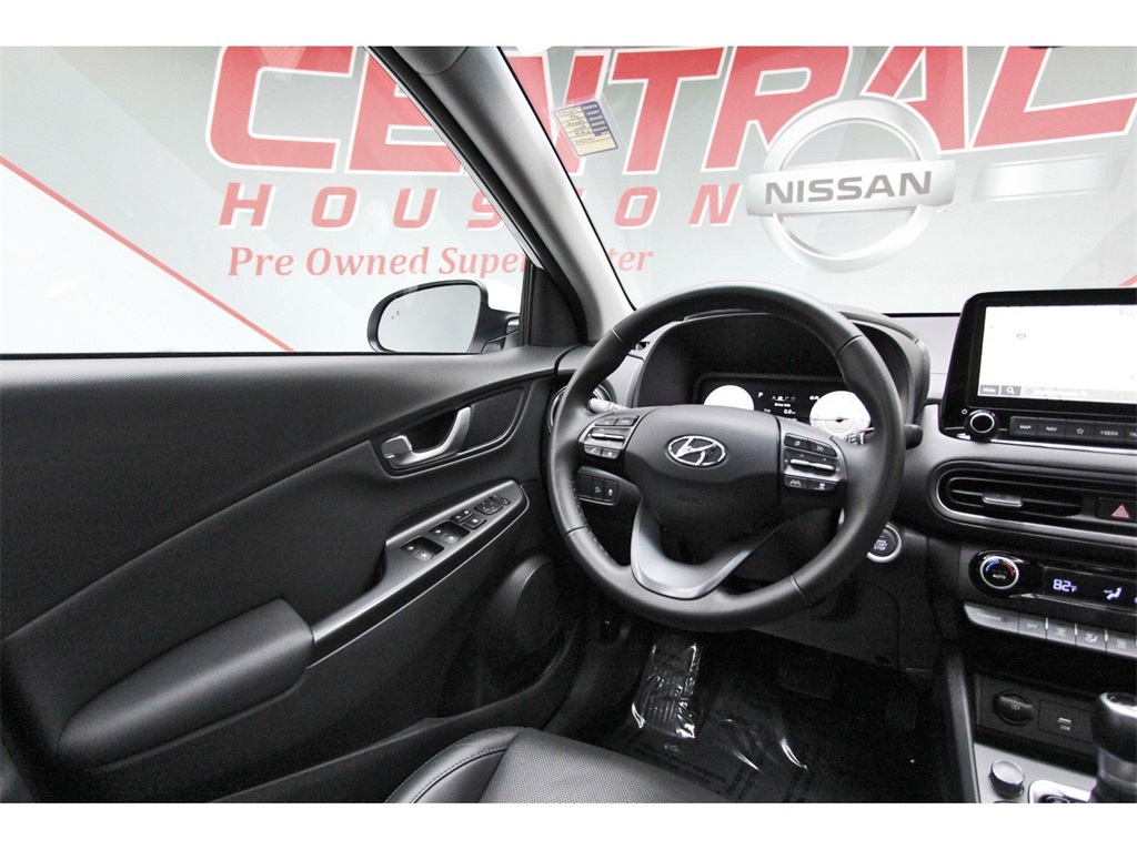Central Houston Nissan is proud to present you with another True Market Priced Pre-Owned Vehicle. This 2023 Hyundai Kona Limited is loaded with the following Factory Options: Option Group 01, 18" x 7.5J Alloy Wheels, 3.174 Axle Ratio, 4-Wheel Disc Brakes, 8 Speakers, ABS brakes, Air Conditioning, Alloy wheels, AM/FM radio: SiriusXM, Apple CarPlay & Android Auto, Auto High-beam Headlights, Auto-dimming Rear-View mirror, Automatic temperature control, Brake assist, Bumpers: body-color, Cargo Net, Cargo Tray, Carpeted Floor Mats, Delay-off headlights, Driver door bin, Driver vanity mirror, Dual front impact airbags, Dual front side impact airbags, Electronic Stability Control, Emergency communication system: Blue Link Connected Car Service (3-year complimentary subscription), Exterior Parking Camera Rear, Front anti-roll bar, Front Bucket Seats, Front Center Armrest, Front reading lights, Front wheel independent suspension, Fully automatic headlights, Garage door transmitter: HomeLink, harman/kardon® Speakers, Heated door mirrors, Heated Front Bucket Seats, Heated front seats, Illuminated entry, Leather Seat Trim, Leather Shift Knob, Leather steering wheel, Low tire pressure warning, Navigation System, Occupant sensing airbag, Outside temperature display, Overhead airbag, Overhead console, Panic alarm, Passenger door bin, Passenger vanity mirror, Power door mirrors, Power driver seat, Power moonroof, Power steering, Power windows, Radio: harman/kardon Premium Audio System, Rain sensing wipers, Rear seat center armrest, Rear window defroster, Rear window wiper, Remote keyless entry, Security system, Speed control, Speed-sensing steering, Split folding rear seat, Spoiler, Steering wheel mounted audio controls, Tachometer, Telescoping steering wheel, Tilt steering wheel, Traction control, Trip computer, Turn signal indicator mirrors, and Variably intermittent wipers!!Central Houston Nissan is more than just your typical car dealership. When our customers visit us, our goal is to provide quality vehicles, exceptional service and a friendly atmosphere. Our staff has been trained to create ease during your purchase or service experience and we are always making sure you get everything you want and deserve out of your visit. Our vision and mission is an employee-centered and customer-focused environment. Vehicles may be subject to prep package and market adjustment. When you buy from Central Houston Nissan, we'll make it the best car buying experience you've ever had. When you purchase a New Nissan or a qualifying Pre-Owned vehicle from Central Houston Nissan, you are automatically enrolled into our Central Houston Nissan Central Care Program at no cost to you. You can’t beat that! Vehicles may be subject to prep package and market adjustment. Stop by 2901 S Loop W, Houston, Texas 77054 today!!!