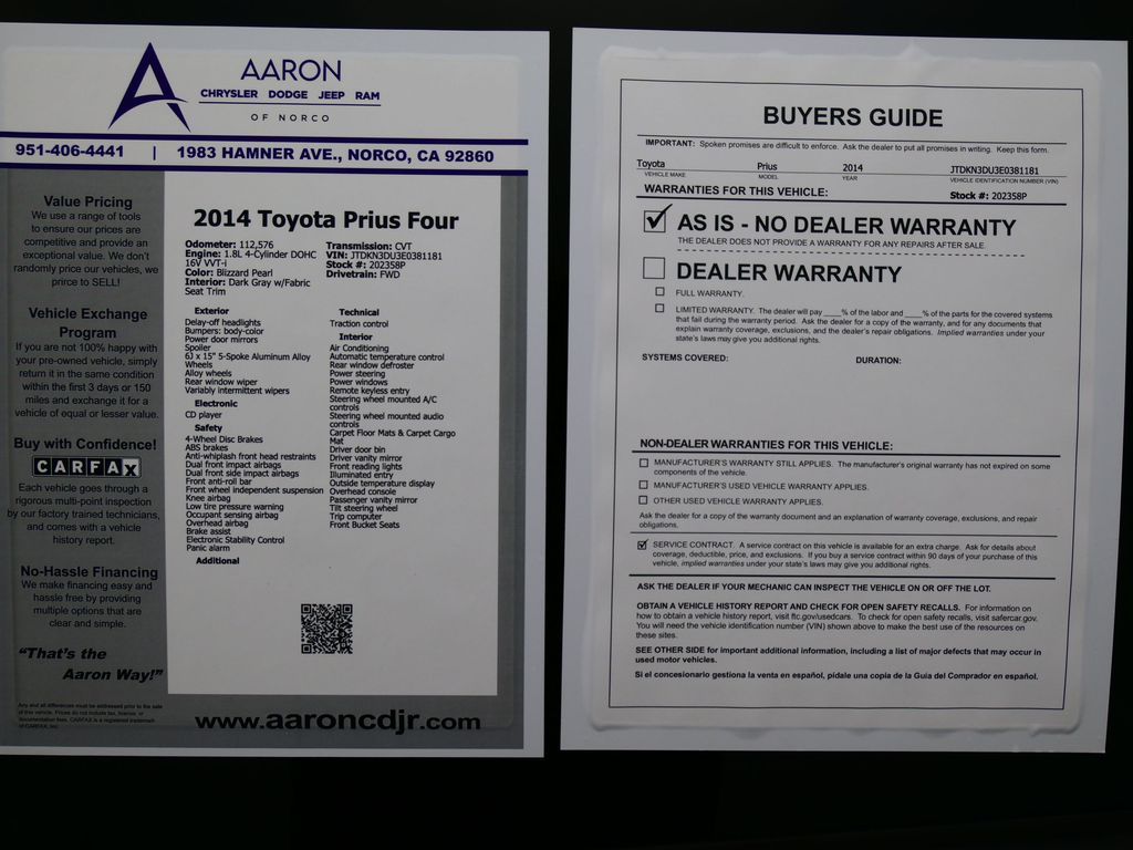 5D Hatchback, 1.8L 4-Cylinder DOHC 16V VVT-i, FWD, Blizzard Pearl, 6J x 15" 5-Spoke Aluminum Alloy Wheels, Air Conditioning, Brake assist, CD player, Electronic Stability Control, Knee airbag, Low tire pressure warning, Spoiler.Awards: * 2014 KBB.com 10 Best Green Cars * 2014 KBB.com 10 Best Hybrid Cars Under $30,000 * 2014 KBB.com Best Resale Value Awards