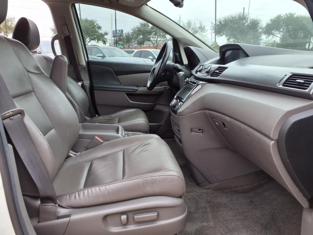 This White Diamond Pearl 2014 Honda Odyssey Touring would be a welcomed addition to your family or business. \n\n \n\nThis Odyssey has the following features:\n\n\n\n\n\n\n<h4 class=vc_build_feature_name>Convenience</h4><ul class=vc_build_feature_item_list><li> Cruise control with steering wheel mounted controls. Set it and forget it. Road trips used to be stressful, until cruise control set the pace. Simply set the desired speed using the steering wheel mounted controls and it will maintain that speed without driver intervention. This can help minimize driver fatigue and improve overall fuel economy. Resting your right foot is right at your fingertips thanks to cruise control with steering wheel mounted controls.</li><li> Power open and close liftgate - On-demand access. When your arms are full of cargo, the last thing you want to do is set it all down just to open the liftgate, then pick it all back up to load it in. By remotely opening and closing, power liftgate lets you skip straight to the loading. It also eliminates the awkward stretch to reach up for the liftgate to close it. Load and go with power open and close liftgate.</li></ul><h4 class=vc_build_feature_name>Safety and Security</h4><ul class=vc_build_feature_item_list><li> Rear camera - Watching your back! The rear camera helps you see obstacles and hazards you otherwise couldn't by showing enhanced images of what is behind you. The rear camera is an extra set of eyes that's both convenient and safe.</li><li> Brake assist - Stop right there. Something jumps out into the middle of the road and you need to stop now! With brake assist, you will. It uses the speed of the brake pedal's travel to sense panic braking, then applies all available power to boost your stopping power. Brake assist can stop the accident before it is one.</li></ul><h4 class=vc_build_feature_name>Technology and Telematics</h4><ul class=vc_build_feature_item_list><li> Voice activated integrated navigation system - A to B made easy! Whether it's an errand or a road trip, the voice activated integrated navigation system will guide you to your destination. No more bulky, impossible-to-fold maps, and no more stopping to ask for directions. Just tell it where you want to go, and the voice activated integrated navigation system shows you the right way.</li></ul>\n\n\n\n\n \n\nTo be sure you don't miss out, give us a call at and schedule a test drive. We are located at 8811 Lakes At 610 Dr Houston TX 77054. We look forward to seeing you soon.