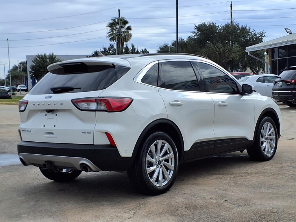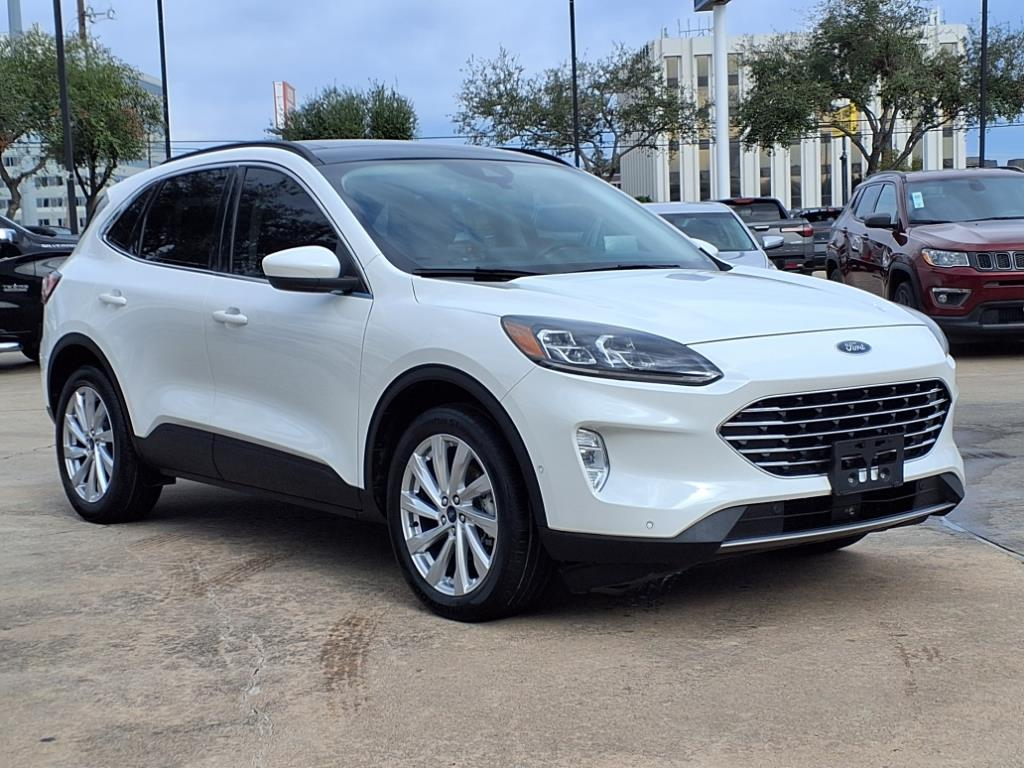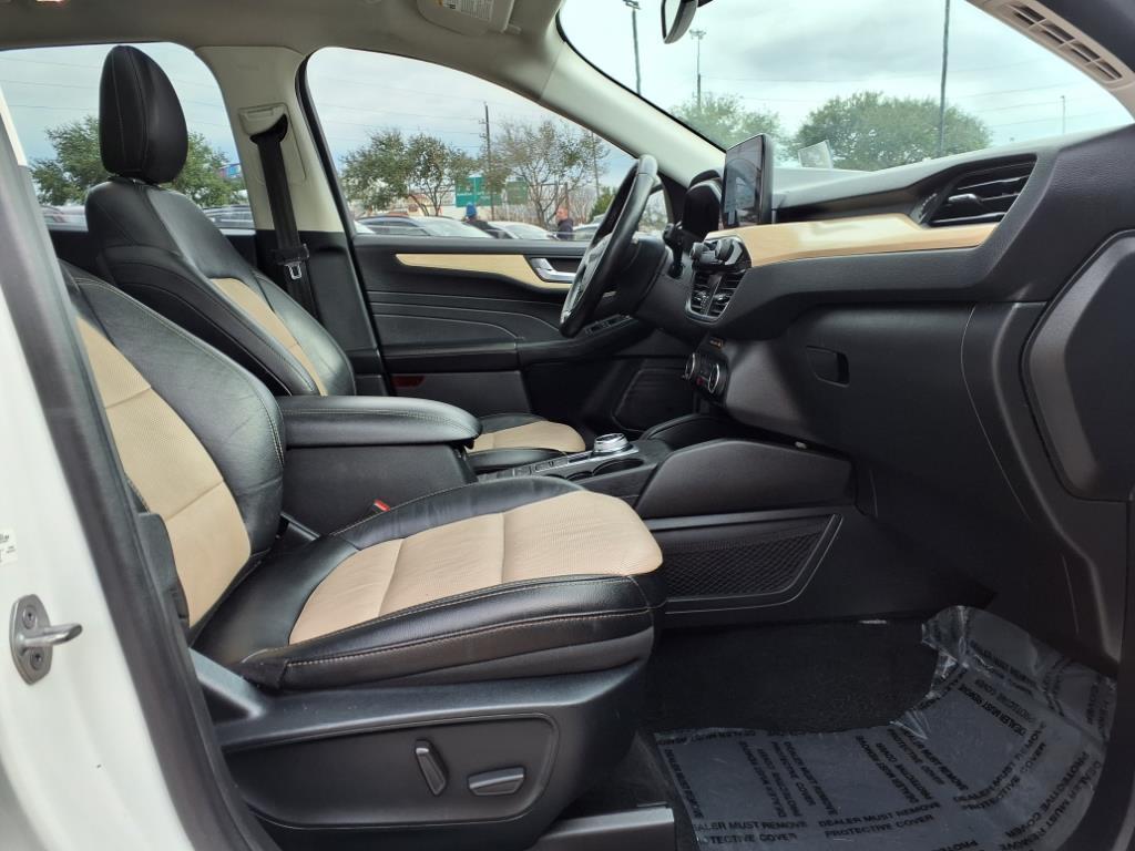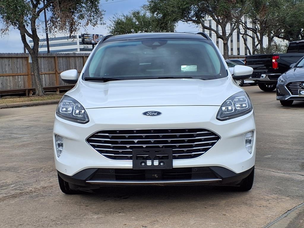 This Star White Metallic Tri-Coat 2022 Ford Escape Titanium would be a welcomed addition to your family or business. \n\n \n\nThis Escape has the following features:\n\n\n\n<h4 class=vc_build_package_name>Titanium Elite Package ($2,425 value)</h4><ul class=vc_build_package_item_list><li>Heated Leather-Trimmed Front Sport Contour Seats</li><li>Chrome 5-Bar Upper Grille with Chrome Surround</li><li>HD Radio</li><li>Head-Up Display</li><li>Front and Rear Floor Mats</li><li>B&O Sound System by Bang and Olufsen</li><li>19 Luster Nickel-Painted Aluminum Wheels</li><li>Wireless Charging Pad</li><li>Active Park Assist 2.0</li><li>Front and Rear Silver Skid Plates</li><li>Leather Wrapped Steering Wheel</li></ul><h4 class=vc_build_package_name>Equipment Group 401A</h4><ul class=vc_build_package_item_list><li>8-Speed Automatic Transmission</li><li>Heated ActiveX Trimmed Front Sport Contour Bucket Seats</li><li>3.47 Axle Ratio</li><li>TBD GVWR</li><li>AM/FM Stereo</li><li>225/55R19 AS BSW Tires</li><li>19 Machined-Face Aluminum Wheels</li></ul>\n\n\n<h4 class=vc_build_feature_name>Safety and Security</h4><ul class=vc_build_feature_item_list><li> Forward collision mitigation - Forward thinking. You look away for just a second and suddenly the vehicle in front of you has stopped. That's when the forward collision mitigation system comes to life. When it senses an impending impact, it will activate a combination of features to help prevent or reduce the severity of an accident. Forward collision mitigation is always looking ahead.</li><li> Pedestrian impact prevention - An extra step toward safety. Pedestrians don't always stop, look, and listen, but with Pedestrian Impact Prevention, your vehicle is equipped to better see them and avoid them. This system constantly monitors the road ahead to identify and track pedestrians. It projects that image to an interior display screen, AND should an impact become likely, Pedestrian impact prevention takes steps to avoid a collision.</li><li> Hands-on cruise control. Set it and forget it. Road trips used to be stressful. Cruise control only managed speed, but not distance or safety. Now, with hands-on cruise control, simply set your desired speed and let sensor technology maintain a safe distance between you and surrounding vehicles. It slows you down; speeds you up and even keeps you in your own lane. Meet your ultimate co-pilot with hands-on cruise control.</li></ul><h4 class=vc_build_feature_name>Technology and Telematics</h4><ul class=vc_build_feature_item_list><li> Smart device mirroring - Smartphone, meet smart car. You can control your device through your vehicle's infotainment system. Smart device mirroring brings together safety and convenience by making it easier to find what you're looking for while keeping your eyes on the road.</li><li> Smart device mirroring - Smartphone, meet smart car. You can control your device through your vehicle's infotainment system. Smart device mirroring brings together safety and convenience by making it easier to find what you're looking for while keeping your eyes on the road.</li></ul>\n\n\n\n\n \n\nTo be sure you don't miss out, give us a call at and schedule a test drive. We are located at 8811 Lakes At 610 Dr Houston TX 77054. We look forward to seeing you soon.