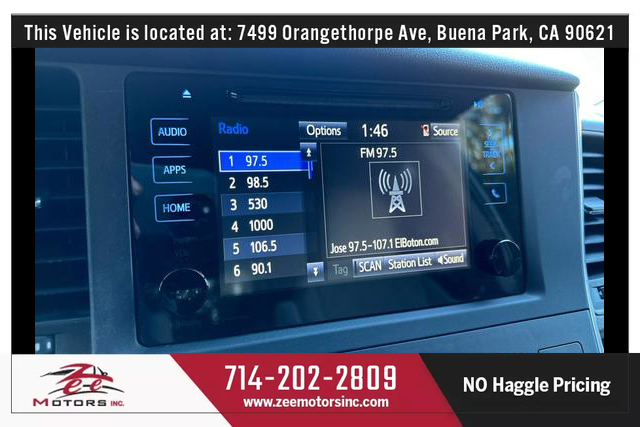 THIS VEHICLE IS LOCATED AT OUR BUENA PARK LOCATION: 7499 ORANGETHORPE AVE, BUENA PARK CA 90621. Please Call us at 714-202-2809 Ext #2 , Or email us at BUENAPARK@ZEEMOTORSINC.COM To Check Availability. **** 8-PASSENGERS MINI-VAN *****1 OWNER* Clean Title. * Clean Carfax. * Very Well Maintained Vehicle, Service records available on CARFAX. * Very Clean Inside and Outside.* Passed Safety inspection and Smog Check.Attention to all buyers: All special prices are cash price and it does not include sales tax, license and registration fee, documentation fee, smog fee or any dealer add-ons / accessories. Additional financing charges may apply on approved credit. While great effort is made to ensure the accuracy of the information provided on this site, errors do occur so please verify information with a team member. This is easily done by contacting us via phone or email.