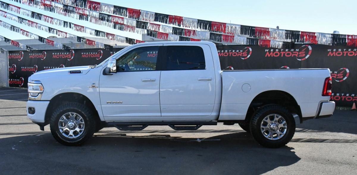 This Ram 2500 has a powerful Intercooled Turbo Diesel I-6 6.7 L/408 engine powering this Automatic transmission. WHEELS: 18 X 8.0 POLISHED ALUMINUM (STD), TRANSMISSION: 6-SPEED AUTOMATIC (68RFE), TOW HOOKS.*This Ram 2500 Features the Following Options *QUICK ORDER PACKAGE 2HH LARAMIE -inc: Engine: 6.7L I6 Cummins Turbo Diesel, Transmission: 6-Speed Automatic (68RFE) , TIRES: LT275/70R18E OWL ON/OFF ROAD, RADIO: UCONNECT 5 NAV W/12.0 DISPLAY, MANUFACTURER'S STATEMENT OF ORIGIN, LARAMIE LEVEL 1 EQUIPMENT GROUP -inc: Blind Spot & Cross Path Detection, Power Adjustable Pedals w/Memory, For Details, Visit DriveUconnect.com, For More Info, Call 800-643-2112, 12 Touchscreen Display, Auto Power-Folding Mirrors, Front LED Fog Lamps, Mirror Running Lights, Alexa Built-In, Power Adjustable Convex Aux Mirrors, Forward & Reverse Utility Lights, Disassociated Touchscreen Display, Remote Tailgate Release, 2nd Row In Floor Storage Bins, Rear Window Defroster, Rain Sensitive Windshield Wipers, Rear Power Sliding Window, GPS Navigation, Auto Dim Exterior Mirror, SiriusXM w/360L, Connected Travel & Traffic Services, LED Reflector Headlamps, Foam Bottle Insert (Door Trim Panel), Off-Road Information Pages, Selectable Tire Fill Alert, Trailer Tow Pages, HD Radio, Radio: Uconnect 5 Nav w/12.0 Display, Power Heated Fold Telescopic Mirrors w/Memory, Exterior Mirrors w/Supplemental Signals, Exterior Mirrors Courtesy Lamps, Auto High Beam Headlamp Control, Exterior Mirrors w/Memor, FRONT LICENSE PLATE BRACKET, ENGINE: 6.7L I6 CUMMINS TURBO DIESEL -inc: Selective Catalytic Reduction (Urea), Dual 730 Amp Maintenance Free Batteries, Cummins Turbo Diesel Badge, Heavy Duty Engine Cooling, Supplemental Heater, 220 Amp Alternator, Tow Hooks, Diesel Exhaust Brake, Front Bumper Sight Shields, Capless Fuel Fill w/o Discriminator, BRIGHT WHITE CLEARCOAT, BLIND SPOT & CROSS PATH DETECTION, BLACK, LEATHER TRIM 40/20/40 BENCH SEAT.