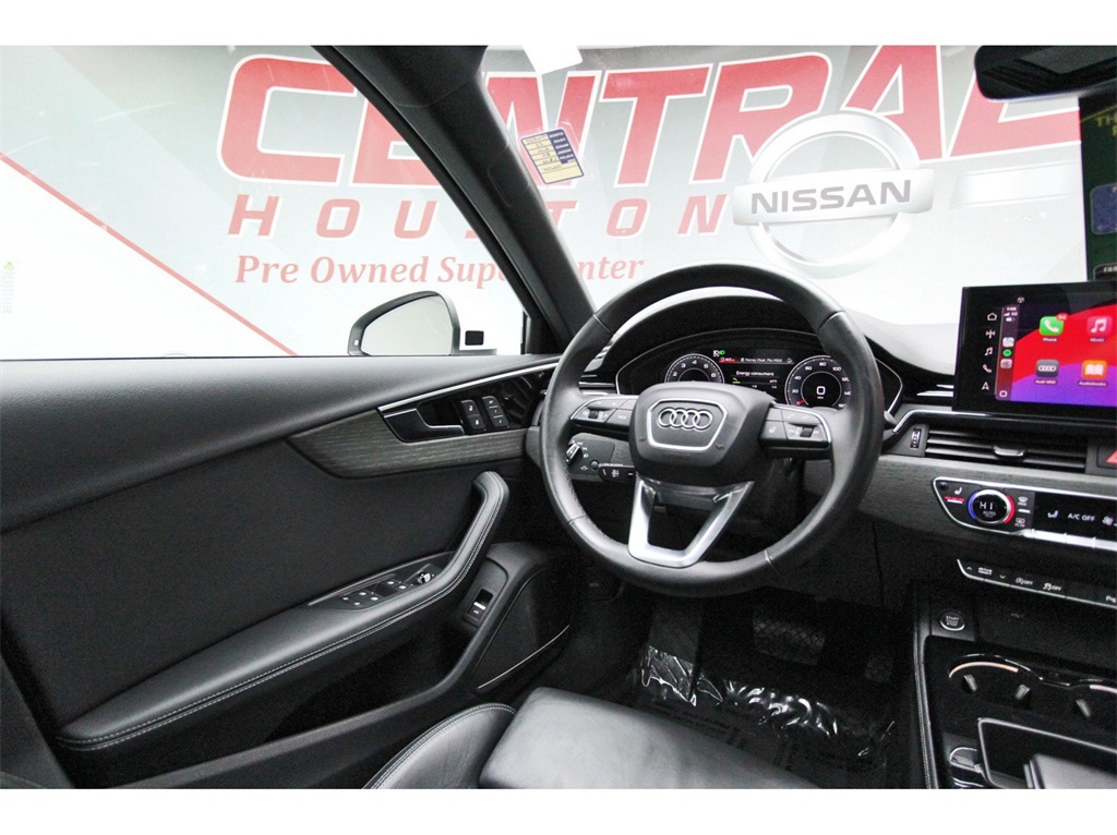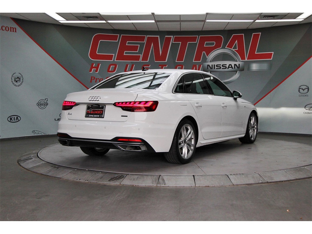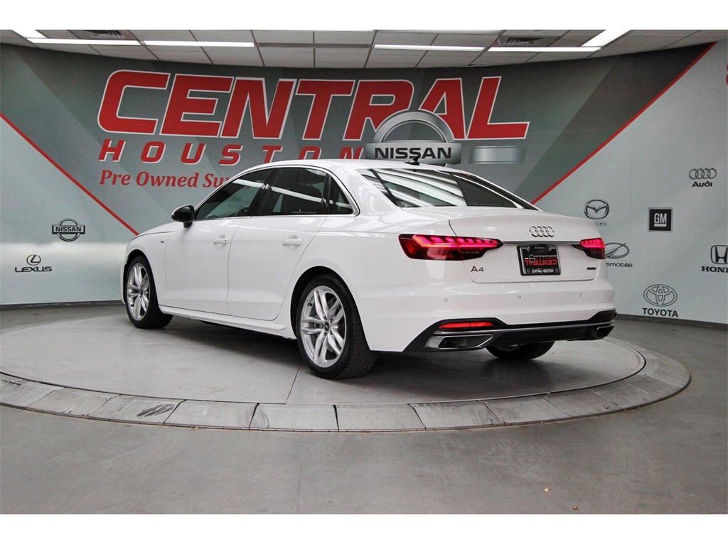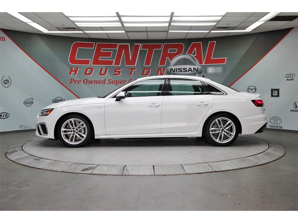 Central Houston Nissan is proud to present you with another True Market Priced Pre-Owned Vehicle. This 2023 Audi A4 45 S line Premium Plus quattro Nissan CPO Select is loaded with the following Factory Options: Nissan CPO Select Certified, 7-Speed Automatic S tronic, quattro, Black Leather, ABS brakes, Alloy wheels, Compass, Electronic Stability Control, Front dual zone A/C, Heated door mirrors, Heated front seats, Heated Front Sport Bucket Seats, Illuminated entry, Low tire pressure warning, Power moonroof, Remote keyless entry, and Traction control Nissan CPO Select Certified, 7-Speed Automatic S tronic, quattro, Black Leather, ABS brakes, Alloy wheels, Compass, Electronic Stability Control, Front dual zone A/C, Heated door mirrors, Heated front seats, Heated Front Sport Bucket Seats, Illuminated entry, Low tire pressure warning, Power moonroof, Remote keyless entry, Traction control, 10 Speakers, 4-Wheel Disc Brakes, Air Conditioning, AM/FM radio, Anti-whiplash front head restraints, Audi smartphone interface (Apple CarPlay/Android Auto), Auto High-beam Headlights, Auto-dimming Rear-View mirror, Automatic temperature control, Brake assist, Bumpers: body-color, Delay-off headlights, Driver door bin, Driver vanity mirror, Dual front impact airbags, Dual front side impact airbags, Emergency communication system: Audi connect CARE, Exterior Parking Camera Rear, Four wheel independent suspension, Front anti-roll bar, Front Bucket Seats, Front Center Armrest, Front fog lights, Front reading lights, Garage door transmitter: HomeLink, Genuine wood dashboard insert, Genuine wood door panel insert, Knee airbag, Leather Seating Surfaces, Leather Shift Knob, Leather steering wheel, Occupant sensing airbag, Outside temperature display, Overhead airbag, Overhead console, Panic alarm, Passenger door bin, Passenger vanity mirror, Power door mirrors, Power driver seat, Power passenger seat, Power steering, Power windows, Radio data system, Radio: Audi Sound System, Rain sensing wipers, Rear air conditioning, Rear anti-roll bar, Rear reading lights, Rear seat center armrest, Rear window defroster, Speed control, Speed-sensing steering, Speed-Sensitive Wipers, Split folding rear seat, Steering wheel mounted audio controls, Tachometer, Telescoping steering wheel, Tilt steering wheel, Trip computer, Turn signal indicator mirrors, Variably intermittent wipers, and Wheels: 18" 5-Double-Spoke Design!!Central Houston Nissan is more than just your typical car dealership. When our customers visit us, our goal is to provide quality vehicles, exceptional service and a friendly atmosphere. Our staff has been trained to create ease during your purchase or service experience and we are always making sure you get everything you want and deserve out of your visit. Our vision and mission is an employee-centered and customer-focused environment. Vehicles may be subject to prep package and market adjustment. When you buy from Central Houston Nissan, we'll make it the best car buying experience you've ever had. When you purchase a New Nissan or a qualifying Pre-Owned vehicle from Central Houston Nissan, you are automatically enrolled into our Central Houston Nissan Central Care Program at no cost to you. You can’t beat that! Vehicles may be subject to prep package and market adjustment. Stop by 2901 S Loop W, Houston, Texas 77054 today!!!