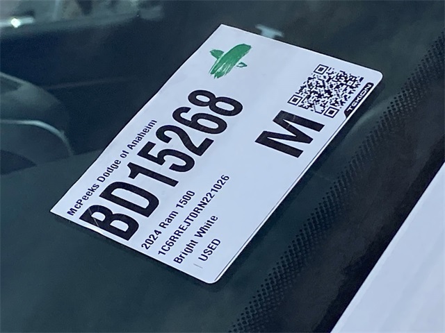 Certified. Odometer is 1857 miles below market average! CARFAX One-Owner. INTERIOR & EXTERIOR PROFESSIONALLY DETAILED FOR DELIVERY, MCPEEK CHRYSLER DODGE JEEP RAM FAMILY OWNED AND OPERATED SINCE 1961 !!!!!.Bright White Clearcoat 2024 Ram 1500 Laramie RWD 8-Speed AutomaticFCA US LLC Certified Pre-Owned Details: * Warranty Deductible: $100 * Vehicles Up to 75,000 Miles and/or 5 Model Years. 24-Hour Towing & Roadside Assistance, Car Rental Allowance, CARFAX® Vehicle History ReportTM and an Introductory 3-month Subscription to SiriusXM® Satellite Radio & Certified Warranty Upgrades * Limited Warranty: 3 Month/3,000 Mile (whichever comes first) after new car warranty expires or from certified purchase date * Vehicle History * Roadside Assistance * Powertrain Limited Warranty: 84 Month/100,000 Mile (whichever comes first) from original in-service date * 125 Point Inspection * Transferable WarrantyReceive Free lube and oil filter changes for up to 45,000 miles for 3 years!!! McPeek's Dodge of Anahiem 1221 S. Auto Center Drive Anahiem, CA 92806 714-262-4902.