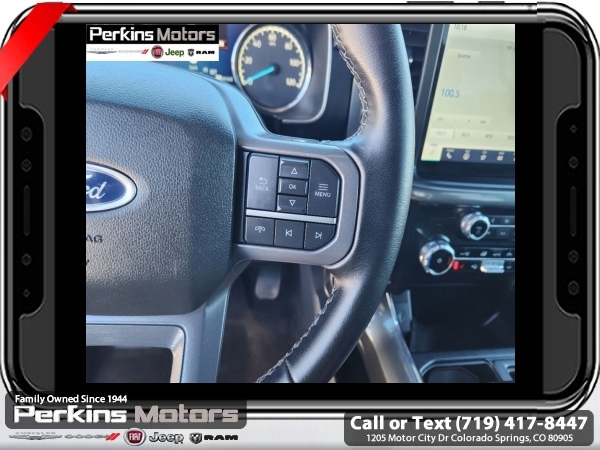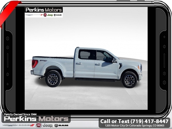 Gray 4WD 3.5L V6 EcoBoost 10-Speed Automatic<br><br>4WD, 10-Way Power Driver & Passenger Seats, 3.31 Axle Ratio, 8 Productivity Screen in Instrument Cluster, ABS brakes, Accent-Color Step Bars, Alloy wheels, Auto-Dimming Rear-View Mirror, Bed Utility Package, Black 2-Bar Style Grille w/Black Surround/Accents, Body-Color Door & Tailgate Handles, Body-Color Front & Rear Bumpers, Box Side Decals, BoxLink, Class IV Trailer Hitch Receiver, Compass, Dual Zone Electronic Automatic Temperature Control, Electronic Stability Control, Equipment Group 302A High, GVWR: 7,150 lbs Payload Package, Heated door mirrors, Heated Front Seats, Illuminated entry, Intelligent Access w/Push Button Start, LED Box Lighting, LED Reflector Headlamps, LED Sideview Mirror Spotlights, Low tire pressure warning, Navigation System, Onboard 400W Outlet, Power Glass Heated Sideview Mirrors, Radio: AM/FM SiriusXM w/360L, Rear Under-Seat Storage, Remote keyless entry, Remote Start System w/Remote Tailgate Release, SecuriCode Drivers Side Keyless-Entry Keypad, SYNC 4 w/Enhanced Voice Recognition, Tailgate Step w/Tailgate Work Surface, Traction control, Twin Panel Moonroof, Unique Sport Cloth 40/Console/40 Front-Seats, Wheels: 18 6-Spoke Machined Aluminum, Wrapped Steering Wheel, XLT Sport Appearance Package, Zone Lighting.<br><br><br>Clean CARFAX.<br><br>Check us out at www.perkinsmotors.com to see our specials! Since opening our doors in 1944, we’ve been proud to serve Colorado Springs, CO, and the surrounding areas of Pueblo, Castle Rock and Denver, CO. Throughout this time of being family owned for 80 years, we’ve maintained a firm commitment to our customers: to offer a wide selection of New Chrysler, Dodge, Fiat, Jeep, and Ram vehicles and quality pre-owned vehicles, and provide a quick, no-hassle car-buying process that ensures everyone drives off the lot satisfied with their purchase.<br><br><br>Bed Utility Package (BoxLink, LED Box Lighting, Tailgate Step w/Tailgate Work Surface, and Zone Lighting), Equipment Group 302A High (10-Way Power Driver & Passenger Seats, 8 Productivity Screen in Instrument Cluster, Auto-Dimming Rear-View Mirror, Class IV Trailer Hitch Receiver, Dual Zone Electronic Automatic Temperature Control, Heated Front Seats, Intelligent Access w/Push Button Start, LED Reflector Headlamps, LED Sideview Mirror Spotlights, Onboard 400W Outlet, Power Glass Heated Sideview Mirrors, Radio: AM/FM SiriusXM w/360L, Rear Under-Seat Storage, Remote Start System w/Remote Tailgate Release, SecuriCode Drivers Side Keyless-Entry Keypad, SYNC 4 w/Enhanced Voice Recognition, and Wrapped Steering Wheel), GVWR: 7,150 lbs Payload Package, XLT Sport Appearance Package (Accent-Color Step Bars, Black 2-Bar Style Grille w/Black Surround/Accents, Body-Color Door & Tailgate Handles, Body-Color Front & Rear Bumpers, Box Side Decals, Unique Sport Cloth 40/Console/40 Front-Seats, and Wheels: 18 6-Spoke Machined Aluminum), 4WD, 3.31 Axle Ratio, ABS brakes, Alloy wheels, Compass, Electronic Stability Control, Heated door mirrors, Illuminated entry, Low tire pressure warning, Navigation System, Remote keyless entry, Traction control, Twin Panel Moonroof, 4-Wheel Disc Brakes, 6 Speakers, Air Conditioning, AM/FM radio, Auto High-beam Headlights, Brake assist, Bumpers: chrome, Cloth 40/20/40 Front Seat, Cruise Control, Delay-off headlights, Driver door bin, Driver vanity mirror, Dual front impact airbags, Dual front side impact airbags, Emergency communication system: SYNC 4 911 Assist, Exterior Parking Camera Rear, Front anti-roll bar, Front Center Armrest w/Storage, Front fog lights, Front reading lights, Front wheel independent suspension, Fully automatic headlights, Occupant sensing airbag, Outside temperature display, Overhead airbag, Overhead console, Panic alarm, Passenger door bin, Passenger vanity mirror, Power door mirrors, Power steering, Power windows, Radio data system, Radio: AM/FM Stereo w/6 Speakers, Rear reading lights, Rear step bumper, Rear window