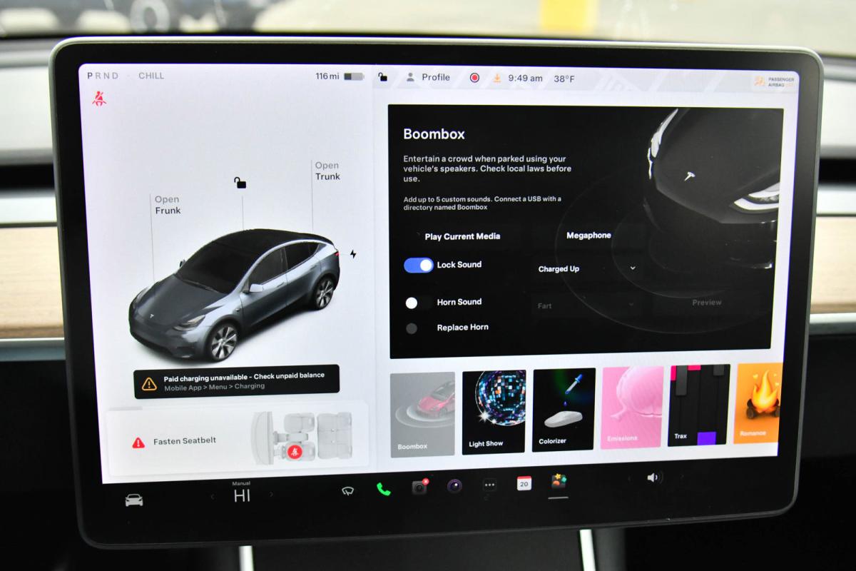 Only 38,296 Miles! This Tesla Model Y boasts a Electric engine powering this Automatic transmission. Window Grid Antenna, Wheels: 19 x 9.5 Gemini, Voice Activated Dual Zone Front Automatic Air Conditioning w/Steering Wheel Controls.*This Tesla Model Y Comes Equipped with These Options *Valet Function, Trip Computer, Transmission: 1-Speed Automatic, Tracker System, Towing Equipment -inc: Trailer Sway Control, Tires: 255/45R19, Tire Specific Low Tire Pressure Warning, Tailgate/Rear Door Lock Included w/Power Door Locks, Smart Device Integration, Simulated Suede Door Trim Insert.