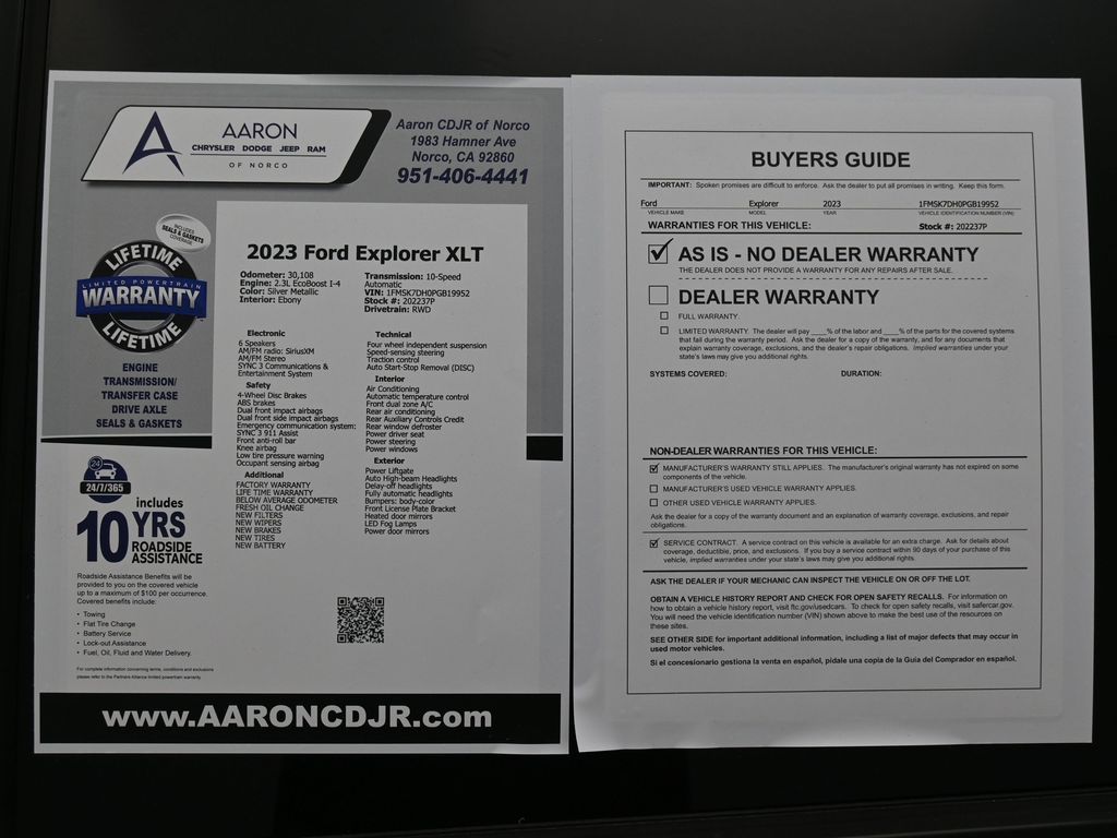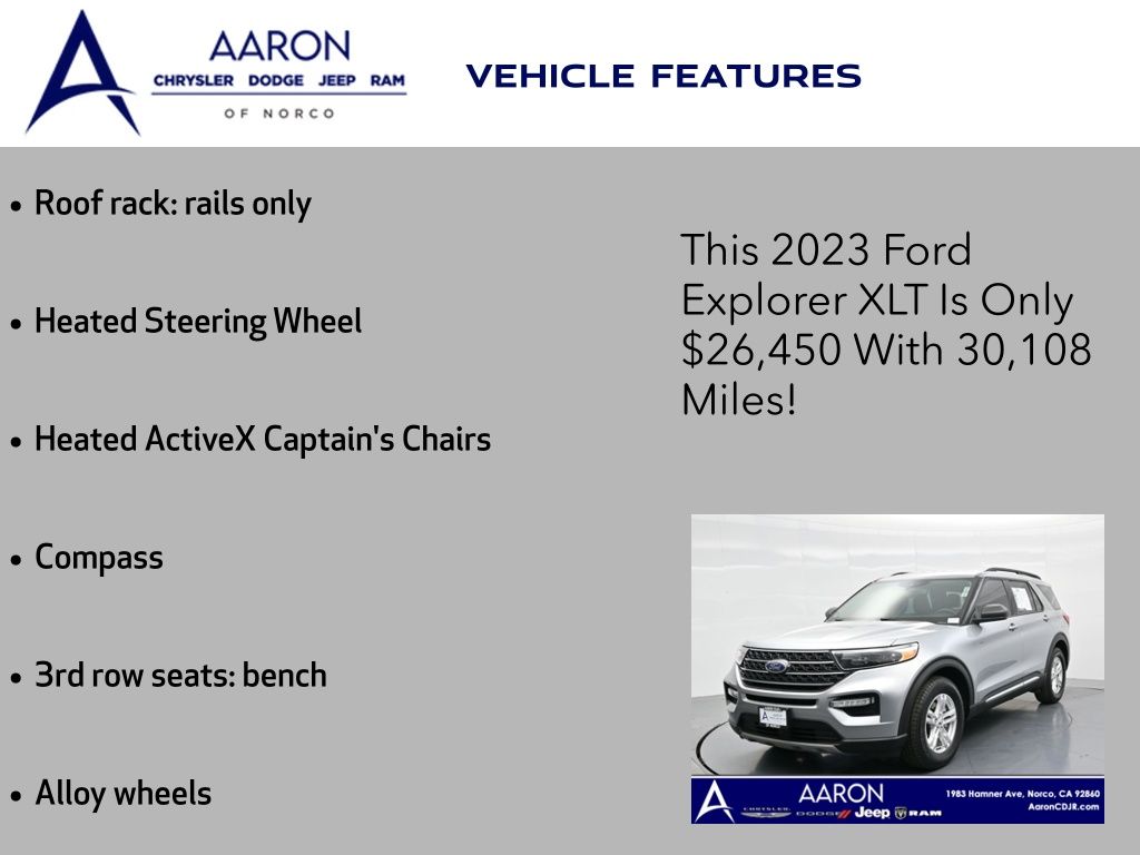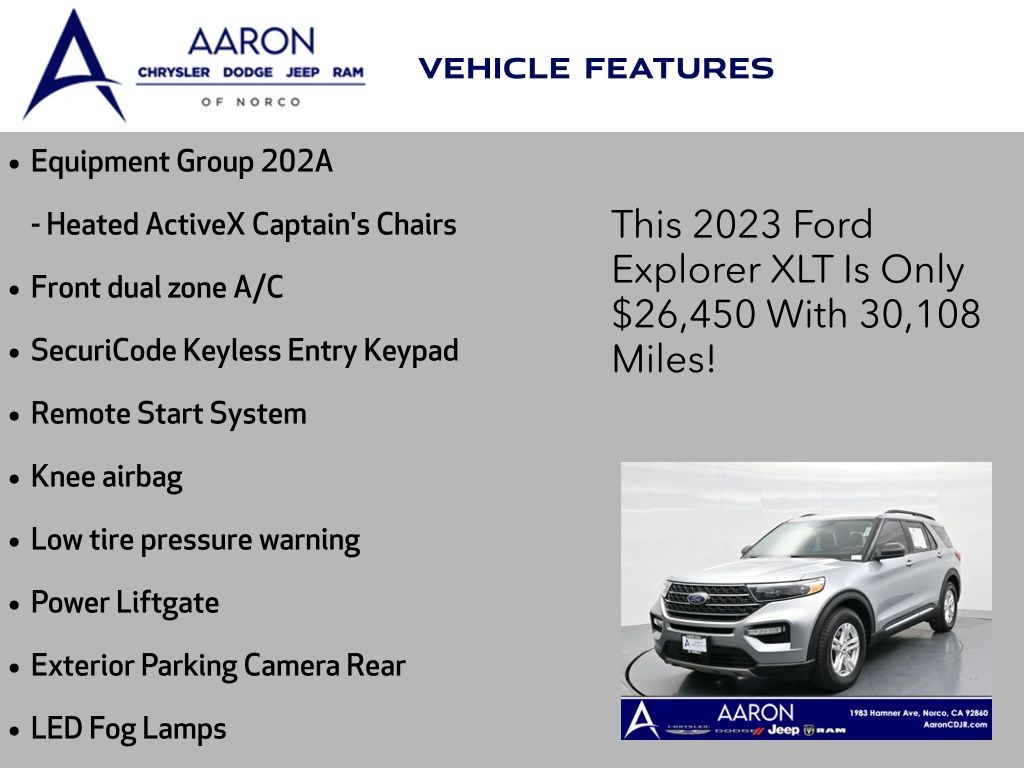 Priced below KBB Fair Purchase Price!FACTORY WARRANTY, LIFE TIME WARRANTY, FRESH OIL CHANGE, NEW FILTERS, NEW WIPERS, Explorer XLT, 4D Sport Utility, 2.3L EcoBoost I-4, 10-Speed Automatic, RWD, 3rd row seats: bench, Alloy wheels, Compass, Equipment Group 202A, Exterior Parking Camera Rear, Front dual zone A/C, Heated ActiveX Captain's Chairs, Heated Steering Wheel, Knee airbag, LED Fog Lamps, Low tire pressure warning, Power Liftgate, Remote Start System, Roof rack: rails only, SecuriCode Keyless Entry Keypad, Spoiler.For help with any Vehicle needs please call us directly at 951-621-1288.Clean CARFAX.
