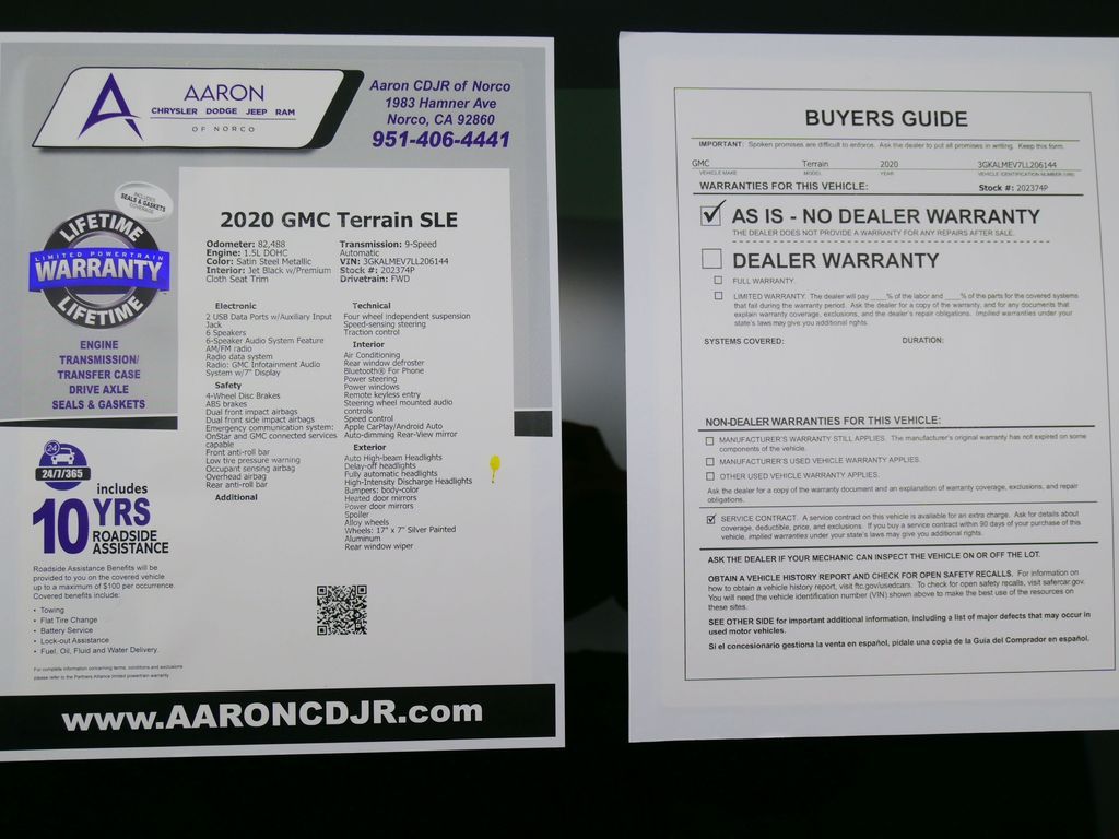Priced below KBB Fair Purchase Price!Terrain SLE, 4D Sport Utility, 1.5L DOHC, 9-Speed Automatic, FWD, 2 USB Data Ports w/Auxiliary Input Jack, 6-Speaker Audio System Feature, Air Conditioning, Apple CarPlay/Android Auto, Bluetooth® For Phone, Brake assist, Electronic Stability Control, Exterior Parking Camera Rear, Fully automatic headlights, High-Intensity Discharge Headlights, Radio: GMC Infotainment Audio System w/7" Display, Spoiler, Wheels: 17" x 7" Silver Painted Aluminum.CARFAX One-Owner.
