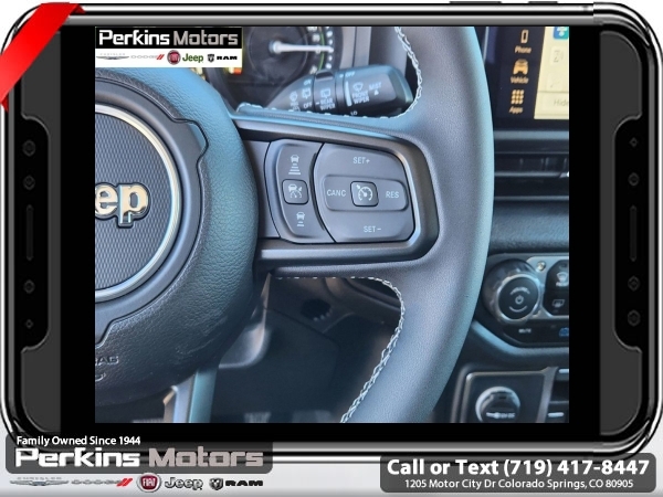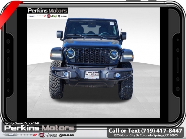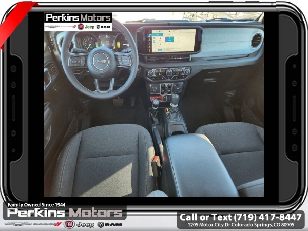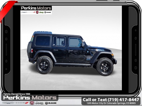 Factory MSRP: $61,715 $10,500 off MSRP! Priced below KBB Fair Purchase Price! Black Clearcoat 2025 Jeep Wrangler Willys 4xe 4WD 8-Speed Automatic 2.0L I4 DOHC<br>2.0L I4 DOHC.<br>Check us out at www.perkinsmotors.com to see our specials! Since opening our doors in 1944, we’ve been proud to serve Colorado Springs, CO, and the surrounding areas of Pueblo, Castle Rock and Denver, CO. Throughout this time of being family owned for 80 years, we’ve maintained a firm commitment to our customers: to offer a wide selection of New Chrysler, Dodge, Fiat, Jeep, and Ram vehicles and quality pre-owned vehicles, and provide a quick, no-hassle car-buying process that ensures everyone drives off the lot satisfied with their purchase.<br><br>Convenience Group (Heated Front Seats and Remote Start System), Quick Order Package 29W Willys 4xe (Conventional Differential Front Axle, Off-Road Plus Mode, and Wheels: 17 x 7.5 Painted Black), 2.0L I4 DOHC, 3.73 Rear Axle Ratio, 4-Wheel Disc Brakes, 8 Speakers, ABS brakes, Air Conditioning, Alloy wheels, Apple CarPlay/Android Auto, Black 3-Piece Hard Top, Brake assist, Cloth Low-Back Bucket Seats, Compass, Cruise Control, Delay-off headlights, Driver door bin, Driver vanity mirror, Dual front impact airbags, Dual front side impact airbags, Electronic Stability Control, Front anti-roll bar, Front Bucket Seats, Front Center Armrest w/Storage, Front fog lights, Front License Plate Bracket (DISC), Front reading lights, Fully automatic headlights, Heated door mirrors, Illuminated entry, Integrated roll-over protection, Low tire pressure warning, Occupant sensing airbag, Outside temperature display, Overhead airbag, Panic alarm, ParkView Rear Back-Up Camera, Passenger door bin, Passenger vanity mirror, Power door mirrors, Power steering, Power windows, Radio data system, Radio: Uconnect 5 w/12.3 Display, Rear anti-roll bar, Rear reading lights, Remote keyless entry, Security system, Split folding rear seat, Sport Suspension, Steering wheel mounted audio controls, Tachometer, Telescoping steering wheel, Tilt steering wheel, Traction control, Trip computer, Variably intermittent wipers, Voltmeter, and Wheels: 20 x 8 Machined/Painted Gray. Sale price includes all manufacture's incentives and dealer discounts. Sale price not available on lease or compatible with special APR. $500 - 2025 National Jeep Celebration Event Bonus Cash . Exp. 03/31/2025 $6500 - 2025 National Retail Consumer Cash. Exp. 03/31/2025