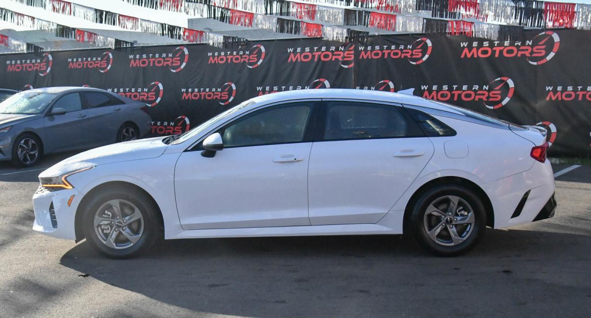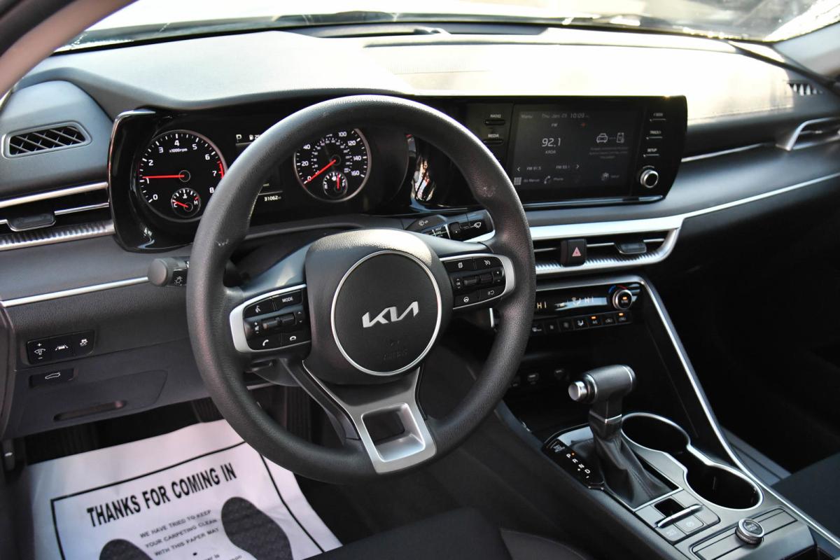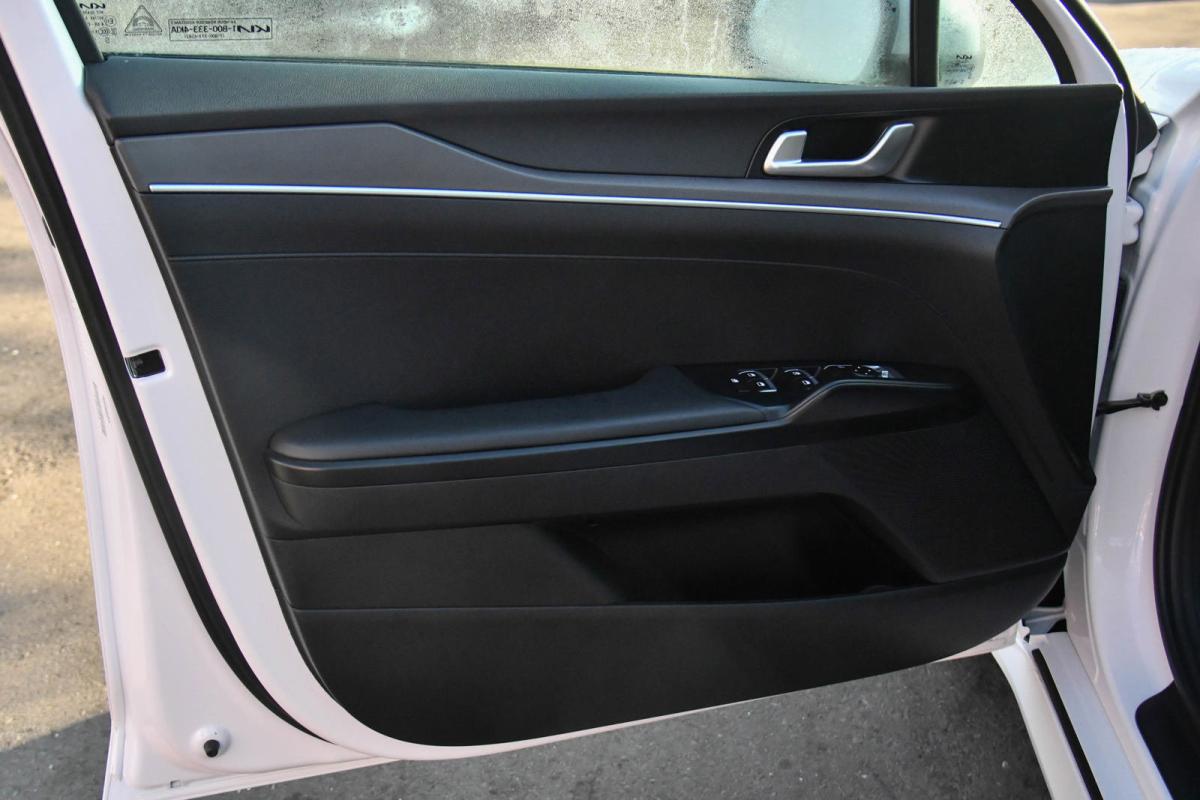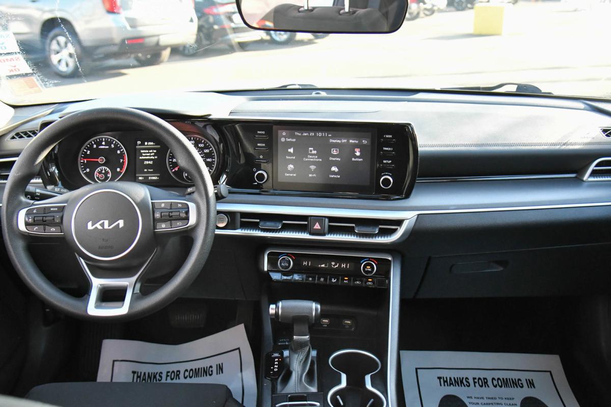 Boasts 37 Highway MPG and 27 City MPG! This Kia K5 boasts a Intercooled Turbo Regular Unleaded I-4 1.6 L/98 engine powering this Automatic transmission. GLACIAL WHITE PEARL, CARPETED FLOOR MATS, BLACK, CLOTH SEAT TRIM.*This Kia K5 Features the Following Options *Window Grid Antenna, Wheels: 16 Gray Alloy, Variable Intermittent Wipers, Urethane Gear Shifter Material, Turn-By-Turn Navigation Directions, Trunk Rear Cargo Access, Trip Computer, Transmission: 8-Speed Automatic -inc: drive mode select system, Transmission w/Sequential Shift Control, Tires: 205/65R16.