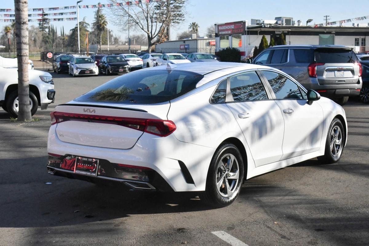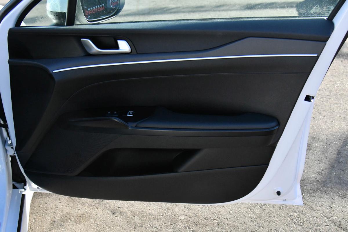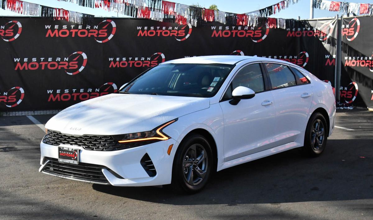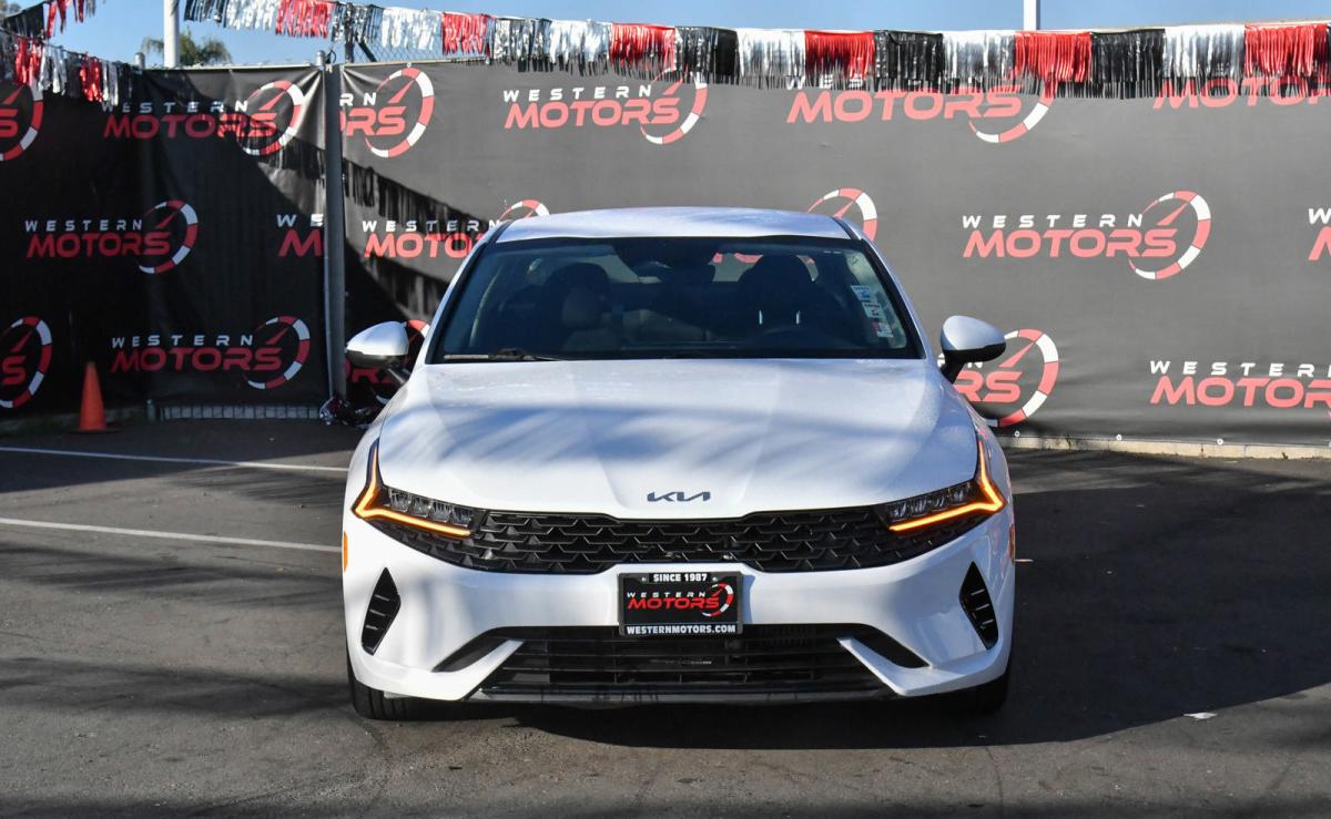 Boasts 37 Highway MPG and 27 City MPG! This Kia K5 boasts a Intercooled Turbo Regular Unleaded I-4 1.6 L/98 engine powering this Automatic transmission. GLACIAL WHITE PEARL, CARPETED FLOOR MATS, BLACK, CLOTH SEAT TRIM.*This Kia K5 Features the Following Options *Window Grid Antenna, Wheels: 16 Gray Alloy, Variable Intermittent Wipers, Urethane Gear Shifter Material, Turn-By-Turn Navigation Directions, Trunk Rear Cargo Access, Trip Computer, Transmission: 8-Speed Automatic -inc: drive mode select system, Transmission w/Sequential Shift Control, Tires: 205/65R16.