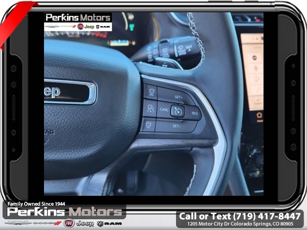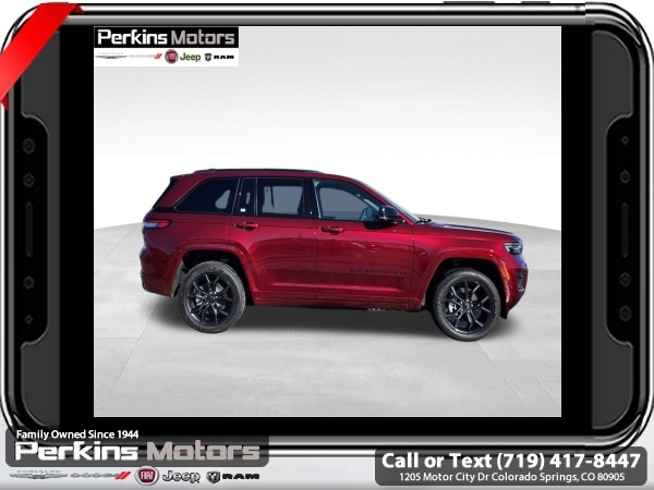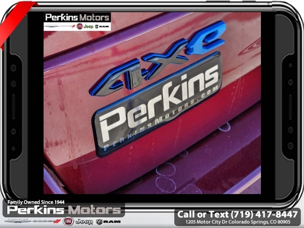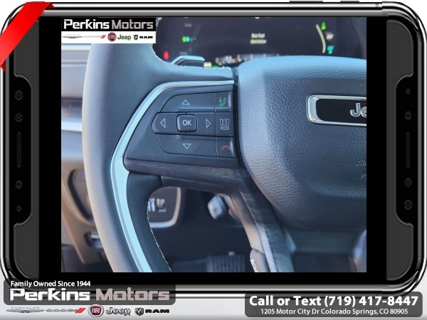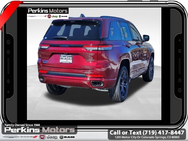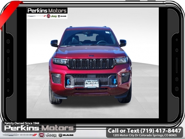 Factory MSRP: $66,575 $10,500 off MSRP! Priced below KBB Fair Purchase Price! Velvet Red Pearlcoat 2025 Jeep Grand Cherokee 4xe 4WD 8-Speed Automatic 2.0L I4 DOHC<br>2.0L I4 DOHC, 4WD.<br>Check us out at www.perkinsmotors.com to see our specials! Since opening our doors in 1944, we’ve been proud to serve Colorado Springs, CO, and the surrounding areas of Pueblo, Castle Rock and Denver, CO. Throughout this time of being family owned for 80 years, we’ve maintained a firm commitment to our customers: to offer a wide selection of New Chrysler, Dodge, Fiat, Jeep, and Ram vehicles and quality pre-owned vehicles, and provide a quick, no-hassle car-buying process that ensures everyone drives off the lot satisfied with their purchase.<br><br>Quick Order Package 27W Anniversary Edition (2 Front Tow Hooks, 2nd-Row Manual Window Shades, Auto-Dimming Exterior Driver Mirror, Blue Tow Hooks, Dual Bright Exhaust Tips, Front Fascia Upper B, Gloss Black Exterior Accents, Integrated Off-Road Camera, Memory Steering Column, Painted Lower Front Fascia, Painted Lower Rear Fascia, Painted Wheel Flares, ParkSense Front/Rear Park Assist w/Stop, Power Tilt/Telescope Steering Column, Rain Sensitive Windshield Wipers, Rear Back Up Camera Washer, Rearview Autodim Digital Display Mirror, and Surround View Camera System), 2.0L I4 DOHC, 4WD, 10 Speakers, 4-Wheel Disc Brakes, ABS brakes, Air Conditioning, Alloy wheels, AM/FM radio: SiriusXM with 360L, Anti-whiplash front head restraints, Audio memory, Auto High-beam Headlights, Automatic temperature control, Brake assist, Bumpers: body-color, Capri Leatherette Seats, Compass, Cruise Control, Delay-off headlights, Driver door bin, Driver vanity mirror, Dual front impact airbags, Dual front side impact airbags, Electronic Stability Control, Four wheel independent suspension, Front anti-roll bar, Front Bucket Seats, Front Center Armrest w/Storage, Front dual zone A/C, Front fog lights, Front License Plate Bracket, Front reading lights, Fully automatic headlights, Garage door transmitter, Heated door mirrors, Heated front seats, Heated rear seats, Heated steering wheel, Heavy Duty Suspension, Illuminated entry, Knee airbag, Low tire pressure warning, Memory seat, Model Year Tracking, Navigation System, Occupant sensing airbag, Outside temperature display, Overhead airbag, Overhead console, Panic alarm, ParkView Rear Back-Up Camera, Passenger door bin, Passenger vanity mirror, Power door mirrors, Power driver seat, Power Liftgate, Power moonroof, Power passenger seat, Power steering, Power windows, Radio data system, Radio: Uconnect 5 Nav w/10.1 Display, Rear anti-roll bar, Rear reading lights, Rear window defroster, Rear window wiper, Remote keyless entry, Security system, Speed-Sensitive Wipers, Split folding rear seat, Spoiler, Steering wheel mounted audio controls, Tachometer, Telescoping steering wheel, Tilt steering wheel, Traction control, Trip computer, Turn signal indicator mirrors, Variably intermittent wipers, Voltmeter, Wheels: 18 x 8 Fully Painted Aluminum, and Wheels: 20 x 8.5 Black Painted Aluminum. Sale price includes all manufacture's incentives and dealer discounts. Sale price not available on lease or compatible with special APR. $500 - 2025 National Presidents Day Bonus Cash. Exp. 03/03/2025 $6500 - 2025 National Retail Consumer Cash. Exp. 03/03/2025
