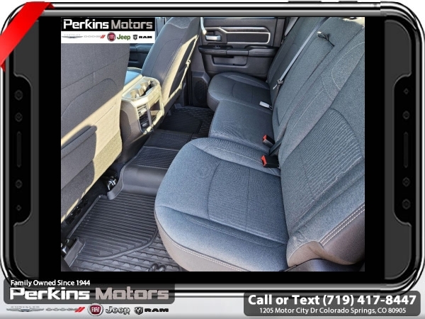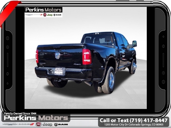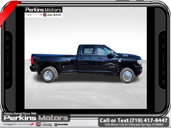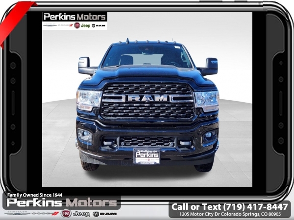 Factory MSRP: $82,705 $11,500 off MSRP! Diamond Black Crystal Pearlcoat 2024 Ram 3500 Big Horn 4WD 6-Speed Automatic Cummins 6.7L I6 Turbodiesel<br><br>Check us out at www.perkinsmotors.com to see our specials! Since opening our doors in 1944, we’ve been proud to serve Colorado Springs, CO, and the surrounding areas of Pueblo, Castle Rock and Denver, CO. Throughout this time of being family owned for 80 years, we’ve maintained a firm commitment to our customers: to offer a wide selection of New Chrysler, Dodge, Fiat, Jeep, and Ram vehicles and quality pre-owned vehicles, and provide a quick, no-hassle car-buying process that ensures everyone drives off the lot satisfied with their purchase.<br><br>Bed Utility Group (LED Bed Lighting, MOPAR Deployable Bed Step, and MOPAR Spray In Bedliner), Cold Weather Group (Engine Block Heater), Heated Seats & Wheel Group (Heated Front Seats, Heated Steering Wheel, Leather Wrapped Steering Wheel, and Steering Wheel Mounted Audio Controls), Level 1 Equipment Group (2 Way Rear Headrest Seat, 4 Way Front Headrests, 40/20/40 Split Bench Seat, 4G LTE Wi-Fi Hot Spot, Black Exterior Mirrors, Bluetooth Handsfree Phone & Audio, Center Hub, Connectivity - US/Canada, Exterior Mirrors Courtesy Lamps, Exterior Mirrors w/Heating Element, Exterior Mirrors w/Supplemental Signals, Footwell Courtesy Lamp, For Details Visit DriveUconnect.com, For More Info, Call 800-643-2112, Forward & Reverse Utility Lights, Front Armrest w/Cupholders, Front Fog Lamps, Front Seat Back Map Pockets, Global Telematics Box Module (TBM), GPS Antenna Input, Integrated Voice Command w/Bluetooth, Locking Lower Glove Box, Manual Adjust 4-Way Front Passenger Seat, Power Adjust Mirrors, Power Heated Fold Telescopic Mirrors, Power-Adjustable Convex Aux Mirrors, Premium Cloth 40/20/40 Bench Seat, Remote USB Port - Charge Only, SiriusXM Radio Service, Storage Tray, and Wheels: 18 x 8.0 Polished Aluminum), Protection Group, Quick Order Package 2HZ Big Horn, Safety Group (Adaptive Cruise Control w/Stop and Rain Sensitive Windshield Wipers), Sport Appearance Package (Black Interior Accents, Body Color Door Handles, Body Color Grille Surround, and Sport Decal), Towing Technology Group (CTR Stop Lamp w/Cargo View Camera and Surround View Camera System), 220 Amp Alternator, 3.73 Axle Ratio, 4-Wheel Disc Brakes, 50 Gallon Fuel Tank, 5th Wheel/Gooseneck Towing Prep Group, 6 Speakers, 9 Alpine Speakers w/Subwoofer, ABS brakes, Active Noise Control System, Air Conditioning, Air Conditioning ATC w/Dual Zone Control, Auto Level Rear Air Suspension, Blind Spot & Cross Path Detection, Brake assist, Bumpers: chrome, Clearance Lamps, Cloth 40/20/40 Bench Seat, Compass, Connected Travel & Traffic Services, Cruise Control, Delay-off headlights, Disassociated Touchscreen Display, Driver door bin, Dual front impact airbags, Dual front side impact airbags, Dual Rear Wheels, Electronic Stability Control, Electronically Controlled Throttle, Emergency communication system: SiriusXM Guardian, Front anti-roll bar, Front Center Armrest w/Storage, Front License Plate Bracket, Front reading lights, Fully automatic headlights, HD Radio, Heated door mirrors, Illuminated entry, LED Tail Lamps, Low tire pressure warning, Manual Adjust 4-Way Driver Seat, Manufacturer's Statement of Origin, MOPAR Front & Rear Rubber Floor Mats, Occupant sensing airbag, Outside temperature display, Overhead airbag, Overhead console, Panic alarm, ParkSense Front/Rear Park Assist System, ParkView Rear Back-Up Camera, Passenger door bin, Passenger vanity mirror, Power door mirrors, Power steering, Power windows, Radio data system, Radio: Uconnect 3 w/5 Display, Radio: Uconnect 5 Nav w/8.4 Display, Rear Folding Seat, Rear seat c Sale price includes all manufacture's incentives and dealer discounts. Sale price not available on lease or compatible with special APR. $1500 - 2024 National Stellantis Loyalty Bonus Cash . Exp. 04/30/2025 $2500 - 2024 National Truck Month Bonus Cash. Exp. 0