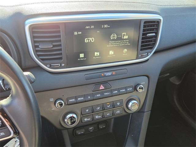 Recent Arrival!CARFAX One-Owner.Priced below KBB Fair Purchase Price!Odometer is 8426 miles below market average!23/30 City/Highway MPGPacific Blue 2021 Kia Sportage S FWD 6-Speed Automatic Electronic with Overdrive 2.4L I4 DGI DOHC 16VIf you don't drive here, you can't save here!Awards: * JD Power Initial Quality Study (IQS)Price may not include recon fee. 4-Wheel Disc Brakes, 6 Speakers, 6-Way Adjustable Driver's Seat, ABS brakes, Air Conditioning, Alloy wheels, AM/FM radio, Apple CarPlay & Android Auto, Auto High-beam Headlights, Axle Ratio: 3.064, Brake assist, Bumpers: body-color, Carpet Floor Mats, Delay-off headlights, Driver door bin, Driver vanity mirror, Dual front impact airbags, Dual front side impact airbags, Electronic Stability Control, Exterior Parking Camera Rear, Four wheel independent suspension, Front anti-roll bar, Front Bucket Seats, Front Center Armrest, Front fog lights, Front reading lights, Fully automatic headlights, Heated door mirrors, Illuminated entry, Leather steering wheel, Leatherette Seat Trim, Low tire pressure warning, Occupant sensing airbag, Outside temperature display, Overhead airbag, Overhead console, Panic alarm, Passenger door bin, Passenger vanity mirror, Power door mirrors, Power steering, Power windows, Radio: AM/FM Audio System, Rear anti-roll bar, Rear seat center armrest, Rear window defroster, Rear window wiper, Remote keyless entry, Roof rack: rails only, Security system, Speed control, Speed-sensing steering, Split folding rear seat, Spoiler, Steering wheel mounted audio controls, Tachometer, Telescoping steering wheel, Tilt steering wheel, Traction control, Trip computer, Turn signal indicator mirrors, Variably intermittent wipers, and Wheels: 18" Gray Alloy.
