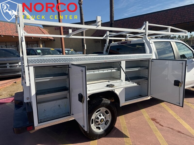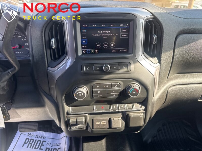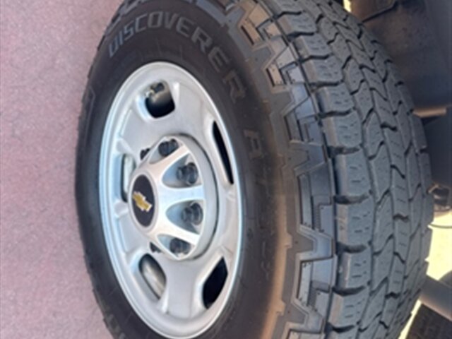 INSTALLED FEATURES: Air filtration, Front air conditioning, Front air conditioning zones: single, Rear vents: second row, Airbag deactivation: occupant sensing passenger, Front airbags: dual, Side airbags: front, Side curtain airbags: front / rear, Antenna type: mast, Auxiliary audio input: Bluetooth / iPod/iPhone / USB, Radio: AM/FM / touch screen display, Radio data system, Speed sensitive volume control, Total speakers: 6, ABS: 4-wheel, Braking assist, Electronic brakeforce distribution, Electronic parking brake: auto off, Front brake type: ventilated disc, Power brakes, Rear brake type: ventilated disc, Armrests: front center, Floor material: rubber/vinyl, Steering wheel trim: urethane, Assist handle: front / rear, Capless fuel filler system, Cupholders: front, One-touch windows: 4, Overhead console: front, Power outlet(s): 12V front / USB front, Power steering, Power windows: lockout button, Reading lights: front / rear, Rearview mirror: manual day/night, Steering wheel: tilt, Storage: door pockets, Sun visors, Bumper detail: rear step, Door handle color: black, Exhaust tip color: stainless steel, Fender lip moldings: black, Front bumper color: black, Grille color: black, Hood scoop, Mirror color: black, Pickup bed light, Rear bumper color: black, Tailgate: removable, Window trim: black, Infotainment: Chevrolet Infotainment System, Infotainment screen size: 7 in., Smartphone integration: Android Auto / Apple CarPlay, Clock, Digital odometer, External temperature display, Fuel economy display: MPG / range, Gauge: oil pressure / tachometer, Instrument cluster screen size: 3.5 in., Multi-function display, Powertrain hour meter, Trip odometer, Warnings and reminders: coolant temperature warning / lamp failure / low battery / low fuel level / low oil pressure / maintenance due, Daytime running lights, Headlights: auto delay off / auto on/off / halogen / wiper activated, Side mirror adjustments: manual / manual folding / manual telescoping, Towing mirrors, Alternator: 170 amps, Auxiliary oil cooler, Auxiliary transmission fluid cooler, Battery: heavy duty / maintenance-free, Battery rating: 720 CCA, Battery saver, Locking differential: rear, Camera system: rearview, Check rear seat reminder, Child safety door locks, Child seat anchors: LATCH system, Programmable safety key, Rearview monitor: in dash, Emergency locking retractors: front, Front seatbelts: 3-point, Rear seatbelts: 3-point, Seatbelt pretensioners: front, Seatbelt warning sensor: front, Driver seat manual adjustments: 4 / reclining, Front headrests: 2 / adjustable, Front seat type: 40-20-40 split bench, Passenger seat manual adjustments: 4 / reclining, Rear headrests: 3 / adjustable, Rear seat folding: folds up, Rear seat type: 60-40 split bench, Upholstery: vinyl, Anti-theft system: vehicle immobilizer, Power door locks: anti-lockout / auto-locking, Hill holder control, Roll stability control, Stability control, Traction control, Trailer stability control, Front shock type: twin-tube gas, Front spring type: torsion bars, Front stabilizer bar: diameter 35 mm, Front suspension classification: independent, Front suspension type: short and long arm, Rear shock type: twin-tube gas, Rear spring type: leaf, Rear suspension classification: solid live axle, Rear suspension type: multi-leaf, Electronic messaging assistance: voice operated / with read function, Hands-free phone call integration: voice operated, Wireless data link: Bluetooth, Pickup bed cargo management: tie-down anchors, Tow hooks: front, Tow/Haul mode, Trailer hitch, Trailer wiring: 4-pin / 7-pin, Spare tire mount location: underbody, Spare tire size: full-size, Spare wheel type: steel, Tire Pressure Monitoring System, Wheels: painted steel, Front wipers: variable intermittent, Power windows: safety reverse, Solar-tinted glass