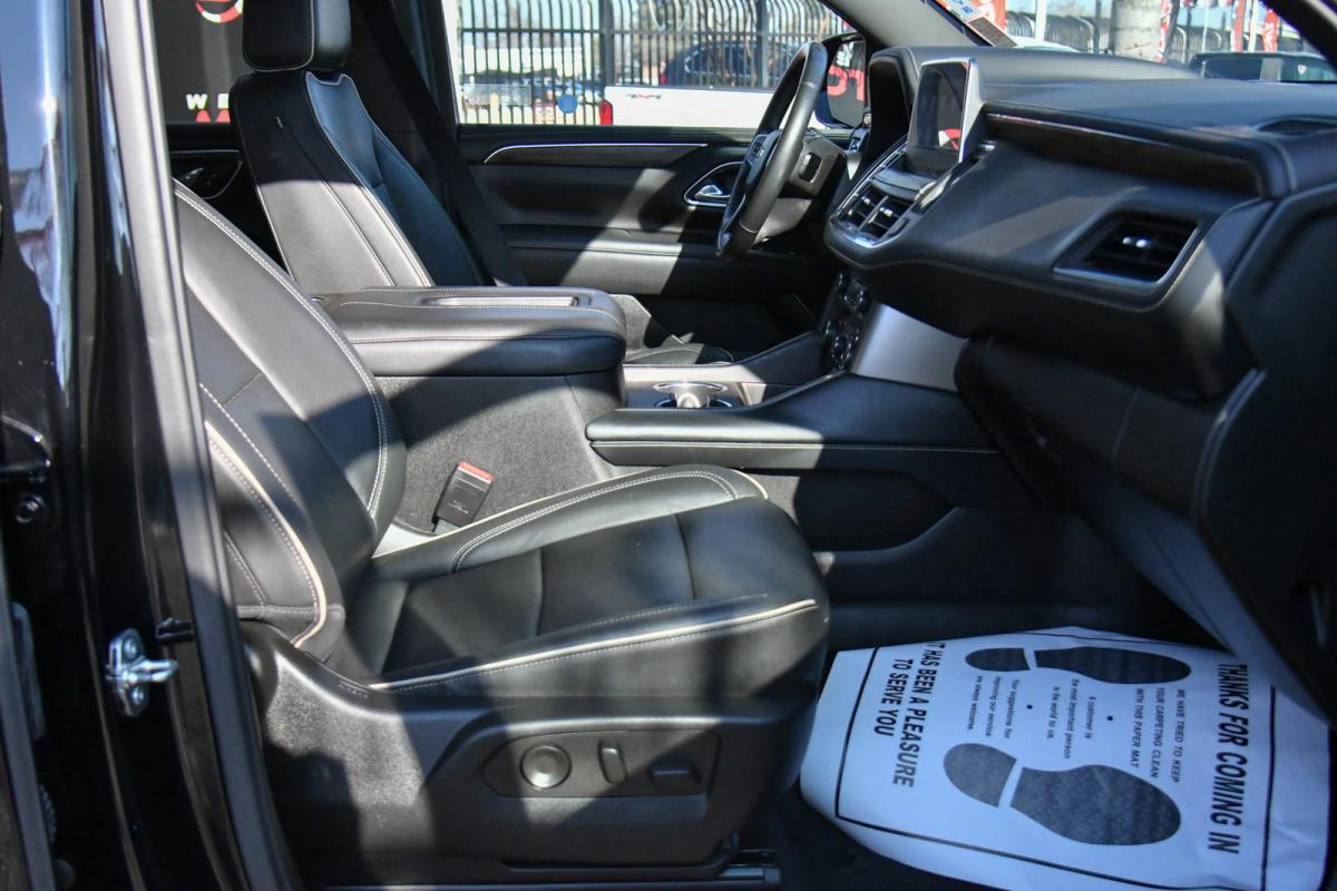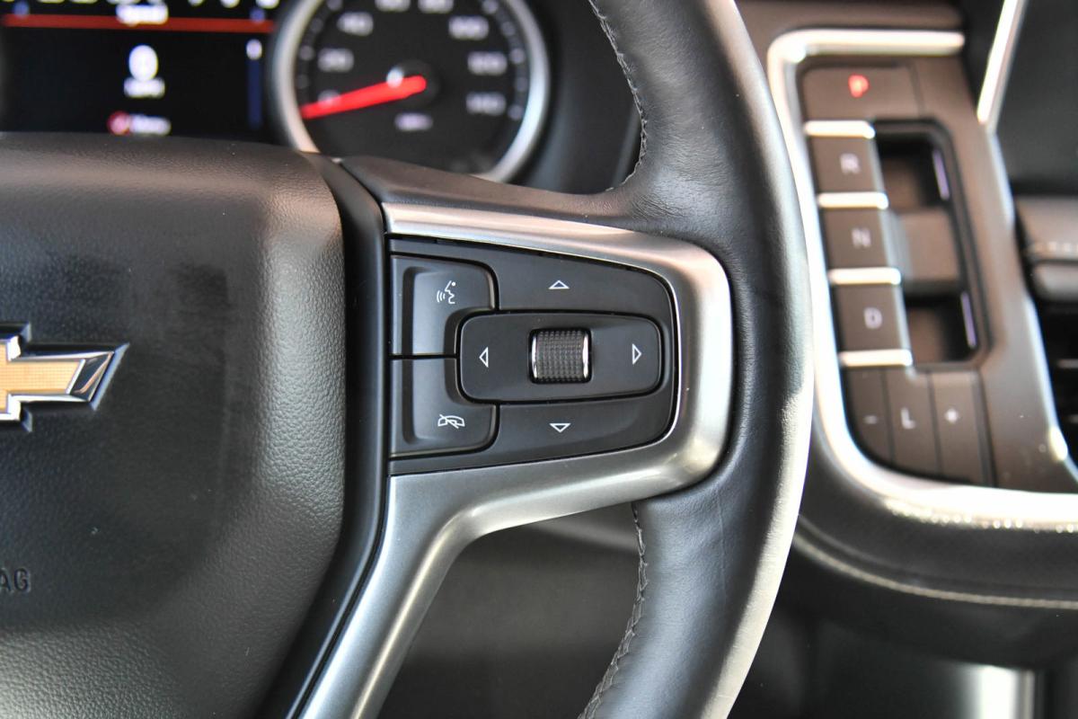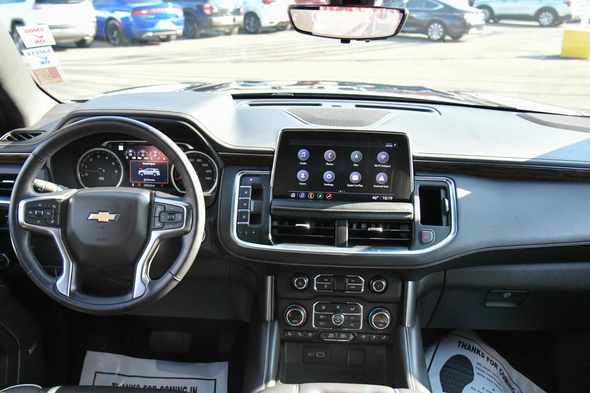 ALG Residual Value. Only 28,006 Miles! Boasts 20 Highway MPG and 15 City MPG! This Chevrolet Tahoe delivers a Gas V8 5.3L/ engine powering this Automatic transmission. WHEELS, 22 X 9 (55.9 CM X 22.9 CM) POLISHED ALUMINUM Includes (SFE) wheel locks, LPO.), TRANSMISSION, 10-SPEED AUTOMATIC electronically controlled with overdrive, includes Traction Select System including tow/haul (Most vehicles built on or after 6-7-2021 with a V8 engine will have (NSS) Not Equipped with Automatic Stop/Start, which removes Automatic Stop/Start, Engine control stop/start disable button and its content.) (STD), TIRES, 275/50R22SL ALL-SEASON, BLACKWALL.*This Chevrolet Tahoe Features the Following Options *LICENSE PLATE FRONT MOUNTING PACKAGE, ENHANCED DISPLAY AND ALERT PACKAGE includes (UV2) HD Surround Vision, (UV6) Head-Up Display, (DRZ) Rear Camera Mirror, (CWA) Rear Camera Mirror Washer and (UKK) Rear Pedestrian Alert , SUNROOF, POWER PANORAMIC, DUAL-PANE, TILT-SLIDING with express-open and close and power sunshade, SEATS, FRONT BUCKET (STD), REAR PEDESTRIAN ALERT, REAR CAMERA MIRROR, INSIDE REARVIEW AUTO-DIMMING with full camera display, REAR CAMERA MIRROR WASHER, REAR AXLE, 3.23 RATIO, PREMIER PREFERRED EQUIPMENT GROUP Includes Standard Equipment, NOT EQUIPPED WITH AUTOMATIC STOP/START, SEE DEALER FOR DETAILS (Most vehicles built on or after 6-7-2021 with a V8 engine will have (NSS) Not Equipped with Automatic Stop/Start, which removes Automatic Stop/Start, Engine control stop/start disable button and its content.).