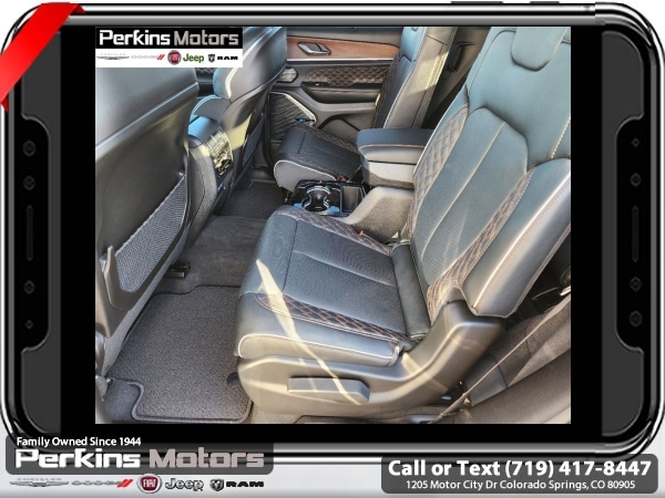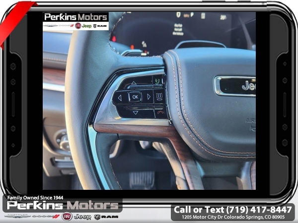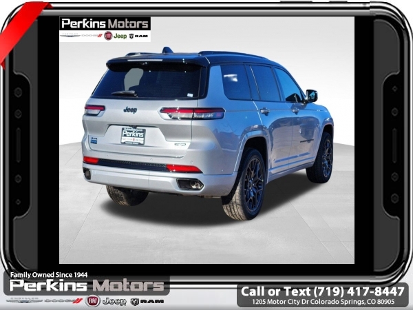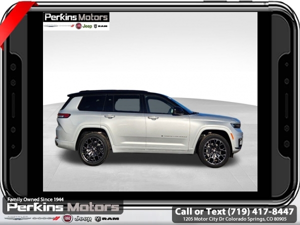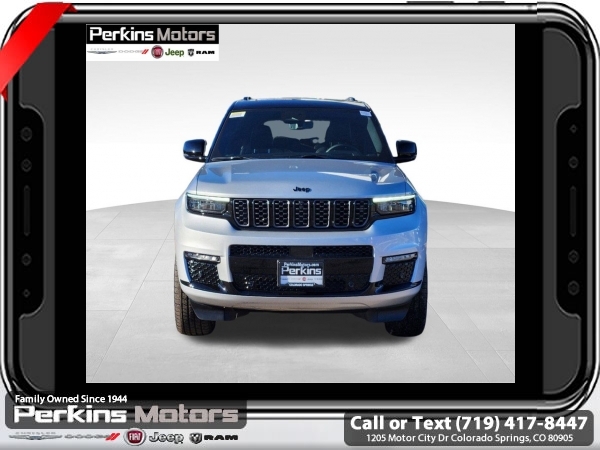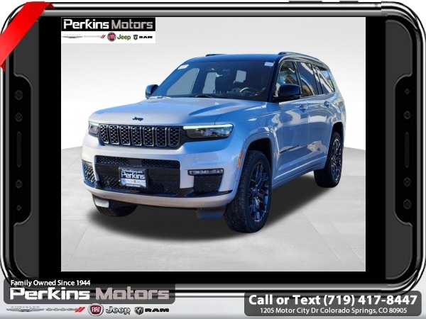 Factory MSRP: $75,840 $7,000 off MSRP! Silver Zynith 2025 Jeep Grand Cherokee L Summit 4WD 8-Speed Automatic 3.6L V6 24V VVT<br><br>Check us out at www.perkinsmotors.com to see our specials! Since opening our doors in 1944, we’ve been proud to serve Colorado Springs, CO, and the surrounding areas of Pueblo, Castle Rock and Denver, CO. Throughout this time of being family owned for 80 years, we’ve maintained a firm commitment to our customers: to offer a wide selection of New Chrysler, Dodge, Fiat, Jeep, and Ram vehicles and quality pre-owned vehicles, and provide a quick, no-hassle car-buying process that ensures everyone drives off the lot satisfied with their purchase.<br><br>Advanced Protech Group IV (Heads-Up Display, Interior Rear Facing Camera, Night Vision/Pedestrian-Animal Detection, Rearview Autodim Digital Display Mirror, and Windshield Wiper De-Icer), High Altitude Package (Gloss Black Exterior Accents, Neutral Gray Exterior Accents, Painted Door Cladding, and Wheels: 21 x 9 Black Painted Aluminum), Luxury Tech Group V (2nd Row Manual Window Shades and Wireless Charging Pad), Quick Order Package 23S, Two Tone Paint Group, 10 Speakers, 19 Speakers High Performance Audio, 3.45 Rear Axle Ratio, 3rd row seats: split-bench, 4-Wheel Disc Brakes, 950 Watt Amplifier, ABS brakes, Active Noise Control System, Adaptive suspension, Air Conditioning, Alloy wheels, AM/FM radio: SiriusXM with 360L, Anti-whiplash front head restraints, Audio memory, Auto High-beam Headlights, Auto-dimming door mirrors, Auto-dimming Rear-View mirror, Auto-leveling suspension, Automatic temperature control, Aux Battery, Brake assist, Bumpers: body-color, Compass, Cruise Control, Delay-off headlights, Driver door bin, Driver vanity mirror, Dual front impact airbags, Dual front side impact airbags, Electronic Stability Control, Emergency communication system, Four wheel independent suspension, Front anti-roll bar, Front Bucket Seats, Front Center Armrest w/Storage, Front dual zone A/C, Front fog lights, Front License Plate Bracket, Front Passenger Interactive Display, Front reading lights, Fully automatic headlights, Garage door transmitter, Genuine wood dashboard insert, Genuine wood door panel insert, Hands-Free Active Driving Assist System, Heated door mirrors, Heated front seats, Heated rear seats, Heated steering wheel, Illuminated entry, Knee airbag, Leather steering wheel, Low tire pressure warning, Memory seat, Model Year Tracking, Nappa Leather Seats, Navigation System, Normal Duty Suspension, Occupant sensing airbag, Outside temperature display, Overhead airbag, Overhead console, Panic alarm, Passenger door bin, Passenger vanity mirror, Power door mirrors, Power driver seat, Power Fold Seatbacks, Power Liftgate, Power moonroof, Power passenger seat, Power steering, Power windows, Radio data system, Radio: Uconnect 5 Nav w/10.1 Display, Rain sensing wipers, Rear air conditioning, Rear anti-roll bar, Rear dual zone A/C, Rear reading lights, Rear seat center armrest, Rear window defroster, Rear window wiper, Reclining 3rd row seat, Remote keyless entry, Security system, Speed-Sensitive Wipers, Split folding rear seat, Spoiler, Steering wheel memory, Steering wheel mounted audio controls, Tachometer, Telescoping steering wheel, Tilt steering wheel, Traction control, Trip computer, Turn signal indicator mirrors, Variably intermittent wipers, Ventilated front seats, Voltmeter, and Wheels: 20 x 8.5 Fully Painted Aluminum Silver. Sale price includes all manufacture's incentives and dealer discounts. Sale price not available on lease or compatible with special APR. $1000 - 2025 National Retail Consumer Cash. Exp. 04/30/2025 $1500 - 2025 National Jeep Celebration Event Retail Bonus Cash . Exp. 04/30/2025