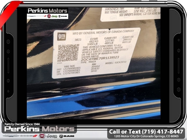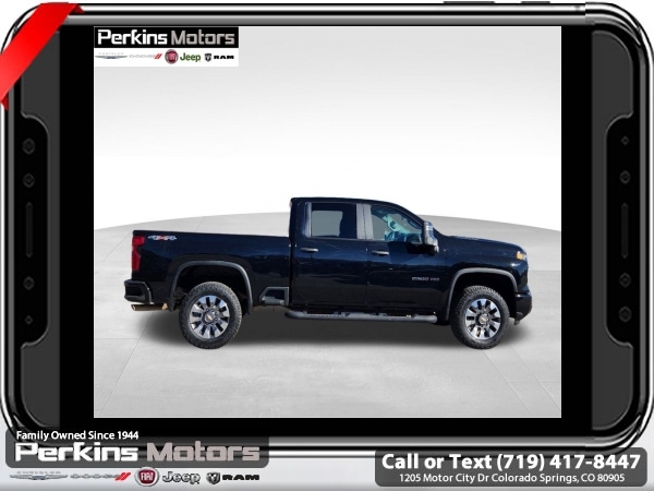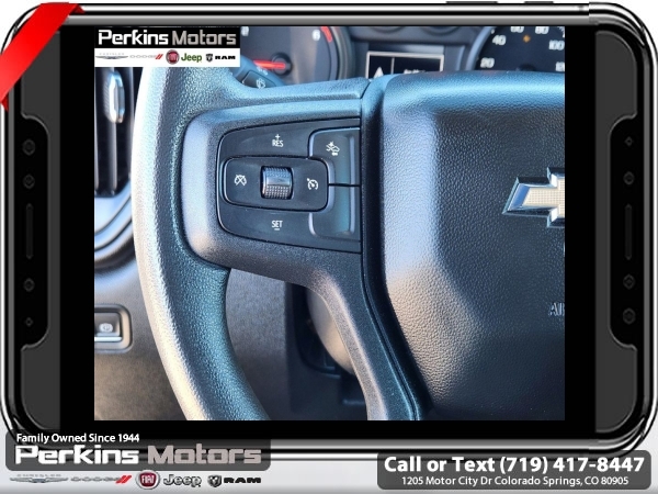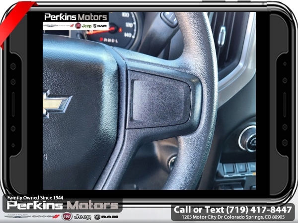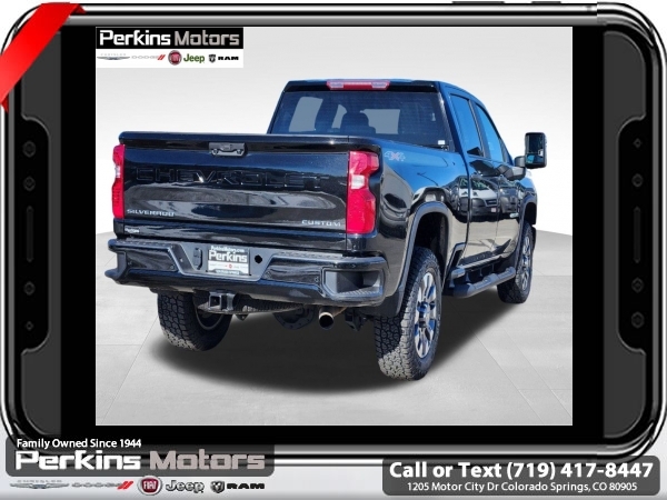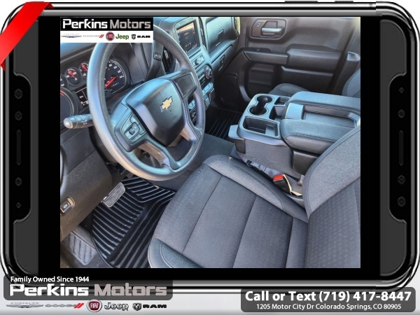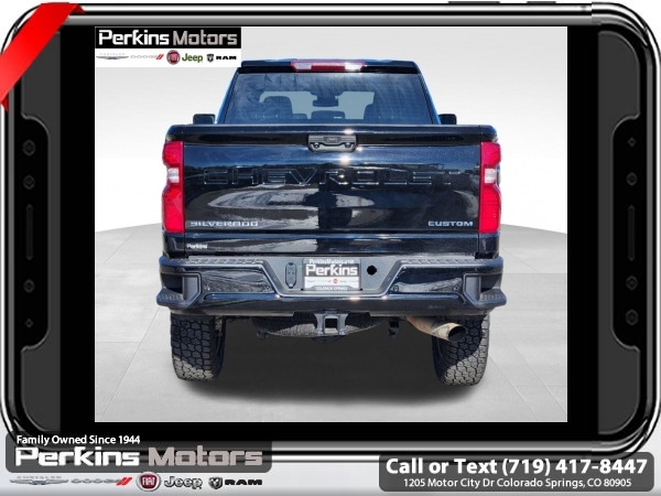 Black 4WD 6.6L V8 10-Speed Automatic<br><br>10-Speed Automatic, 4WD, Black Cloth, 10-Way Power Driver Seat Adjuster w/Lumbar, 120-Volt Bed Mounted Power Outlet, 120-Volt Interior Power Outlet, 170 Amp Alternator, 2-Speed Electronic Shift Transfer Case, 3.5 Diagonal Monochromatic Display DIC, Black Mirror Caps, Bluetooth® For Phone, Chevrolet Connected Access Capable, Color-Keyed Carpeting Floor Covering, Compass, Custom Convenience Package, CX Safety Package, Deep-Tinted Glass, Dual Rear USB Ports (Charge Only), Electric Rear-Window Defogger, Electronic Cruise Control w/Set & Resume Speed, EZ Lift Power Lock & Release Tailgate, Front Rubberized Vinyl Floor Mats, HD Rear Vision Camera, Heated Vertical Trailering Mirrors, Integrated Trailer Brake Controller, Lane Change Alert w/Side Blind Zone Alert, LED Cargo Area Lighting, Locking Tailgate, Manual Tailgate Function w/No EZ Lift, Manual Tilt-Wheel Steering Column, OnStar & Chevrolet Connected Services Capable, Power Door Locks, Power Front Windows w/Driver Express Up/Down, Power Front Windows w/Passenger Express Down, Power Rear Windows w/Express Down, Preferred Equipment Group 1CX, Push Button Start, Rear 60/40 Folding Bench Seat (Folds Up), Rear Cross Traffic Alert, Rear Park Assist, Rear Rubberized Vinyl Floor Mats, Remote Keyless Entry, Remote Vehicle Starter System, SiriusXM w/360L, Standard Tailgate, Suspension Package, Unauthorized Entry Theft-Deterrent System, Wi-Fi Hotspot Capable, Wireless Phone Projection.<br><br><br>CARFAX One-Owner.<br><br>Check us out at www.perkinsmotors.com to see our specials! Since opening our doors in 1944, we’ve been proud to serve Colorado Springs, CO, and the surrounding areas of Pueblo, Castle Rock and Denver, CO. Throughout this time of being family owned for 80 years, we’ve maintained a firm commitment to our customers: to offer a wide selection of New Chrysler, Dodge, Fiat, Jeep, and Ram vehicles and quality pre-owned vehicles, and provide a quick, no-hassle car-buying process that ensures everyone drives off the lot satisfied with their purchase.<br><br><br>Custom Convenience Package (10-Way Power Driver Seat Adjuster w/Lumbar, 120-Volt Bed Mounted Power Outlet, 120-Volt Interior Power Outlet, Dual Rear USB Ports (Charge Only), Electric Rear-Window Defogger, EZ Lift Power Lock & Release Tailgate, Integrated Trailer Brake Controller, LED Cargo Area Lighting, Remote Vehicle Starter System, and Unauthorized Entry Theft-Deterrent System), CX Safety Package (Lane Change Alert w/Side Blind Zone Alert, Rear Cross Traffic Alert, and Rear Park Assist), Preferred Equipment Group 1CX (170 Amp Alternator, 2-Speed Electronic Shift Transfer Case, 3.5 Diagonal Monochromatic Display DIC, Black Mirror Caps, Bluetooth® For Phone, Chevrolet Connected Access Capable, Color-Keyed Carpeting Floor Covering, Compass, Deep-Tinted Glass, Electronic Cruise Control w/Set & Resume Speed, Front Rubberized Vinyl Floor Mats, HD Rear Vision Camera, Heated Vertical Trailering Mirrors, Locking Tailgate, Manual Tailgate Function w/No EZ Lift, Manual Tilt-Wheel Steering Column, OnStar & Chevrolet Connected Services Capable, Power Door Locks, Power Front Windows w/Driver Express Up/Down, Power Front Windows w/Passenger Express Down, Power Rear Windows w/Express Down, Push Button Start, Rear 60/40 Folding Bench Seat (Folds Up), Rear Rubberized Vinyl Floor Mats, Remote Keyless Entry, SiriusXM w/360L, Standard Tailgate, Wi-Fi Hotspot Capable, and Wireless Phone Projection), Suspension Package, Custom Value Package (Auto-Dimming Inside Rear-View Mirror and Heated & Auto-Dimming Vertical Trailering Mirrors), 10-Speed Automatic, 4WD, Black Cloth, 3.73 Rear Axle Ratio, 4-Wheel Disc Brakes, 6 Speakers, 6-Speaker Audio System, 720 Cold-Cranking Amps Heavy-Duty Battery, ABS brakes, Air Conditioning, Alloy wheels, AM/FM radio: SiriusXM with 360L, Apple CarPlay/Android Auto, Auto High-beam Headlights, Brake assist, Cloth Seat Trim, Cruise Control, Delay-off headlights, Driver