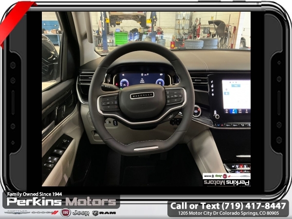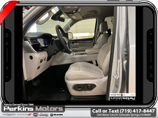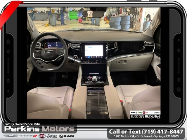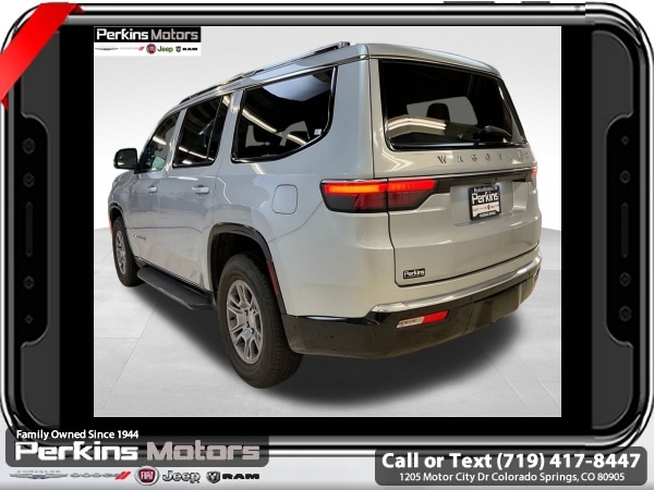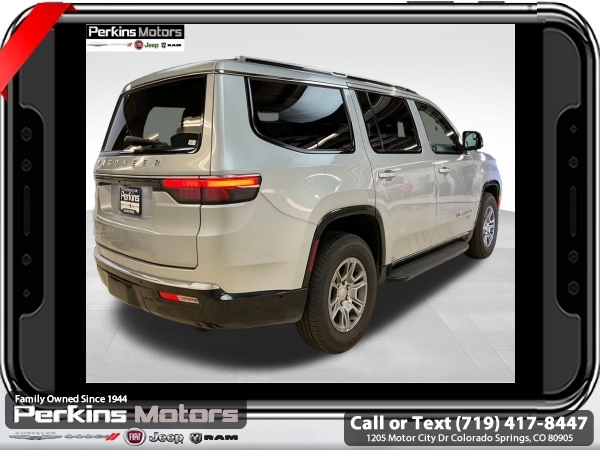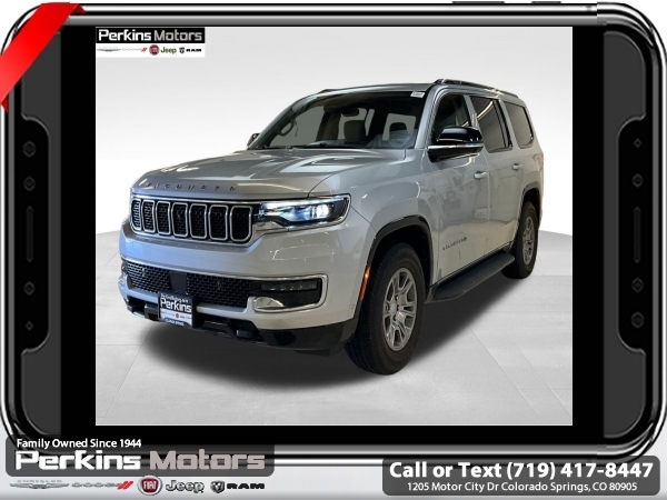 Factory MSRP: $78,845 $15,362 off MSRP! Silver Zynith 2024 Jeep Wagoneer 4WD 8-Speed Automatic 3.0L I6<br><br>Check us out at www.perkinsmotors.com to see our specials! Since opening our doors in 1944, we’ve been proud to serve Colorado Springs, CO, and the surrounding areas of Pueblo, Castle Rock and Denver, CO. Throughout this time of being family owned for 80 years, we’ve maintained a firm commitment to our customers: to offer a wide selection of New Chrysler, Dodge, Fiat, Jeep, and Ram vehicles and quality pre-owned vehicles, and provide a quick, no-hassle car-buying process that ensures everyone drives off the lot satisfied with their purchase.<br><br>Convenience Group I (2nd Row Manual Window Shades, Active Lane Management System, Adaptive Cruise Control w/Stop & Go, Auto High Beam Headlamp Control, Heated Second Row Seats, P&P Park & Unpark Assist w/Stop System, Rain Sensitive Windshield Wipers, Side Distance Warning, and Surround View Camera System), HD Trailer Tow Package (2 Speed On Demand Transfer Case, 3.92 Rear Axle Ratio, Black Tow Hooks, Electronic Rear Limited Slip Differential, Heavy-Duty Engine Cooling, Removable Rear Tow Hook, Selec-Speed Control, Trailer Brake Control, and Trailer Hitch Zoom), Quick Order Package 25E, Rear Seat Video Group 1 (DISC) (Amazon Fire TV Built-In, Seatback Video Screens, and Video USB Port), 10 Speakers, 3.55 Rear Axle Ratio, 3rd row seats: bench, 4-Wheel Disc Brakes, ABS brakes, Adjustable pedals, Air Conditioning, Alloy wheels, AM/FM radio: SiriusXM with 360L, Anti-whiplash front head restraints, Apple CarPlay/Android Auto, Audio memory, Auto-dimming door mirrors, Auto-dimming Rear-View mirror, Auto-leveling suspension, Automatic temperature control, Brake assist, Bumpers: body-color, Compass, Cruise Control, Delay-off headlights, Driver door bin, Driver vanity mirror, Driver's Seat Mounted Armrest, Dual front impact airbags, Dual front side impact airbags, Electronic Stability Control, Emergency communication system: Wagoneer Connect, Exterior Parking Camera Rear, Four wheel independent suspension, Front anti-roll bar, Front Bucket Seats, Front Center Armrest w/Storage, Front dual zone A/C, Front fog lights, Front reading lights, Fully automatic headlights, Garage door transmitter, Heated door mirrors, Heated front seats, Heated steering wheel, Illuminated entry, Knee airbag, Leather Trimmed Bucket Seats, Low tire pressure warning, Memory seat, Navigation System, Normal Duty Suspension, Occupant sensing airbag, Outside temperature display, Overhead airbag, Overhead console, Panic alarm, Passenger door bin, Passenger seat mounted armrest, Passenger vanity mirror, Pedal memory, Power adjustable front head restraints, Power door mirrors, Power driver seat, Power Liftgate, Power passenger seat, Power steering, Power windows, Radio data system, Radio: Uconnect 5 Nav w/10.1 Display, Rear air conditioning, Rear anti-roll bar, Rear dual zone A/C, Rear reading lights, Rear seat center armrest, Rear window defroster, Rear window wiper, Reclining 3rd row seat, Remote keyless entry, Security system, Speed-sensing steering, Speed-Sensitive Wipers, Split folding rear seat, Steering wheel memory, Steering wheel mounted audio controls, Tachometer, Telescoping steering wheel, Tilt steering wheel, Traction control, Trip computer, Turn signal indicator mirrors, Variably intermittent wipers, Ventilated front seats, Voltmeter, and Wheels: 18 x 8.0 Aluminum Base Finish. Sale price includes all manufacture's incentives and dealer discounts. Sale price not available on lease or compatible with special APR. $1000 - 2024 Conquest Bonus Cash. Exp. 06/30/2025