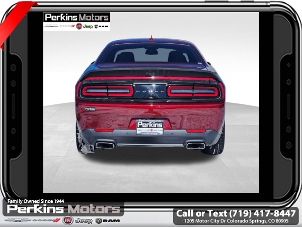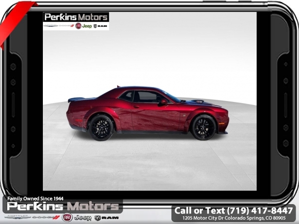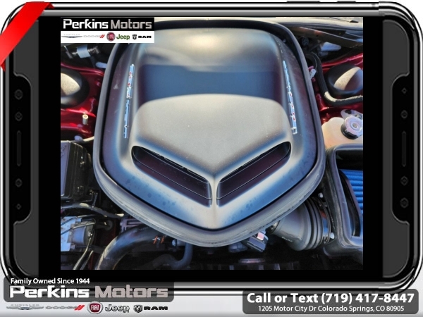 Octane Red Pearlcoat RWD SRT HEMI 6.4L V8 MDS 8-Speed Automatic<br><br>18 Speakers Premium Audio System, Auto High Beam Headlamp Control, Bee Fender Badge, Blind Spot & Cross Path Detection, Dash Plaque, Door Trim Panel w/Ambient Lighting, Driver Convenience Group, Gloss Black I/P Cluster Trim Rings, harman/kardon Audio Group w/Subwoofer, harman/kardon GreenEdge Amp, Heated Steering Wheel, High-Intensity Discharge Headlamps, MOPAR Shaker Hood, MOPAR Shaker Intake, Plus Package, Power Multi-Function Foldaway Mirrors, Power Tilt/Telescope Steering Column, Premium-Stitched Dash Panel, Radio/Driver Seat/Mirrors Memory, Rain Sensitive Windshield Wipers, Shaker Mounted 392 HEMI Badge, Shaker Package, Surround Sound, Technology Group, Trunk Mounted Subwoofer, Underhood Shaker Decal, White Face Instrument Cluster.<br><br><br>CARFAX One-Owner. Clean CARFAX.<br><br>Check us out at www.perkinsmotors.com to see our specials! Since opening our doors in 1944, we’ve been proud to serve Colorado Springs, CO, and the surrounding areas of Pueblo, Castle Rock and Denver, CO. Throughout this time of being family owned for 80 years, we’ve maintained a firm commitment to our customers: to offer a wide selection of New Chrysler, Dodge, Fiat, Jeep, and Ram vehicles and quality pre-owned vehicles, and provide a quick, no-hassle car-buying process that ensures everyone drives off the lot satisfied with their purchase.<br><br><br>Driver Convenience Group (Blind Spot & Cross Path Detection, High-Intensity Discharge Headlamps, and Power Multi-Function Foldaway Mirrors), harman/kardon Audio Group w/Subwoofer (18 Speakers Premium Audio System, harman/kardon GreenEdge Amp, Surround Sound, and Trunk Mounted Subwoofer), Plus Package (Door Trim Panel w/Ambient Lighting, Heated Steering Wheel, Power Tilt/Telescope Steering Column, Premium-Stitched Dash Panel, and Radio/Driver Seat/Mirrors Memory), Shaker Package (Bee Fender Badge, Dash Plaque, Gloss Black I/P Cluster Trim Rings, MOPAR Shaker Hood, MOPAR Shaker Intake, Shaker Mounted 392 HEMI Badge, Underhood Shaker Decal, and White Face Instrument Cluster), Technology Group (Auto High Beam Headlamp Control and Rain Sensitive Windshield Wipers), Quick Order Package 24N R/T Scat Pack Widebody (3.09 Rear Axle Ratio, Wheels: 20 x 11.0 Devil's Rim Aluminum, and Widebody Competition Suspension), 1-Yr SiriusXM Guardian Trial, 230MM Rear Axle, 4-Wheel Disc Brakes, 5-Year SiriusXM Travel Link Service, 6 Speakers, ABS brakes, Air Conditioning, Alloy wheels, AM/FM radio: SiriusXM, Anti-whiplash front head restraints, Apple CarPlay, Apple CarPlay/Android Auto, Auto-dimming Rear-View mirror, Automatic temperature control, Brake assist, Bumpers: body-color, Compass, Cruise Control, Delay-off headlights, Driver door bin, Driver vanity mirror, Dual front impact airbags, Dual front side impact airbags, Electronic Stability Control, Emergency communication system: SiriusXM Guardian, For Details, Visit DriveUconnect.com, Four wheel independent suspension, Front anti-roll bar, Front Bucket Seats, Front Center Armrest, Front dual zone A/C, Front fog lights, Front License Plate Bracket, Front reading lights, Fully automatic headlights, Garage door transmitter, Google Android Auto, GPS Antenna Input, GPS Navigation, Heated door mirrors, Heated front seats, Heated steering wheel, Illuminated entry, Integrated Center Stack Radio, Integrated Voice Command w/Bluetooth, Leather Shift Knob, Low tire pressure warning, Media Hub (2 USB, AUX), Outside temperature display, Overhead airbag, Overhead console, Panic alarm, ParkView Rear Back-Up Camera, Passenger door bin, Passenger vanity mirror, Power door mirrors, Power driver seat, Power steering, Power Sunroof, Power windows, Radio data system, Radio: Uconnect 4C Nav w/8.4 Display, Radio: Uconnect 4C w/8.4 Display, Rear anti-roll bar, Rear reading lights, Rear seat center armrest, Rear window defroster, Remote keyless entry, Scat Pack Logo Houndstooth Seat, Security system, Shark Fin A