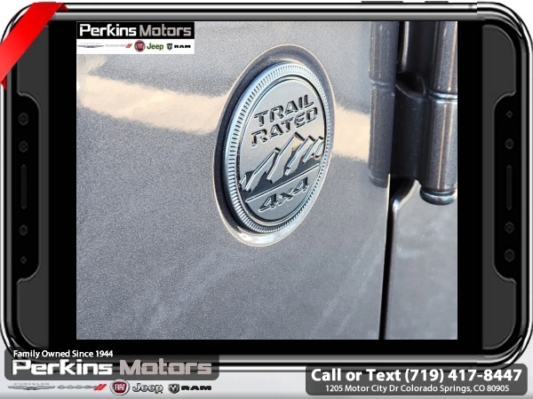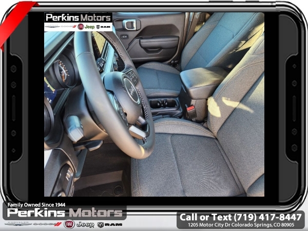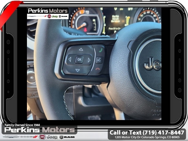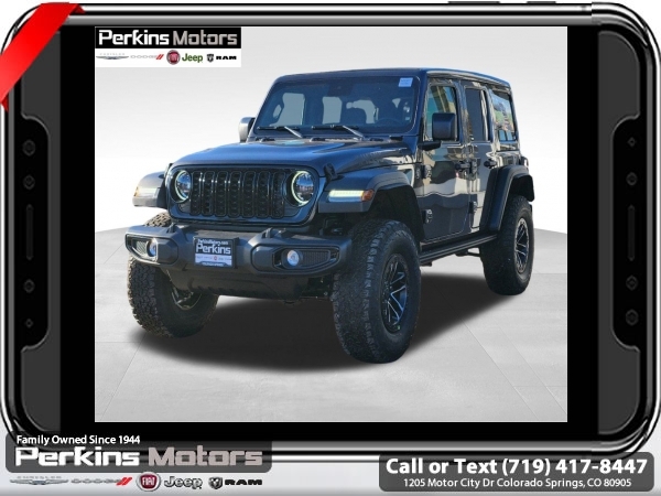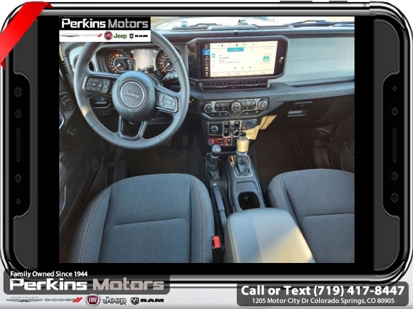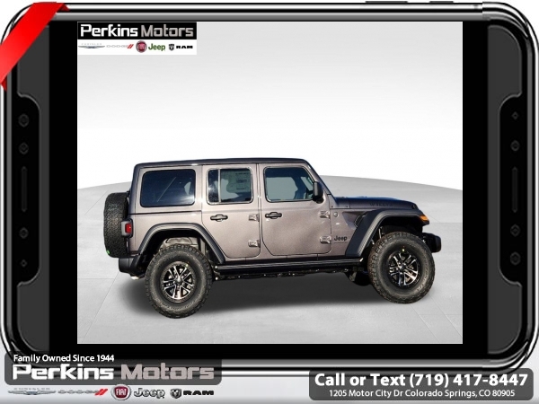 Factory MSRP: $61,085 $7,806 off MSRP! Granite Crystal Metallic Clearcoat 2025 Jeep Wrangler Willys 4WD 8-Speed Automatic 2.0L I4 DOHC<br><br>Check us out at www.perkinsmotors.com to see our specials! Since opening our doors in 1944, we’ve been proud to serve Colorado Springs, CO, and the surrounding areas of Pueblo, Castle Rock and Denver, CO. Throughout this time of being family owned for 80 years, we’ve maintained a firm commitment to our customers: to offer a wide selection of New Chrysler, Dodge, Fiat, Jeep, and Ram vehicles and quality pre-owned vehicles, and provide a quick, no-hassle car-buying process that ensures everyone drives off the lot satisfied with their purchase.<br><br>Convenience Group (2-Door Passive Entry, Front Door Locks, Air Conditioning w/Auto Temperature Control, Air Filtering, Cluster 7.0 TFT Color Display, Emergency/Assistance Call, Heated Front Seats, Heated Steering Wheel, Remote Start System, and Universal Garage Door Opener), Quick Order Package 22W Willys (4-Wheel Drive Swing Gate Decal, 4.10 Rear Axle Ratio, 7 & 4 Pin Wiring Harness, 97 MPH Vehicle Max Speed Calibration, Advanced Brake Assist, Automatic Headlamps, Auxiliary Switches, Black Grille, Class II Receiver Hitch, Conventional Differential Front Axle, Corning Gorilla Glass, Dana M210 Wide HD Tube Front Axle, Dana M220 Wide Rear Axle, Daytime Running Lamps LED Accents, Deep Tint Sunscreen Windows, E-Locker Rear Axle, Enhanced Adaptive Cruise Control, Front LED Fog Lamps, Full Speed Forward Collision Warning Plus, Injection Molded Black Rear Bumper, LED Premium Reflector Headlamps, Mold In Color Bumper w/Gloss Black, Molded in Color Rubicon Highline Flare, MOPAR All-Weather Floor Mats, Off-Road Plus Mode, Power Heated Mirrors, Premium Wrapped Steering Wheel, Security Alarm, Sun Visors w/Illuminated Vanity Mirrors, Wheels: 17 x 7.5 Painted Black, Willy's Suspension, and Willys Hood Decal), Xtreme 35 Tire Package (35 Tire Suspension, 4.56 Rear Axle Ratio, Anti-Lock 4-Wheel Disc Perf Brakes, MOPAR Hinge-Gate Reinforcement, Wheel Flare Extensions, and Wheels: 17 x 8 Machined w/Black Pockets), 110 MPH Vehicle Max Speed Calibration, 3.45 Overall Top Gear Ratio, 4-Wheel Disc Brakes, 8 Speakers, ABS brakes, Air Conditioning, AM/FM radio: SiriusXM, Apple CarPlay/Android Auto, Aux Battery, Brake assist, Cloth Low-Back Bucket Seats, Compass, Cruise Control, Delay-off headlights, Driver door bin, Driver vanity mirror, Dual front impact airbags, Dual front side impact airbags, Electronic Stability Control, Front anti-roll bar, Front Bucket Seats, Front Center Armrest w/Storage, Front fog lights, Front reading lights, Illuminated entry, Integrated roll-over protection, Jeep Trail Rated Kit, Low tire pressure warning, MOPAR Cargo Tub Liner, MOPAR Plastic Door Sill Guards, Non-Lock Fuel Cap w/o Discriminator, Normal Duty Suspension, Occupant sensing airbag, Outside temperature display, Overhead airbag, Panic alarm, ParkView Rear Back-Up Camera, Passenger door bin, Passenger vanity mirror, Power steering, Power Top Quarter Window Storage Bag, Power windows, Radio data system, Radio: Uconnect 5 w/12.3 Display, Rear anti-roll bar, Rear reading lights, Rear Window Defroster, Rear Window Wiper/Washer, Remote keyless entry, Removable Rear Quarter Windows, Sky 1-Touch Power Top, Split folding rear seat, Steering wheel mounted audio controls, Stop-Start Dual Battery System, Tachometer, Telescoping steering wheel, Tilt steering wheel, Traction control, Trip computer, Variably intermittent wipers, and Wheels: 17 x 7.5 Black Steel Styled.