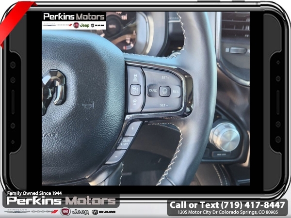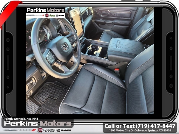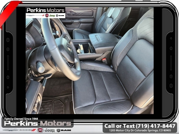 Diamond Black Crystal Pearlcoat 4WD 3.0L I6 8-Speed Automatic<br><br><br>Certified. FCA US LLC Certified Pre-Owned Details:<br><br> * Powertrain Limited Warranty: 84 Month/100,000 Mile (whichever comes first) from original in-service date<br> * Warranty Deductible: $100<br> * 125 Point Inspection<br> * Vehicle History<br> * Includes First Day Rental, Car Rental Allowance, and Trip Interruption Benefits. SiriusXM 3 month trial subscription.<br> * Transferable Warranty<br> * Roadside Assistance<br> * Limited Warranty: 3 Month/3,000 Mile (whichever comes first) after new car warranty expires or from certified purchase date<br><br><br>CARFAX One-Owner. Clean CARFAX.<br><br>Check us out at www.perkinsmotors.com to see our specials! Since opening our doors in 1944, we’ve been proud to serve Colorado Springs, CO, and the surrounding areas of Pueblo, Castle Rock and Denver, CO. Throughout this time of being family owned for 80 years, we’ve maintained a firm commitment to our customers: to offer a wide selection of New Chrysler, Dodge, Fiat, Jeep, and Ram vehicles and quality pre-owned vehicles, and provide a quick, no-hassle car-buying process that ensures everyone drives off the lot satisfied with their purchase.<br><br><br>Bed Utility Group (MOPAR 4 Adjustable Cargo Tie-Down Hooks and Truck Bed Cargo Divider), Quick Order Package 22M Limited, FCA US LLC Certified Pre-Owned Certified, 19 Speakers, 3.92 Rear Axle Ratio, 4-Wheel Disc Brakes, 4G LTE Wi-Fi Hot Spot, ABS brakes, Adjustable pedals, Air Conditioning, Alloy wheels, AM/FM radio: SiriusXM with 360L, Apple CarPlay, Apple CarPlay/Android Auto, Audio memory, Auto High-beam Headlights, Auto Power-Folding Mirrors, Auto-dimming door mirrors, Auto-Dimming Exterior Driver Mirror, Auto-dimming Rear-View mirror, Auto-leveling suspension, Automatic temperature control, Bodyside moldings, Brake assist, Bumpers: chrome, Chrome Exterior Mirrors, Compass, Connected Travel & Traffic Services, Connectivity - US/Canada, Convex Wide-Angle Exterior Mirror Insert, Cruise Control, Delay-off headlights, Dome Dual LED Reading Lamp, Driver door bin, Driver vanity mirror, Dual front impact airbags, Dual front side impact airbags, Dual-Pane Panoramic Sunroof, E-Locker Rear Axle, Electronic Stability Control, Exterior 115V AC Outlet, Exterior Mirrors Courtesy Lamps, Exterior Mirrors w/Heating Element, Exterior Mirrors w/Memory, Exterior Mirrors w/Supplemental Signals, Front anti-roll bar, Front Bucket Seats, Front Center Armrest w/Storage, Front dual zone A/C, Front fog lights, Front License Plate Bracket, Front reading lights, Front wheel independent suspension, Fully automatic headlights, Garage door transmitter, Genuine wood console insert, Genuine wood dashboard insert, Genuine wood door panel insert, Google Android Auto, GPS Antenna Input, GPS Navigation, harman/kardon® Speakers, HD Radio, Heated door mirrors, Heated front seats, Heated rear seats, Heated steering wheel, Illuminated entry, Integrated Voice Command w/Bluetooth, Leather steering wheel, LED Dome/Reading Lamp, Low tire pressure warning, Memory seat, Navigation System, Occupant sensing airbag, Outside temperature display, Overhead airbag, Overhead console, Panic alarm, ParkView Rear Back-Up Camera, Passenger door bin, Passenger vanity mirror, Pedal memory, Power door mirrors, Power driver seat, Power passenger seat, Power steering, Power windows, Premium Quilted Leather Bucket Seats, Radio data system, Radio: Uconnect 5 Nav w/12.0 Display, Rain sensing wipers, Rear anti-roll bar, Rear reading lights, Rear seat center armrest, Rear step bumper, Rear window defroster, Remote keyless entry, Security system, SiriusXM w/360L, Split folding rear seat, Steering wheel mounted audio controls, Tachometer, Telescoping steering wheel, Tilt steering wheel, Traction control, Trailer Brake Control, Tri-Fold Tonneau Cover, Trip computer, Turn signal indicator mirrors, USB Host Flip, Variably intermittent wipers, Ventilated front seats, Ven