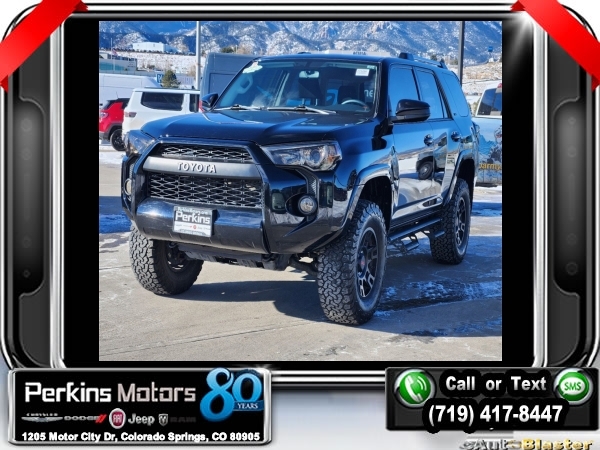 4WD 4.0L V6 SMPI DOHC 5-Speed Automatic with Overdrive<br><br>4WD, 17 x 7.0 6-Spoke Alloy Wheels, ABS brakes, Alloy wheels, Electronic Stability Control, Heated door mirrors, Illuminated entry, Low tire pressure warning, Remote keyless entry, Traction control.<br><br><br>CARFAX One-Owner.<br><br>Check us out at www.perkinsmotors.com to see our specials! Since opening our doors in 1944, we’ve been proud to serve Colorado Springs, CO, and the surrounding areas of Pueblo, Castle Rock and Denver, CO. Throughout this time of being family owned for 80 years, we’ve maintained a firm commitment to our customers: to offer a wide selection of New Chrysler, Dodge, Fiat, Jeep, and Ram vehicles and quality pre-owned vehicles, and provide a quick, no-hassle car-buying process that ensures everyone drives off the lot satisfied with their purchase.<br><br><br>Awards:<br> * 2019 KBB.com Best Resale Value Awards * 2019 KBB.com Brand Image Awards<br><br>4WD, 17 x 7.0 6-Spoke Alloy Wheels, ABS brakes, Alloy wheels, Electronic Stability Control, Heated door mirrors, Illuminated entry, Low tire pressure warning, Remote keyless entry, Traction control, 3.727 Axle Ratio, 4-Wheel Disc Brakes, 8 Speakers, Air Conditioning, AM/FM radio: SiriusXM, Anti-whiplash front head restraints, Brake assist, Bumpers: body-color, CD player, Cruise Control, Driver door bin, Driver vanity mirror, Dual front impact airbags, Dual front side impact airbags, Emergency communication system: Safety Connect, Exterior Parking Camera Rear, Front anti-roll bar, Front Bucket Seats, Front Center Armrest, Front fog lights, Front reading lights, Front wheel independent suspension, Knee airbag, Leather Shift Knob, Leather steering wheel, Low Fabric Seat Trim, Occupant sensing airbag, Outside temperature display, Overhead airbag, Overhead console, Panic alarm, Passenger door bin, Passenger vanity mirror, Power door mirrors, Power driver seat, Power steering, Power windows, Radio: Entune Audio Plus, Rear anti-roll bar, Rear seat center armrest, Rear window defroster, Rear window wiper, Roof rack: rails only, Security system, Speed-sensing steering, Split folding rear seat, Spoiler, Steering wheel mounted audio controls, Tachometer, Telescoping steering wheel, Tilt steering wheel, Trip computer, and Variably intermittent wipers.