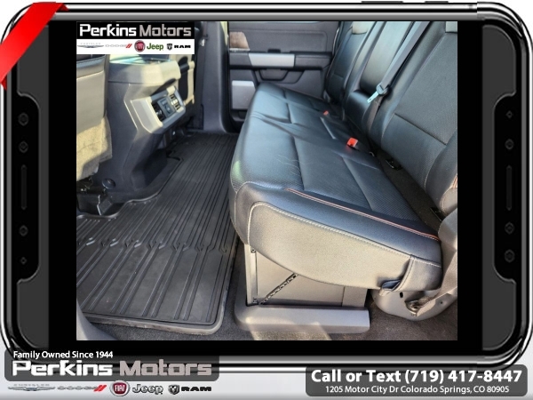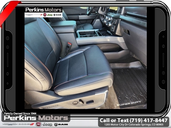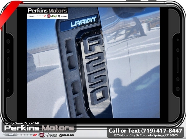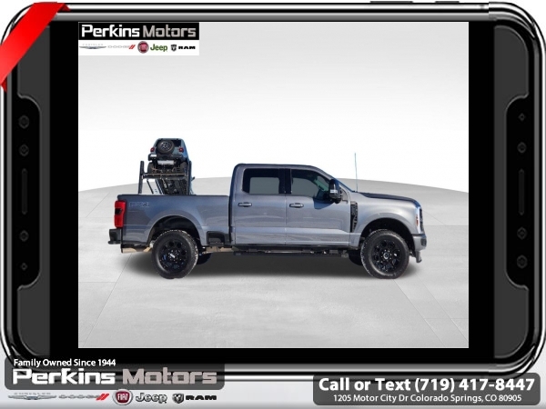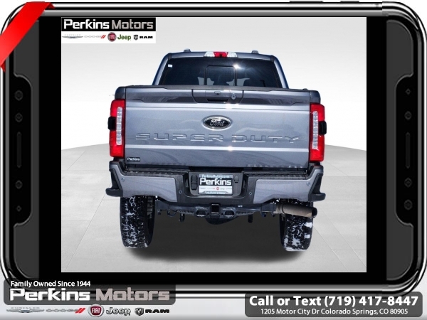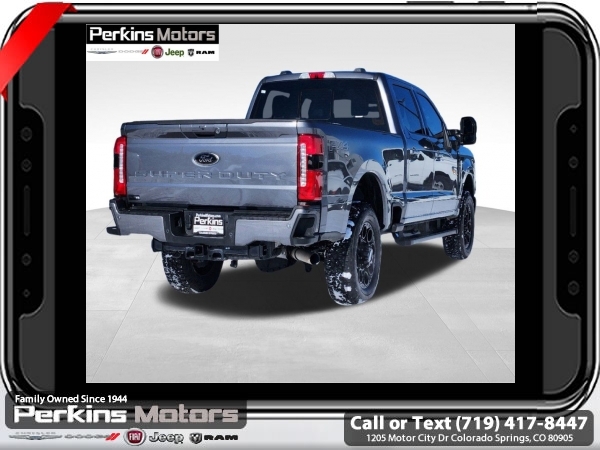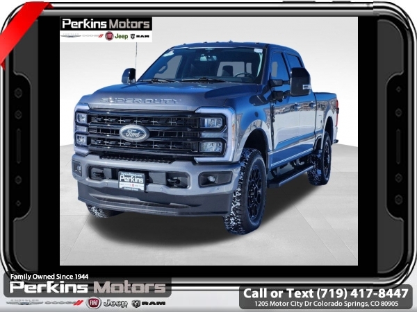 Carbonized Gray Metallic 4WD 7.3L V8 PFI OHV 16V Federal 430hp 10-Speed Automatic<br><br>Ultimate Pkg, 4WD, 4-Way Adjustable Headrests, 6 Ebony Black Angular Running Boards, Black Appearance Package, Body Color Front & Rear Bumpers, Ebony Black Painted Front Grille Bars, Ebony Black Painted Mirror Caps, Front Sensing System, FX4 Off-Road Package, Head-Up Display, Hill Descent Control, Intelligent Adaptive Cruise Control w/Stop-and-Go, Lariat Ultimate Package, Navigation system: Connected Navigation (includes complimentary 1-year trial), Off-Road Specifically Tuned Shock Absorbers, Pro Trailer Backup Assist, Pro Trailer Hitch Assist, Radio: B&O Unleashed Sound System by Bang & Olufsen, Rear Wheel Well Liners (Pre-Installed), SiriusXM Radio w/360L, SYNC 4 w/Enhanced Voice Recognition, Tailgate Step & Handle, Tough Bed Spray-In Bedliner, Unique FX4 Off-Road Box Decal, Upfitter Switches (6), Wheels: 20 Machined & Ebony Black High Gloss, Wireless Charging Pad.<br><br><br>CARFAX One-Owner. Clean CARFAX.<br><br>Check us out at www.perkinsmotors.com to see our specials! Since opening our doors in 1944, we’ve been proud to serve Colorado Springs, CO, and the surrounding areas of Pueblo, Castle Rock and Denver, CO. Throughout this time of being family owned for 80 years, we’ve maintained a firm commitment to our customers: to offer a wide selection of New Chrysler, Dodge, Fiat, Jeep, and Ram vehicles and quality pre-owned vehicles, and provide a quick, no-hassle car-buying process that ensures everyone drives off the lot satisfied with their purchase.<br><br><br>Black Appearance Package (6 Ebony Black Angular Running Boards, Body Color Front & Rear Bumpers, Ebony Black Painted Front Grille Bars, Ebony Black Painted Mirror Caps, Rear Wheel Well Liners (Pre-Installed), Tough Bed Spray-In Bedliner, and Wheels: 20 Machined & Ebony Black High Gloss), FX4 Off-Road Package (Hill Descent Control, Off-Road Specifically Tuned Shock Absorbers, and Unique FX4 Off-Road Box Decal), Lariat Ultimate Package (4-Way Adjustable Headrests, Front Sensing System, Head-Up Display, Intelligent Adaptive Cruise Control w/Stop-and-Go, Pro Trailer Backup Assist, Pro Trailer Hitch Assist, Radio: B&O Unleashed Sound System by Bang & Olufsen, SiriusXM Radio w/360L, SYNC 4 w/Enhanced Voice Recognition, Tailgate Step & Handle, Upfitter Switches (6), and Wireless Charging Pad), F-250 >10K GVWR Package, Fixed 10,000 lbs GVWR Package, Order Code 608A, 4WD, Navigation system: Connected Navigation (includes complimentary 1-year trial), 250 Amp Alternator (Gas), 3.73 Axle Ratio, 4-Wheel Disc Brakes, 8 Speakers, ABS brakes, Adjustable pedals, Air Conditioning, All-Weather Floor Mats, Alloy wheels, AM/FM radio: SiriusXM with 360L, Auto High-beam Headlights, Auto tilt-away steering wheel, Auto-dimming Rear-View mirror, Automatic temperature control, Brake assist, Bumpers: chrome, Compass, Cruise Control, Delay-off headlights, Driver door bin, Driver vanity mirror, Dual front impact airbags, Dual front side impact airbags, Electronic Stability Control, Electronic-Locking w/4.30 Axle Ratio, Emergency communication system: SYNC 4 911 Assist, Exterior Parking Camera Rear, Flow-Through Console, Front anti-roll bar, Front Bucket Seats, Front Center Armrest, Front dual zone A/C, Front fog lights, Front Leather-Trimmed 40/Console/40 Seats, Front reading lights, Fully automatic headlights, Garage door transmitter, Heated door mirrors, Heated front seats, Heated rear seats, Heated steering wheel, Illuminated entry, Leather steering wheel, LED Roof Clearance Lights, Low tire pressure warning, Memory seat, Outside temperature display, Overhead airbag, Overhead console, Panic alarm, Passenger door bin, Passenger vanity mirror, Pedal memory, Power door mirrors, Power driver seat, Power passenger seat, Power steering, Power windows, Radio: B&O Sound System by Bang & Olufsen, Rain sensing wipers, Rear reading lights, Rear seat center armrest, Rear step bumper, Rear window defroster, Re