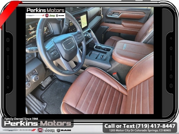 Summit White 4WD Duramax 6.6L V8 Turbodiesel 10-Speed Automatic<br><br>10-Speed Automatic, 4WD, Alpine Umber Leather, 120-Volt Bed Mounted Power Outlet, 120-Volt Instrument Panel Power Outlet, 2 Charge-Only Rear USB Ports, 2 Charge/Data USB Ports Inside Center Console, 2 USB Ports, 2-Speed Active Transfer Case, Bed View Camera w/2 Trailer Camera Provisions, Bose Premium Series 12-Speaker System, Deep-Tinted Glass, Electric Rear-Window Defogger, Floor-Mounted Center Console, Front Rain-Sensing Wipers, GMC Connected Access Capable, Gooseneck/5th Wheel Prep Package, HD Surround Vision, Heated 2nd Row Outboard Seats, Heated Driver & Front Outboard Passenger Seats, Hill Descent Control, Inside Rearview Auto-Dimming Rear Camera Mirror, Integrated Trailer Brake Controller, Keyless Open & Start, LED Cargo Area Lighting, LED Smoked Amber Roof Marker Lamps, Manual Tilt-Wheel/Telescoping Steering Column, Multicolor 15 Diagonal Head-Up Display, OnStar & GMC Connected Services Capable, Power Front Passenger Windows w/Express Up/Down, Power Sliding Rear Window w/Defogger, Power Sunroof, Preferred Equipment Group 5SB, Push Button Start, Rear Cross Traffic Alert, Rear Wheelhouse Liners, Remote Vehicle Starter System, Safety Alert Seat, Signature Denali Grille in Vadar Chrome, SiriusXM w/360L, Spray-On Bedliner w/Denali Logo, Steering Wheel Audio Controls, Technology Package, Trailer Cam Provisions & Trailer Viewing Software, Trailer Side Blind Zone Alert, Trailer Tire Pressure Monitor Sensors, Ultrasonic Front & Rear Park Assist, Unauthorized Entry Theft-Deterrent System, Universal Home Remote, Ventilated Driver & Front Passenger Seats, Wireless Charging, Wireless Phone Projection, X31 Off-Road Package.<br><br><br>CARFAX One-Owner. Clean CARFAX.