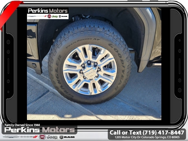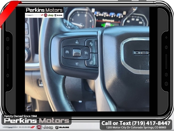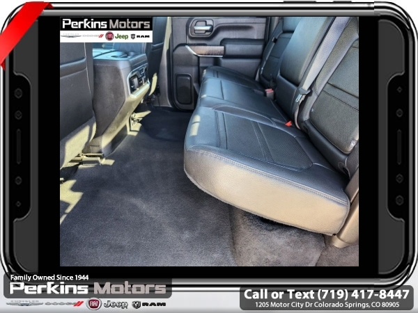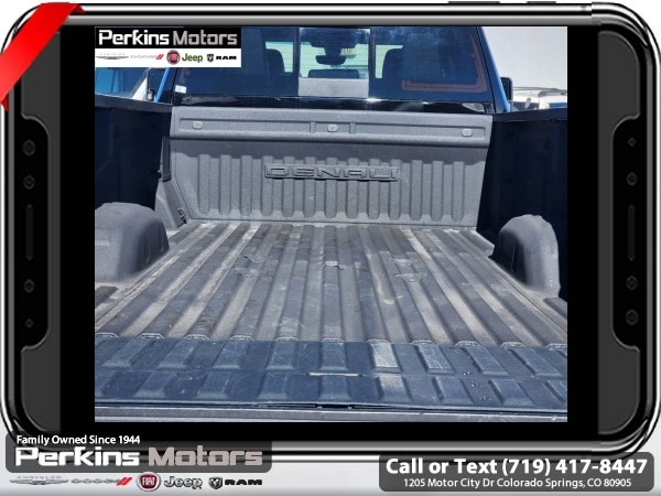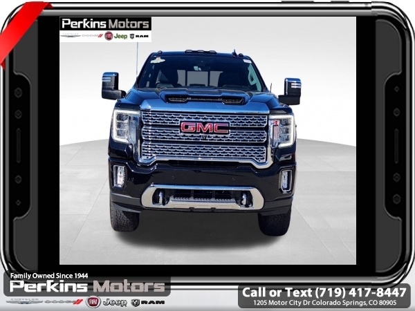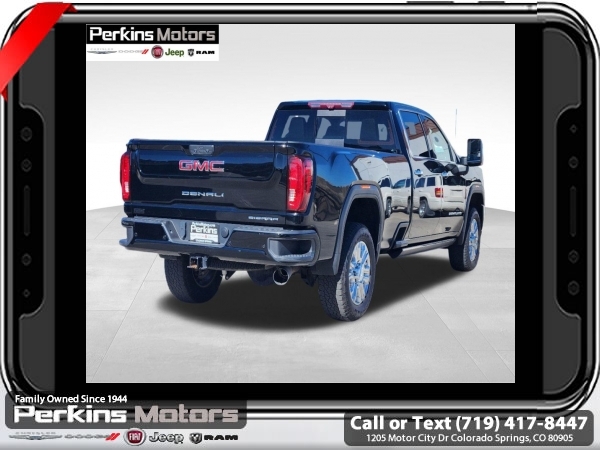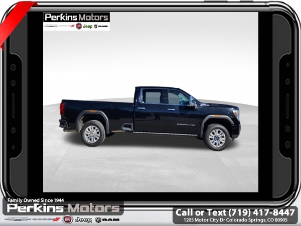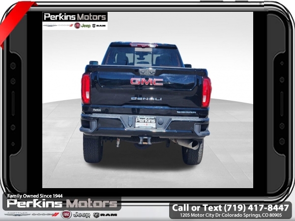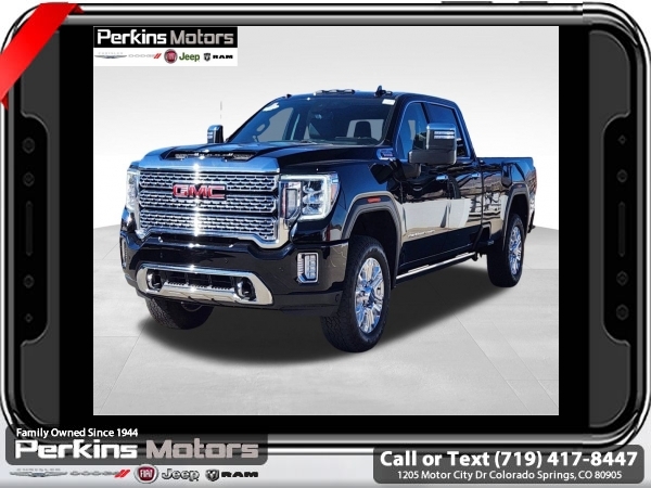 Onyx Black 4WD Duramax 6.6L V8 Turbodiesel 10-Speed Automatic<br><br>10-Speed Automatic, 4WD, Jet Black Leather.<br><br><br>CARFAX One-Owner.<br><br>Check us out at www.perkinsmotors.com to see our specials! Since opening our doors in 1944, we’ve been proud to serve Colorado Springs, CO, and the surrounding areas of Pueblo, Castle Rock and Denver, CO. Throughout this time of being family owned for 80 years, we’ve maintained a firm commitment to our customers: to offer a wide selection of New Chrysler, Dodge, Fiat, Jeep, and Ram vehicles and quality pre-owned vehicles, and provide a quick, no-hassle car-buying process that ensures everyone drives off the lot satisfied with their purchase.<br><br><br>Denali Ultimate Package (Power Sunroof), Driver Alert Package I (Lane Change Alert w/Side Blind Zone Alert and Rear Cross Traffic Alert), Driver Alert Package II (Automatic Emergency Braking, Following Distance Indicator, Forward Collision Alert, IntelliBeam Automatic High Beam On/Off, and Lane Departure Warning System), Gooseneck/5th Wheel Prep Package, Preferred Equipment Group 5SA (12-Volt Rear Auxiliary Power Outlet, 120-Volt Bed Mounted Power Outlet, 120-Volt Instrument Panel Power Outlet, 2 USB Ports (First Row), 2 USB Ports Inside Console, 2-Speed Active Transfer Case, 2nd Row Dual USB Charge-Only Ports, 6 Rectangular Chromed Tubular Assist Steps, Bed View Camera w/2 Trailer Camera Provisions, Compass Located In Instrument Cluster, Deep-Tinted Glass, Electric Rear-Window Defogger, Electrical Lock Control Steering Column, Floor-Mounted Center Console, Front Chrome Recovery Hooks, GMC Connected Access Capable, HD Rear Vision Camera, HD Surround Vision w/2 Trailer View Camera Provisions, Heated 2nd Row Outboard Seats, Heated Driver & Front Outboard Passenger Seats, Hitch Guidance w/Hitch View, In-Vehicle Trailering System App, Integrated Trailer Brake Controller, Keyless Open & Start, LED Cargo Area Lighting, Manual Tilt-Wheel/Telescoping Steering Column, OnStar & GMC Connected Services Capable, Polished Exhaust Tip, Power Door Locks, Power Front Passenger Windows w/Express Up/Down, Power Front Windows w/Driver Express Up/Down, Power Rear Windows w/Express Down, Power Sliding Rear Window w/Defogger, ProGrade Trailering System, Remote Vehicle Starter System, Safety Alert Seat, Signature Denali Grille w/High Gloss Black Mesh, Spray-On Pickup Bed Liner w/Denali Logo, Steering Wheel Audio Controls, Ultrasonic Front & Rear Park Assist, Unauthorized Entry Theft-Deterrent System, Universal Home Remote, Ventilated Driver & Front Passenger Seats, Wi-Fi Hotspot Capable, Wireless Charging, and Wireless Phone Projection), Technology Package (Auto-Dimming Inside Rearview Mirror w/Camera and Multicolor 15 Diagonal Head-Up Display), 10-Speed Automatic, 4WD, Jet Black Leather, 10-Way Power Driver Seat Adjuster w/Lumbar, 10-Way Power Passenger Seat Adjuster w/Lumbar, 220 Amp Alternator, 3.42 Rear Axle Ratio, 3.73 Rear Axle Ratio, 4-Wheel Disc Brakes, 7 Speakers, ABS brakes, Air Conditioning, Alloy wheels, AM/FM radio: SiriusXM with 360L, Apple CarPlay/Android Auto, Auto High-beam Headlights, Auto-dimming door mirrors, Auto-dimming Rear-View mirror, Automatic temperature control, Bose Premium 7 Speaker Sound System, Brake assist, Bumpers: body-color, Compass, Cruise Control, Delay-off headlights, Driver door bin, Driver Memory, Driver vanity mirror, Dual front impact airbags, Dual front side impact airbags, Electronic Stability Control, Engine Block Heater, Exhaust Brake, Forge Perforated Leather-Appointed Seat Trim, Front anti-roll bar, Front Bucket Seats, Front Center Armrest, Front dual zone A/C, Front fog lights, Front reading lights, Front wheel independent suspension, Fully automatic headlights, Garage door transmitter, Genuine wood console insert, Genuine wood door panel insert, Heated door mirrors, Heated front seats, Heated rear seats, Heated steering wheel, Heavy-Duty 80 Amp Battery, Illuminated entry, Low tire pressure warning, M
