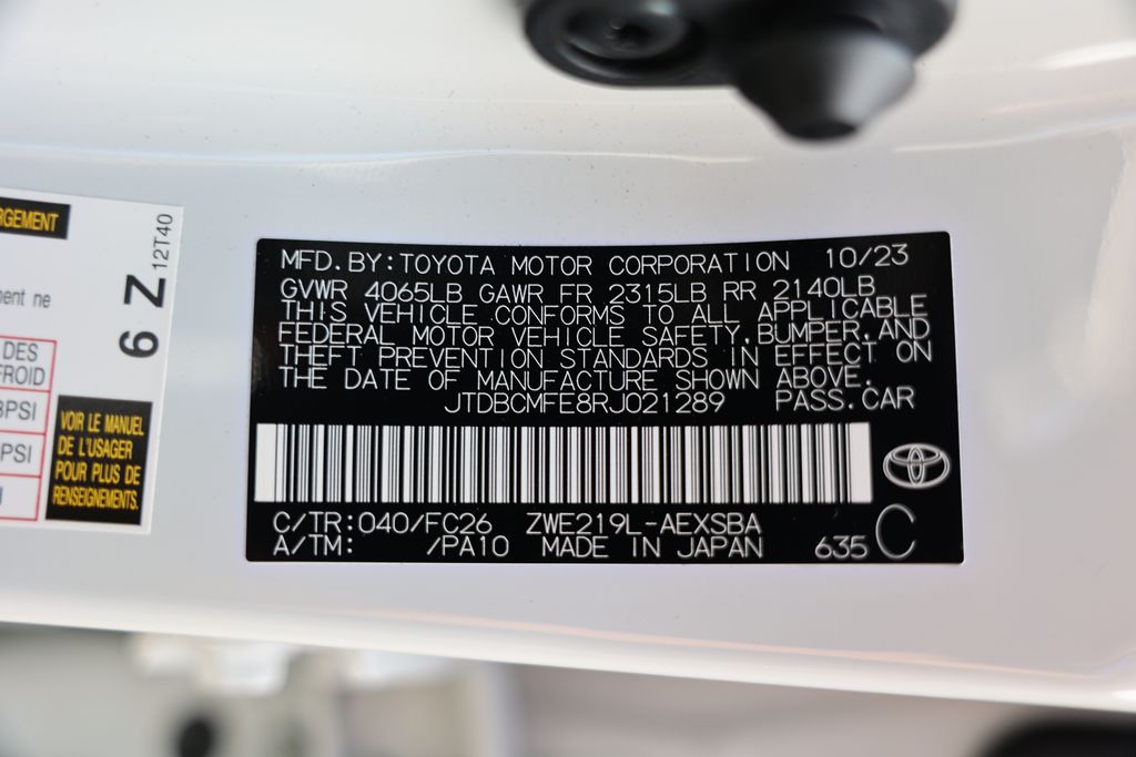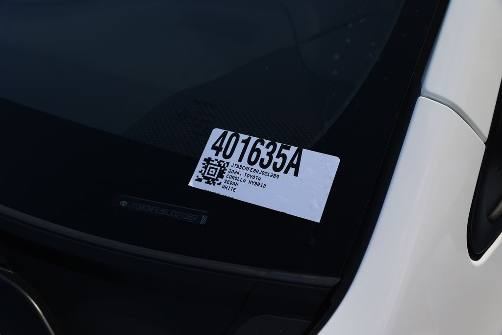 White 2024 Toyota Corolla Hybrid SE FWD CVT 1.8L 4-Cylinder SMPI Hybrid DOHC 1.8L 4-Cylinder SMPI Hybrid DOHC, ABS brakes, Active Cruise Control, Alloy wheels, Electronic Stability Control, Heated door mirrors, Htd Power Outside Mirrors w/Turn Signal Indicators, Illuminated entry, Low tire pressure warning, Power Tilt/Slide Moonroof w/Sliding Sunshade, Remote keyless entry, SE Package, Traction control, Wireless Charger.