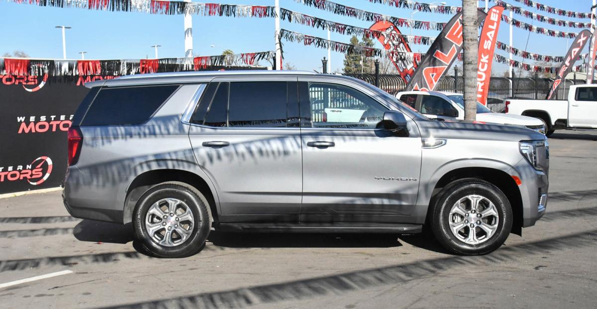 Scores 20 Highway MPG and 15 City MPG! This GMC Yukon boasts a Gas V8 5.3L/ engine powering this Automatic transmission. WHEELS, 18 X 8.5 (45.7 CM X 21.6 CM) 6-SPOKE MACHINED ALUMINUM with Dark Grey Metallic accents (STD), TRANSMISSION, 10-SPEED AUTOMATIC electronically controlled with overdrive, includes Traction Select System including tow/haul (STD), TIRES, 265/65R18SL ALL-SEASON, BLACKWALL (STD).*This GMC Yukon Features the Following Options *LICENSE PLATE FRONT MOUNTING PACKAGE (Included on orders with ship-to states that require a front license plate.), GMC PRO SAFETY PLUS PACKAGE includes (UKC) Lane Change Alert with Side Blind Zone Alert and (UFG) Rear Cross Traffic Alert; in addition to standard (PDI) GMC Pro Safety , SLE PREFERRED EQUIPMENT GROUP Includes Standard Equipment, SEATS, FRONT BUCKET (STD), SATIN STEEL METALLIC, REAR CROSS TRAFFIC ALERT, REAR AXLE, 3.23 RATIO, NOT EQUIPPED WITH STEERING COLUMN LOCK, SEE DEALER FOR DETAILS (Beginning with start of regular production, October 2021, all vehicles will be forced to include (R7N) Not Equipped with Steering Column Lock, which removes Steering Column Lock.), LANE CHANGE ALERT with Side Blind Zone Alert, JET BLACK, CLOTH SEATING SURFACES.