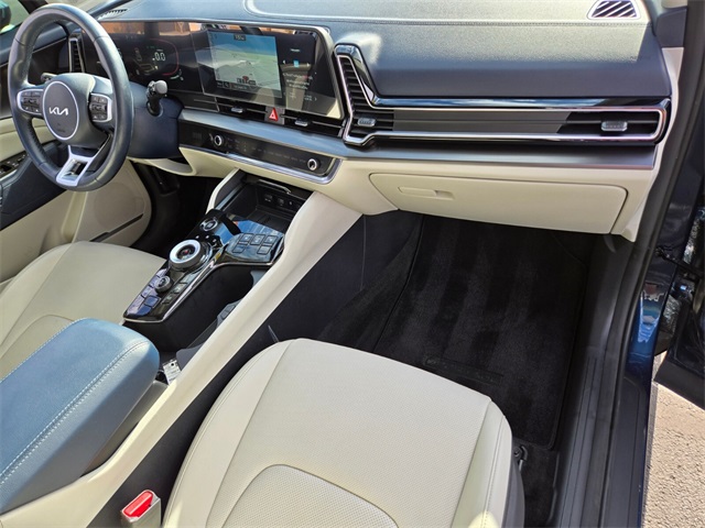 CARFAX One-Owner.Priced below KBB Fair Purchase Price!38/38 City/Highway MPGVesta Blue 2023 Kia Sportage Hybrid EX AWD 6-Speed Automatic 1.6L Turbo GDI 4-Cylinder 1.6L Turbo GDI 4-Cylinder.If you don't drive here, you can't save here!Price may not include recon fee. 1.6L Turbo GDI 4-Cylinder, 4-Wheel Disc Brakes, 6 Speakers, ABS brakes, Air Conditioning, Alloy wheels, AM/FM radio: SiriusXM, Apple CarPlay & Android Auto, Auto High-beam Headlights, Automatic temperature control, Axle Ratio: 3.32, Brake assist, Bumpers: body-color, Carpet Floor Mats, Compass, Delay-off headlights, Driver door bin, Driver vanity mirror, Dual front impact airbags, Dual front side impact airbags, Electronic Stability Control, Emergency communication system, Four wheel independent suspension, Front anti-roll bar, Front Bucket Seats, Front Center Armrest, Front dual zone A/C, Fully automatic headlights, Heated door mirrors, Heated Front Bucket Seats, Heated front seats, Heated steering wheel, Illuminated entry, Low tire pressure warning, Navigation System, Occupant sensing airbag, Outside temperature display, Overhead airbag, Overhead console, Panic alarm, Passenger door bin, Passenger vanity mirror, Power door mirrors, Power driver seat, Power steering, Power windows, Radio: AM/FM/HD Audio System, Rain sensing wipers, Rear anti-roll bar, Rear seat center armrest, Rear window defroster, Rear window wiper, Remote keyless entry, Security system, Speed control, Speed-sensing steering, Split folding rear seat, Spoiler, Steering wheel mounted audio controls, SynTex Leatherette Seat Trim, Tachometer, Telescoping steering wheel, Tilt steering wheel, Traction control, Trip computer, Turn signal indicator mirrors, Variably intermittent wipers, and Wheels: 18" x 7.5J Machined Alloy.