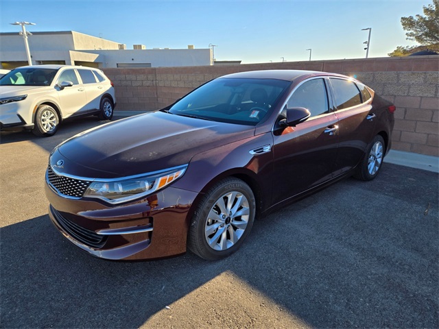 Recent Arrival!CARFAX One-Owner.Odometer is 67027 miles below market average!24/35 City/Highway MPGSangria 2016 Kia Optima EX FWD 6-Speed Automatic with Sportmatic 2.4L I4 DGI DOHC Black Leather.If you don't drive here, you can't save here!Awards: * JD Power Automotive Performance, Execution and Layout (APEAL) Study * 2016 IIHS Top Safety Pick+ * 2016 KBB.com 10 Most Awarded Cars * 2016 KBB.com Best Buy Awards * 2016 KBB.com Best Buy Awards Finalist * 2016 KBB.com 10 Most Comfortable Cars Under $30,000 * 2016 KBB.com 10 Best Sedans Under $25,000 * 2016 KBB.com 16 Best Family Cars * 2016 KBB.com 10 Best Used Cars Under $20,000Price may not include recon fee. Black Leather, 17" Alloy Wheels, 4-Wheel Disc Brakes, 6 Speakers, ABS brakes, Air Conditioning, Alloy wheels, AM/FM radio: SiriusXM, AM/FM/CD/MP3 Radio, Auto-Dimming Mirror w/HomeLink & Compass, Automatic temperature control, Brake assist, Bumpers: body-color, CD player, Delay-off headlights, Driver door bin, Driver vanity mirror, Dual front impact airbags, Dual front side impact airbags, Electronic Stability Control, Exterior Parking Camera Rear, Four wheel independent suspension, Front anti-roll bar, Front Bucket Seats, Front Center Armrest, Front dual zone A/C, Front reading lights, Fully automatic headlights, Heated door mirrors, Heated Front Bucket Seats, Heated front seats, Heated steering wheel, Illuminated entry, Knee airbag, Leather Seat Trim, Leather Shift Knob, Leather steering wheel, Low tire pressure warning, Memory seat, Occupant sensing airbag, Outside temperature display, Overhead airbag, Overhead console, Panic alarm, Passenger door bin, Passenger vanity mirror, Power door mirrors, Power driver seat, Power steering, Power windows, Rear anti-roll bar, Rear reading lights, Rear seat center armrest, Rear window defroster, Remote keyless entry, Security system, Speed control, Speed-sensing steering, Split folding rear seat, Steering wheel mounted audio controls, Tachometer, Telescoping steering wheel, Tilt steering wheel, Traction control, Trip computer, Turn signal indicator mirrors, and Variably intermittent wipers.