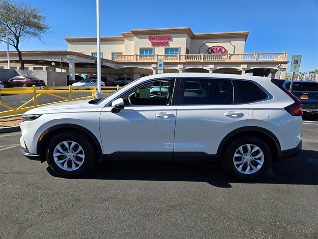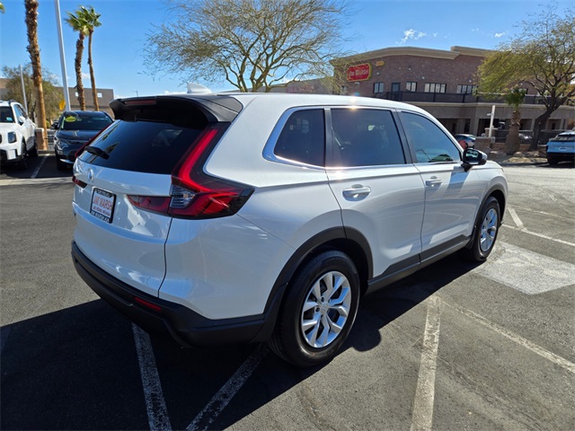 CARFAX One-Owner.Odometer is 4039 miles below market average!28/34 City/Highway MPG2025 Honda CR-V LX FWD CVT 1.5L I4 DOHC 16VIf you don't drive here, you can't save here!Price may not include recon fee. 4 Speakers, 4-Wheel Disc Brakes, ABS brakes, Adaptive Cruise Control: Adaptive Cruise Control (ACC) with Low-Speed Follow, Air Conditioning, Apple CarPlay/Android Auto, Auto High-beam Headlights, Automatic temperature control, Brake assist, Bumpers: body-color, Cloth Seat Trim, Compass, Delay-off headlights, Driver door bin, Driver vanity mirror, Dual front impact airbags, Dual front side impact airbags, Electronic Stability Control, Exterior Parking Camera Rear, Four wheel independent suspension, Front anti-roll bar, Front Bucket Seats, Front Center Armrest, Front reading lights, Fully automatic headlights, Illuminated entry, Knee airbag, Low tire pressure warning, Occupant sensing airbag, Outside temperature display, Overhead airbag, Overhead console, Panic alarm, Passenger door bin, Passenger vanity mirror, Power door mirrors, Power steering, Power windows, Radio data system, Radio: 160-Watt AM/FM Audio System, Rear anti-roll bar, Rear reading lights, Rear seat center armrest, Rear side impact airbag, Rear window defroster, Rear window wiper, Remote keyless entry, Security system, Speed control, Speed-sensing steering, Speed-Sensitive Wipers, Split folding rear seat, Spoiler, Steering wheel mounted audio controls, Tachometer, Telescoping steering wheel, Tilt steering wheel, Traction control, Trip computer, Turn signal indicator mirrors, Variably intermittent wipers, and Wheels: 17" Steel w/Covers.