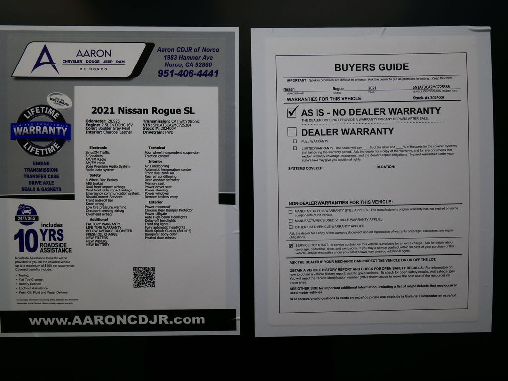 Priced below KBB Fair Purchase Price!LIFE TIME WARRANTY, BELOW AVERAGE ODOMETER, FRESH OIL CHANGE, NEW FILTERS, NEW WIPERS, NEW BATTERY, Rogue SL, 4D Sport Utility, 2.5L I4 DOHC 16V, FWD, Alloy wheels, Bose Premium Audio System, Chrome Rear Bumper Protector, Exterior Parking Camera Rear, Front & Rear Sonar, Front dual zone A/C, Front fog lights, Heated front seats, Heated steering wheel, Knee airbag, Low tire pressure warning, Memory seat, Nissan Door To Door Navigation, Power Liftgate, Power moonroof, Premium Package, ProPILOT Assist +, Rear Parking Sensors, Remote keyless entry, SiriusXM Traffic, Spoiler.CARFAX One-Owner.