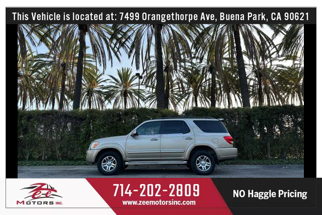 THIS VEHICLE IS LOCATED AT OUR BUENA PARK LOCATION: 7499 ORANGETHORPE AVE, BUENA PARK CA 90621. Please Call us at 714-202-2809 Ext #2 , Or email us at BUENAPARK@ZEEMOTORSINC.COM To Check Availability. **** SEQUOIA LIMITED 4WD ***** 1-OWNER* Clean Title. * Clean Carfax. * No Accidents.* Very Well Maintained Vehicle, Service records available on CARFAX. * Passed Safety inspection and Smog Check.Attention to all buyers: All special prices are cash price and it does not include sales tax, license and registration fee, documentation fee, smog fee or any dealer add-ons / accessories. Additional financing charges may apply on approved credit. While great effort is made to ensure the accuracy of the information provided on this site, errors do occur so please verify information with a team member. This is easily done by contacting us via phone or email.