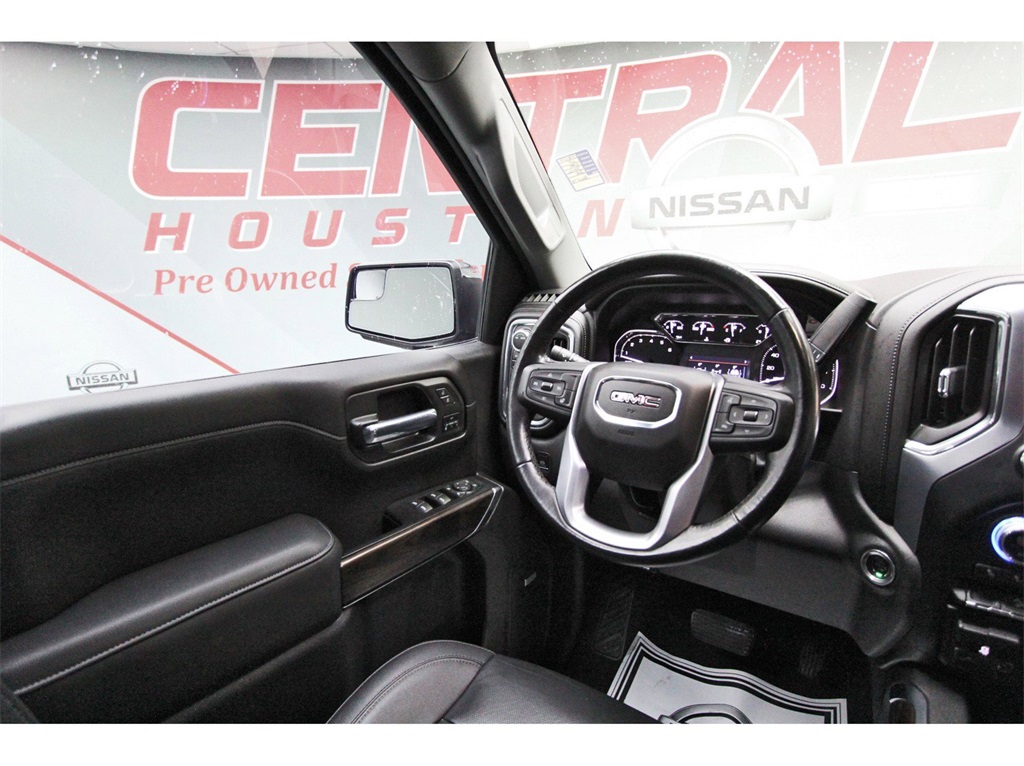 Central Houston Nissan is proud to present you with another True Market Priced Pre-Owned Vehicle. This 2021 GMC Sierra 1500 SLT is loaded with the following Factory Options: 8-Speed Automatic, 4WD, and Jet Black Leather Preferred Equipment Group 4SA (12-Volt Rear Auxiliary Power Outlet, 120-Volt Bed Mounted Power Outlet, 120-Volt Instrument Panel Power Outlet, 170 Amp Alternator, 4G LTE Wi-Fi Hotspot Capable, Auto-Locking Rear Differential, Auxiliary External Transmission Oil Cooler, Chrome Grille, Color-Keyed Carpeting Floor Covering, Compass, Deep-Tinted Glass, Electric Rear-Window Defogger, Electrical Lock Control Steering Column, Front Frame-Mounted Black Recovery Hooks, GMC Connected Access Capable, Heated Driver & Front Outboard Passenger Seating, Hitch Guidance w/Hitch View, In-Vehicle Trailering App, Integrated Trailer Brake Controller, Keyless Open & Start, LED Cargo Area Lighting, Manual Tilt-Wheel & Telescoping Steering Column, OnStar & GMC Connected Services Capable, Power Door Locks, Power Front Passenger Windows w/Express Up/Down, Power Front Windows w/Driver Express Up/Down, Power Rear Windows w/Express Down, ProGrade Trailering System, Rear Dual USB Charging-Only Ports, Rear Wheelhouse Liners, Remote Vehicle Starter System, Steering Wheel Audio Controls, and Theft Deterrent System (Unauthorized Entry)), SLT Convenience Package (2 USB Ports, 2 USB Ports (1st Row), Floor-Mounted Center Console, Front Bucket Seats, Heated 2nd Row Outboard Seats, Power Sliding Rear Window w/Rear Defogger, Universal Home Remote, and Ventilated Driver & Front Passenger Seats), SLT Preferred Package (Premium Bose 7-Speaker Sound System, Radio: Premium GMC Infotainment Sys w/Navigation, SiriusXM w/360L, and Wireless Charging), Trailering Package (Hitch Guidance), X31 Off-Road Package (Dual Exhaust w/Premium Tips, Heavy-Duty Air Filter, Hill Descent Control, Off-Road Suspension, and X31 Hard Badge), 8-Speed Automatic, 4WD, Jet Black Leather, 10-Way Power Driver Seat Adjuster w/Lumbar, 10-Way Power Passenger Seat Adjuster w/Lumbar, 20" x 9" Polished Aluminum Wheels, 3.23 Rear Axle Ratio, 4-Wheel Disc Brakes, 6 Speakers, 6-Speaker Audio System Feature, ABS brakes, Air Conditioning, Alloy wheels, AM/FM radio: SiriusXM with 360L, Apple CarPlay/Android Auto, Auto-dimming door mirrors, Auto-dimming Rear-View mirror, Automatic temperature control, Brake assist, Bumpers: chrome, Chrome Wheel To Wheel Assist Steps, Delay-off headlights, Driver door bin, Driver Memory, Driver vanity mirror, Dual front impact airbags, Dual front side impact airbags, Electronic Stability Control, Front 40/20/40 Split-Bench Seat, Front anti-roll bar, Front Center Armrest w/Storage, Front dual zone A/C, Front fog lights, Front License Plate Kit, Front Prem Floor Liners w/Removable Carpet Insert, Front reading lights, Front wheel independent suspension, Fully automatic headlights, Heated door mirrors, Heated front seats, Heated steering wheel, Heavy Duty Suspension, Illuminated entry, Low tire pressure warning, Memory seat, Not Equipped w/Dynamic Fuel Management, Occupant sensing airbag, Outside temperature display, Overhead airbag, Overhead console, Panic alarm, Passenger door bin, Passenger vanity mirror, Perf Leather-Appointed Front Outboard Seat Trim, Power door mirrors, Power driver seat, Power passenger seat, Power steering, Power windows, Premium audio system: GMC Infotainment System, Radio data system, Radio: Premium GMC Infotainment Sys w/Multi-Touch, Rear Prem Floor Liners w/Removable Carpet Insert, Rear reading lights, Rear seat center armrest, Rear step bumper, Rear window defroster, Remote keyless entry, Security system, Speed control, Speed-sensing steering, Split folding rear seat, Spray-On Pickup Bed Liner w/GMC Logo, Steering wheel mounted audio controls, Tachometer, Telescoping steering wheel, Tilt steering wheel, Traction control, Trip computer, Variably intermittent wipers, Voltmeter, Wheel Locks (Set of 4) (LPO), and Wheels: 18" x 8.5" 6-Spoke Mac