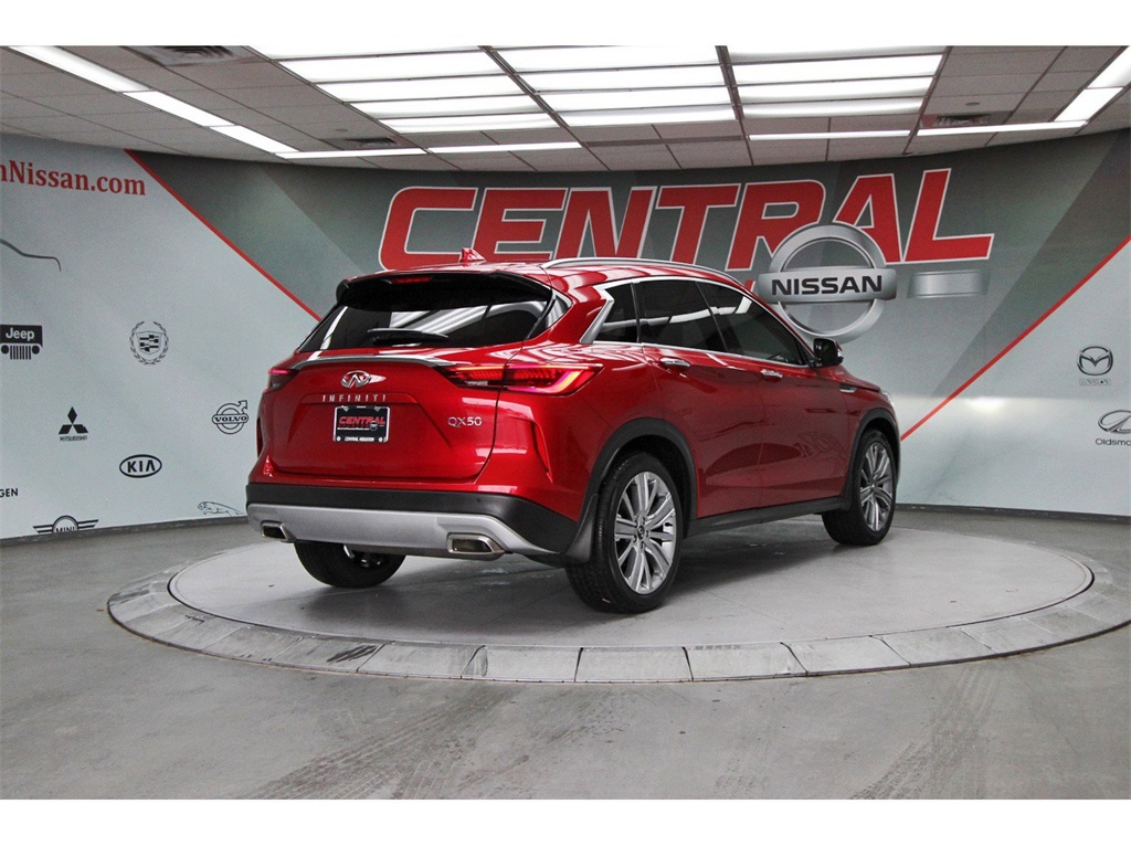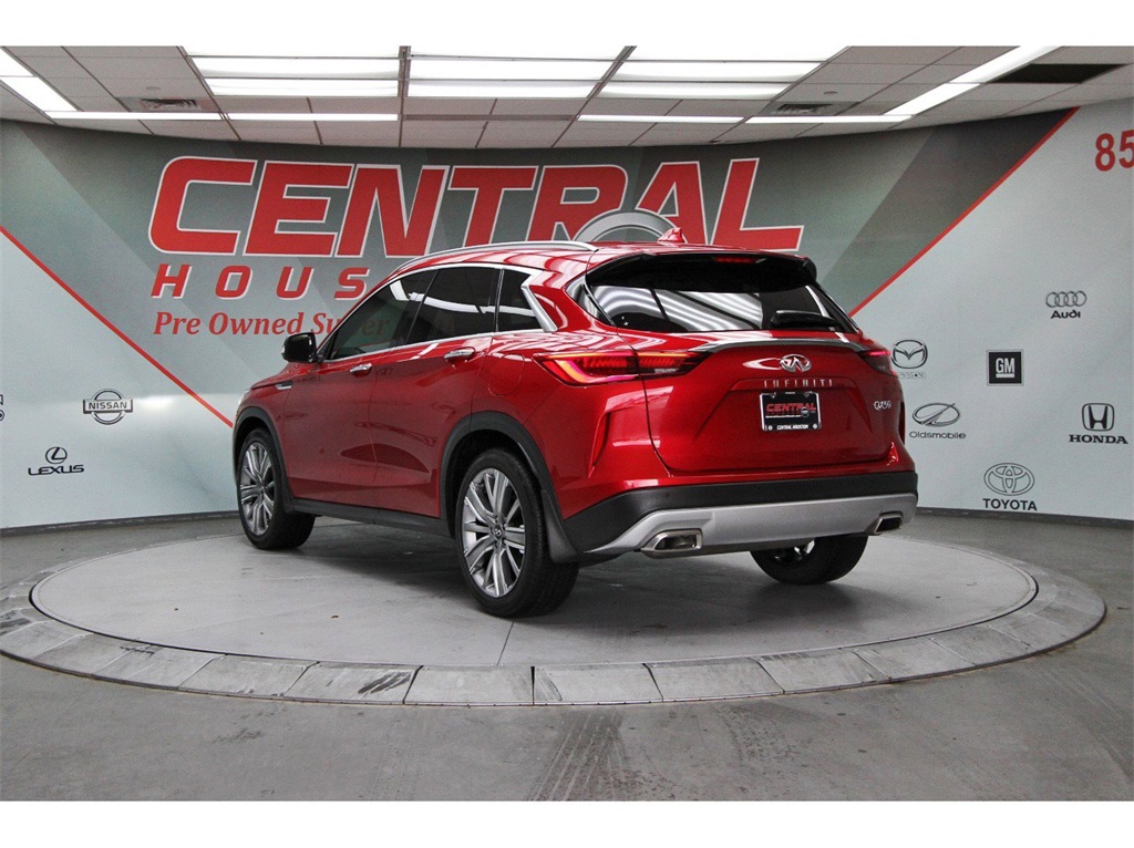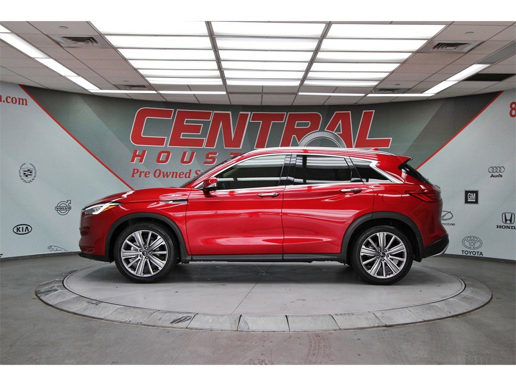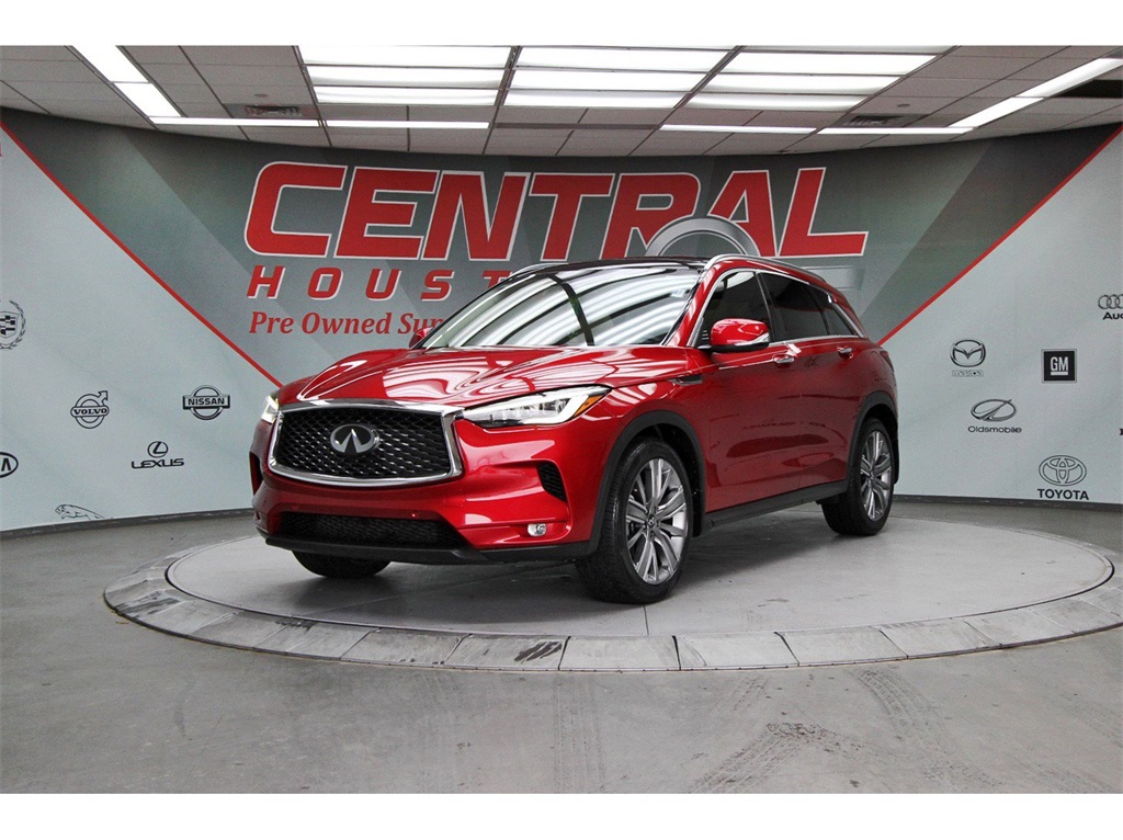 Central Houston Nissan is proud to present you with another True Market Priced Pre-Owned Vehicle. This 2022 INFINITI QX50 Sensory Nissan CPO Select is loaded with the following Factory Options: Nissan CPO Select Certified Nissan CPO Select Certified, 16 Speakers, 4-Wheel Disc Brakes, 5.846 Axle Ratio, ABS brakes, Air Conditioning, Alloy wheels, AM/FM radio: SiriusXM, Anti-whiplash front head restraints, Auto High-beam Headlights, Auto tilt-away steering wheel, Auto-dimming Rear-View mirror, Automatic temperature control, Black Splash Guards (Set of 4), Brake assist, Bumpers: body-color, CD player, Climate Controlled Front Bucket Seats, Delay-off headlights, Driver door bin, Driver vanity mirror, Dual front impact airbags, Dual front side impact airbags, Electronic Stability Control, Emergency communication system: INFINITI InTouch, Exclusive Paint - Dynamic Sunstone Red, Floor Mats, Four wheel independent suspension, Front anti-roll bar, Front Bucket Seats, Front Center Armrest, Front dual zone A/C, Front fog lights, Front reading lights, Fully automatic headlights, Garage door transmitter: HomeLink, Heads-Up Display, Heated door mirrors, Heated front seats, Heated rear seats, Heated steering wheel, Illuminated entry, Illuminated Kick Plates, Knee airbag, Leather Shift Knob, Low tire pressure warning, Memory seat, Navigation system: INFINITI InTouch Navigation, Occupant sensing airbag, Outside temperature display, Overhead airbag, Overhead console, Panic alarm, Passenger door bin, Passenger vanity mirror, Power door mirrors, Power driver seat, Power Liftgate, Power moonroof, Power passenger seat, Power steering, Power windows, Premium audio system: Bose, Radio data system, Radio: Bose Performance Series Audio System, Rain sensing wipers, Rear anti-roll bar, Rear reading lights, Rear seat center armrest, Rear side impact airbag, Rear window defroster, Rear window wiper, Remote keyless entry, Security system, Semi-Aniline Leather-Appointed Seat Trim, Speed control, Speed-sensing steering, Speed-Sensitive Wipers, Split folding rear seat, Spoiler, Steering wheel memory, Steering wheel mounted audio controls, Tachometer, Telescoping steering wheel, Tilt steering wheel, Traction control, Trip computer, Turn signal indicator mirrors, Variably intermittent wipers, Ventilated front seats, and Wheels: 20" Silver Painted Machine Finished!!Central Houston Nissan is more than just your typical car dealership. When our customers visit us, our goal is to provide quality vehicles, exceptional service and a friendly atmosphere. Our staff has been trained to create ease during your purchase or service experience and we are always making sure you get everything you want and deserve out of your visit. Our vision and mission is an employee-centered and customer-focused environment. Vehicles may be subject to prep package and market adjustment. When you buy from Central Houston Nissan, we'll make it the best car buying experience you've ever had. When you purchase a New Nissan or a qualifying Pre-Owned vehicle from Central Houston Nissan, you are automatically enrolled into our Central Houston Nissan Central Care Program at no cost to you. You can’t beat that! Vehicles may be subject to prep package and market adjustment. Stop by 2901 S Loop W, Houston, Texas 77054 today!!!